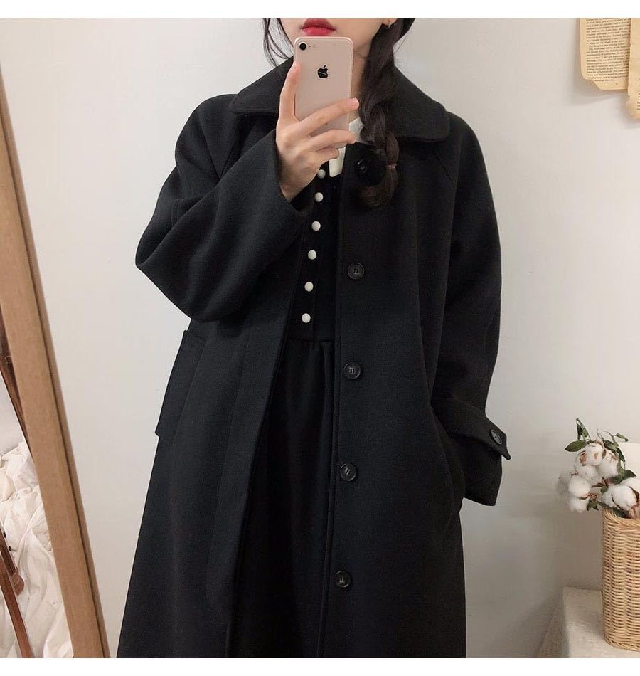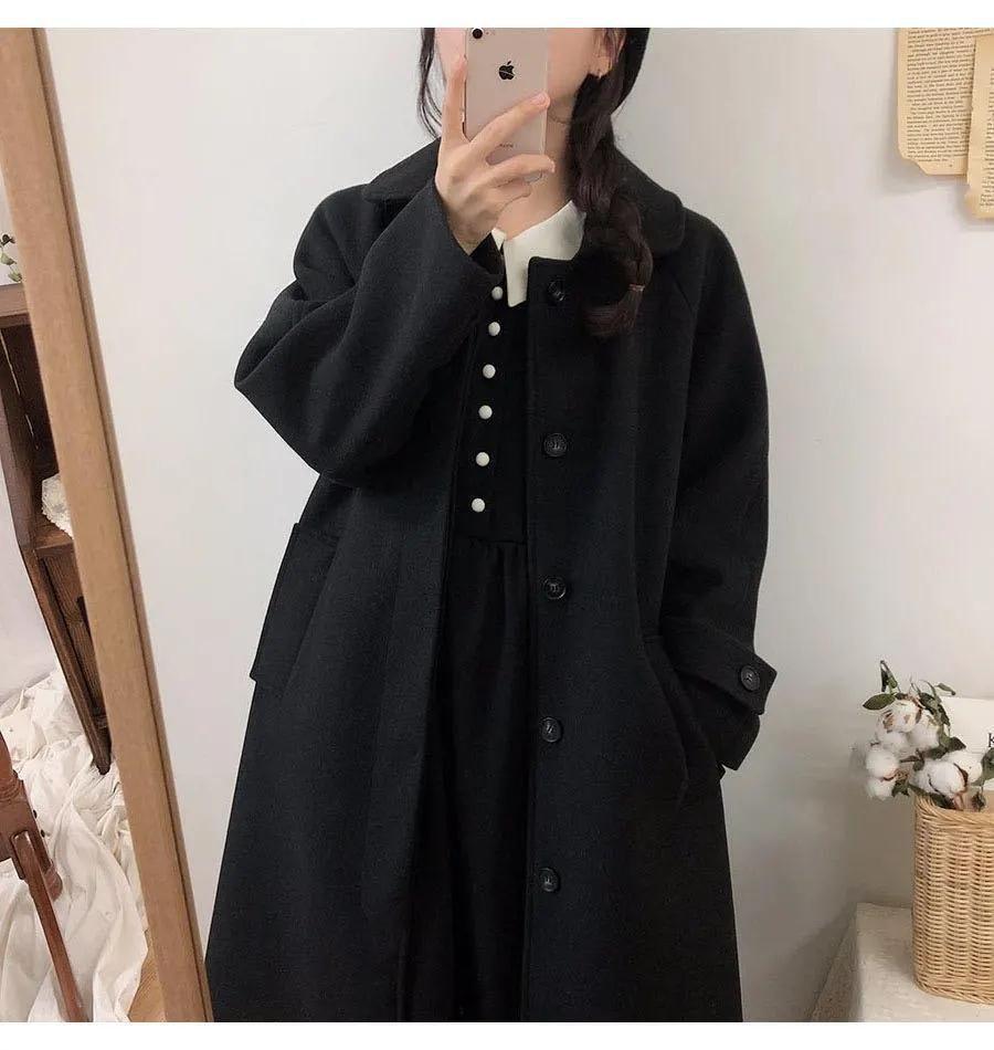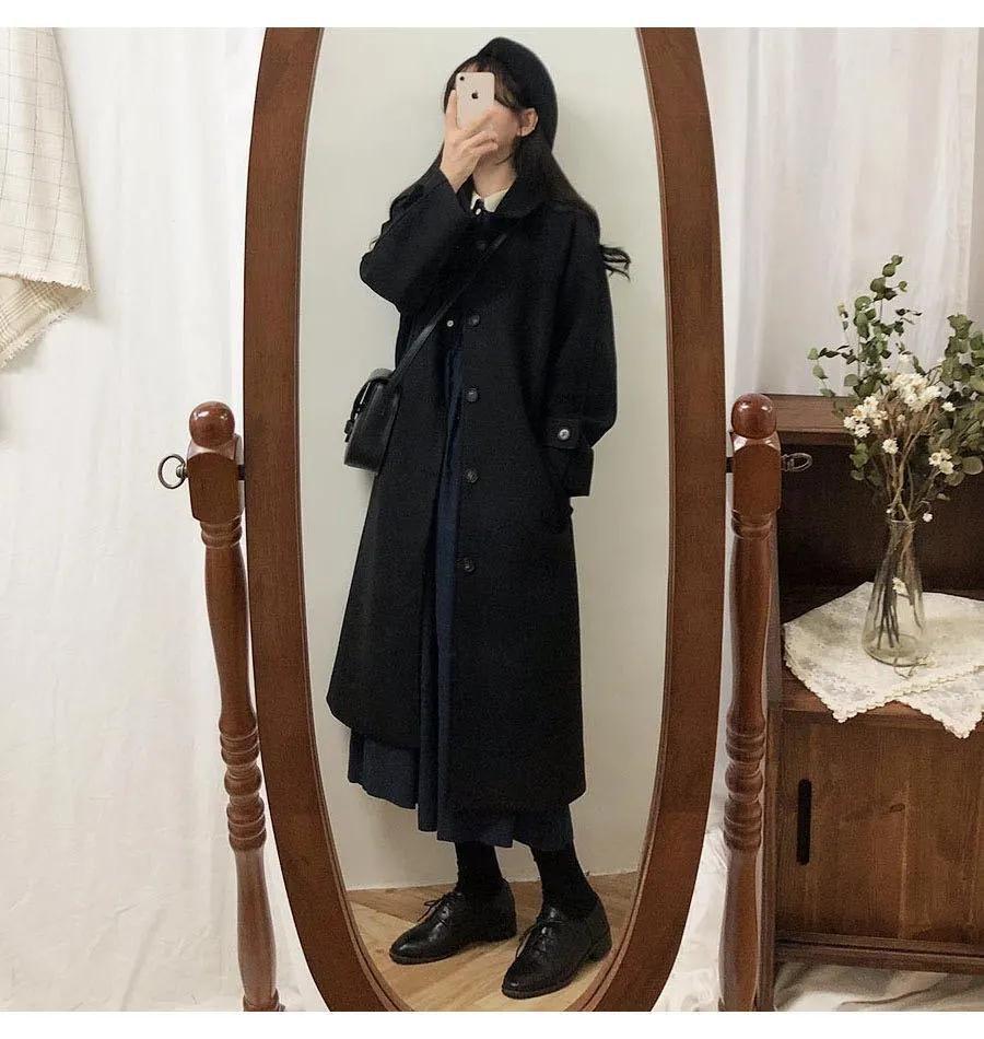 Abrigo de Lana Negro Ropa Exterior para Mujer Largo Medio 2025 Nuevo Otoño Invierno Estilo Coreano Hepburn Abrigo de Lana Petite