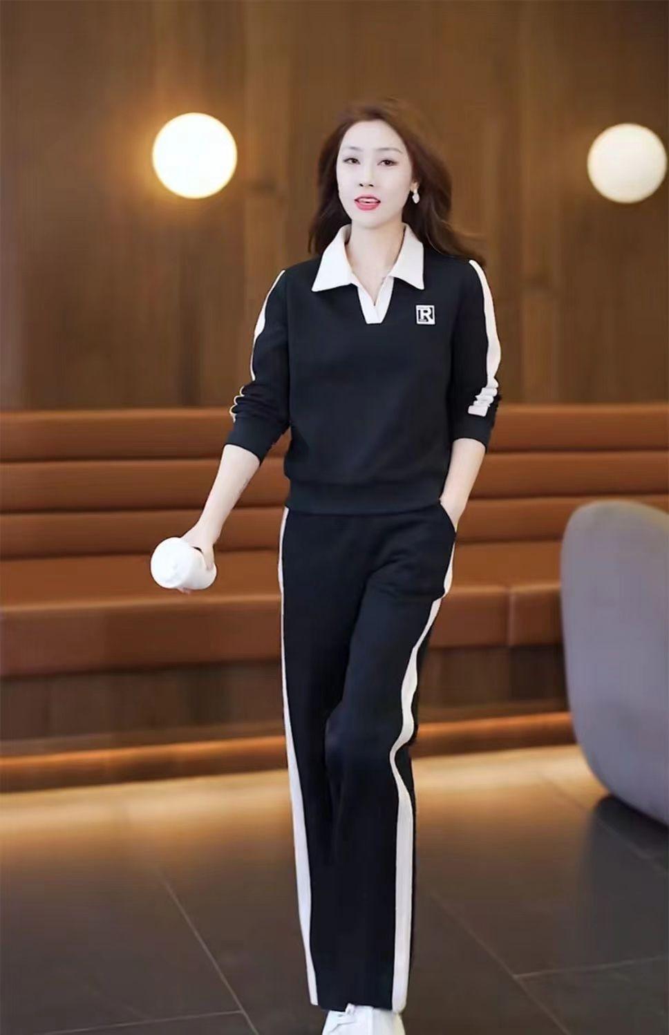 2025 Primavera y Otoño Nuevo Adelgazante Moderno Sudadera Simple con Solapa + Pantalón de Chándal Traje Deportivo Casual de Dos Piezas para Mujer