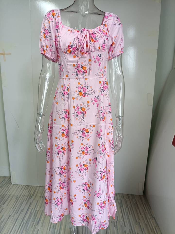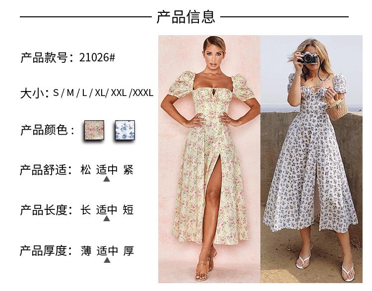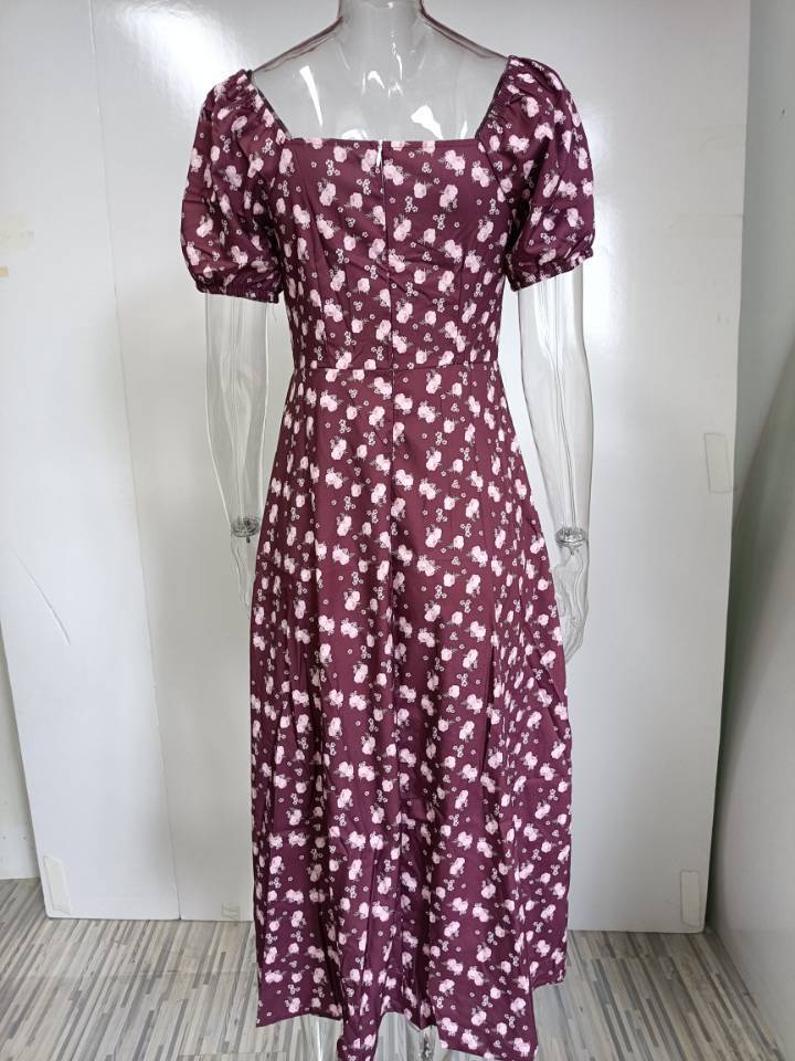 2025 Ropa Europea y Americana Amazon Primavera Nuevo Estampado Floral Francés Espalda Descubierta Slim Tirantes Abertura Vestido
