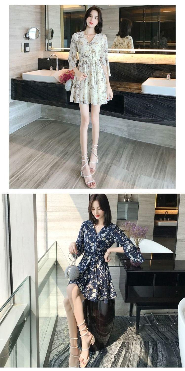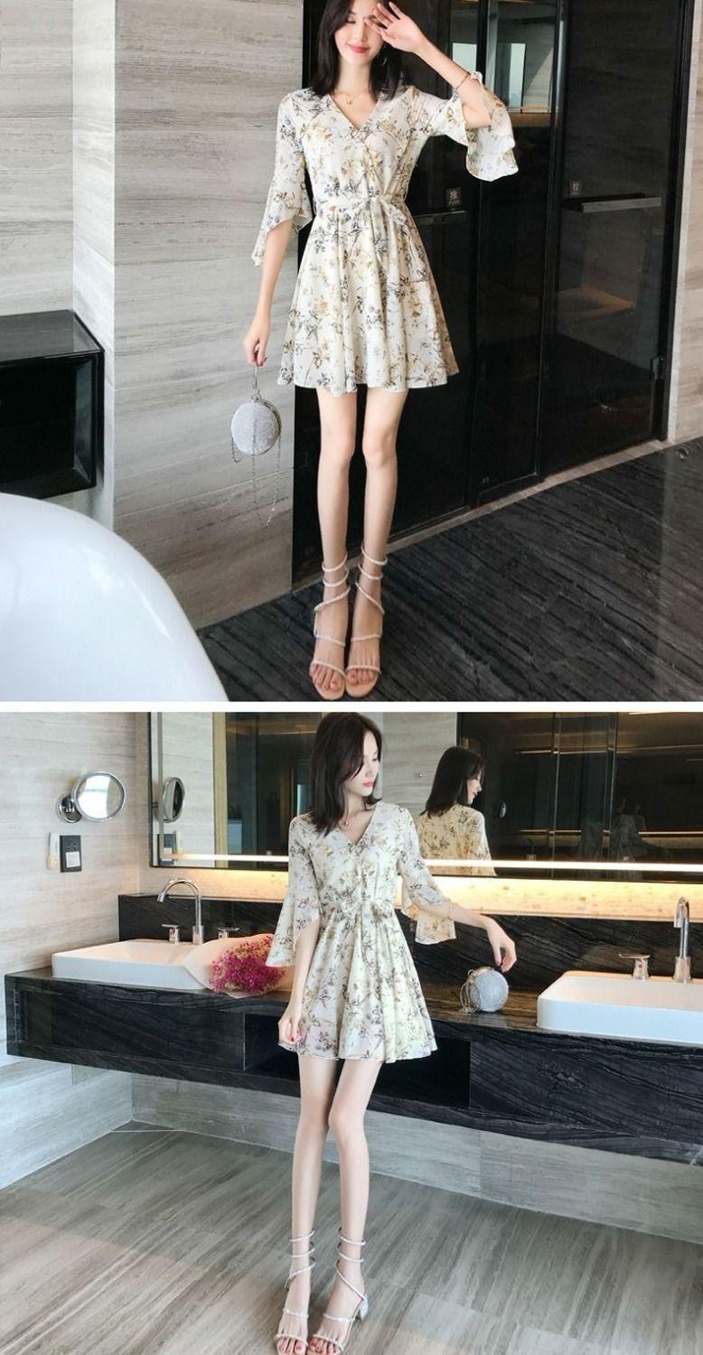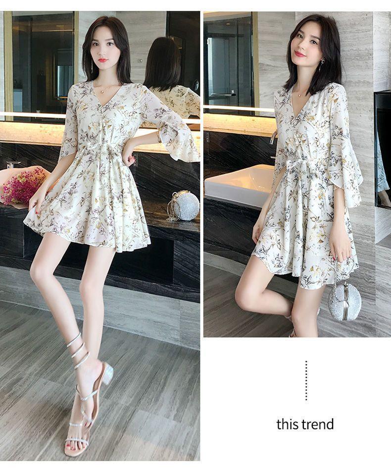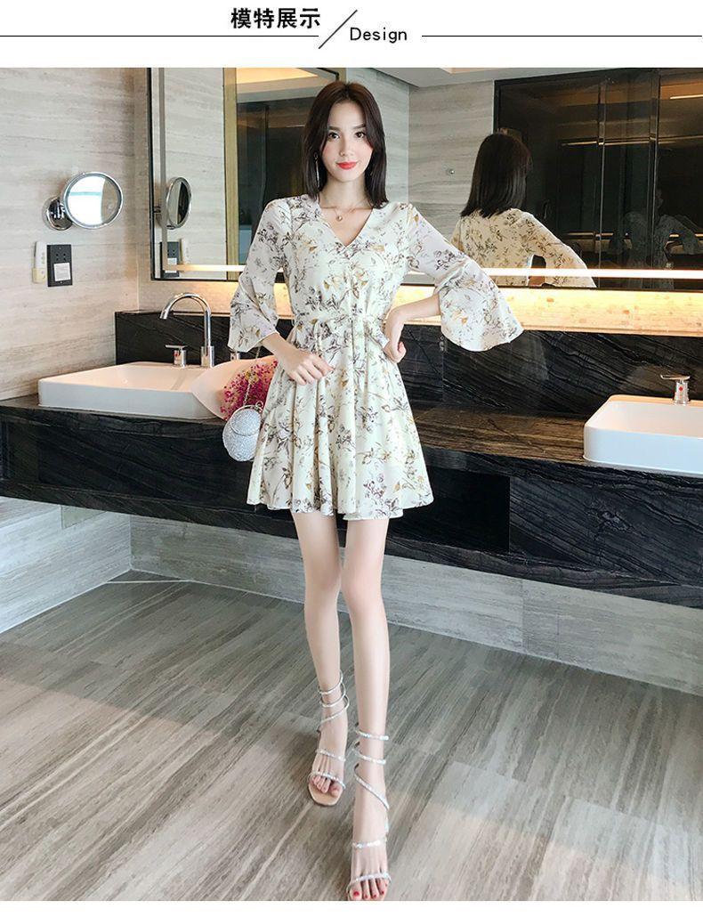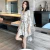 Vestido Diario para Ir al Trabajo Verano 2025 Nuevo Estilo Petite Falda Corta Floral Casual Nicho Cuello en V Falda de Hada