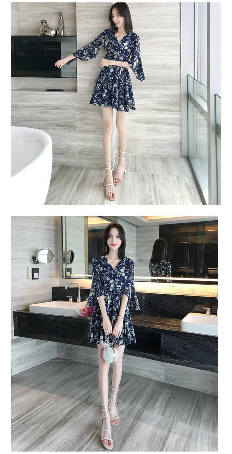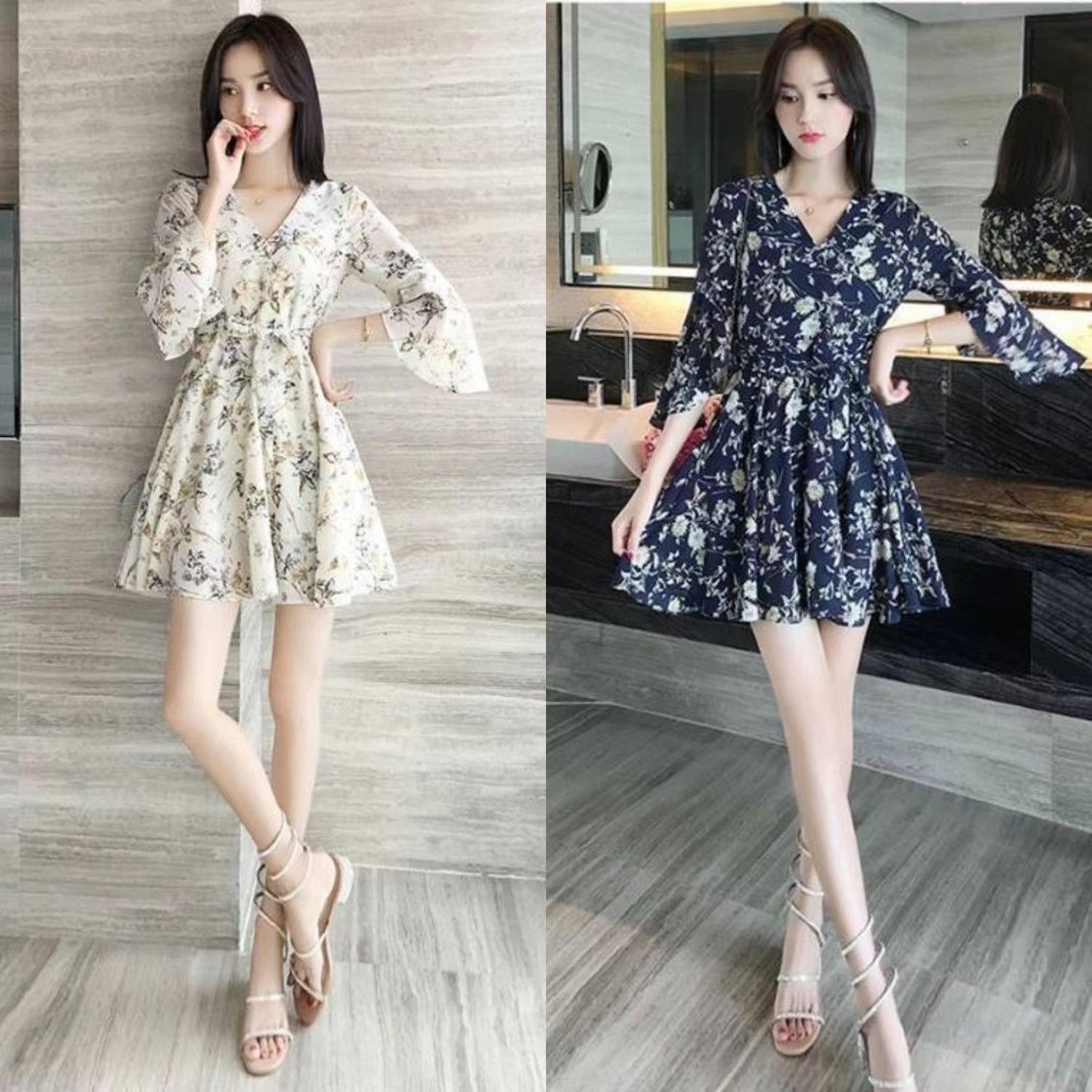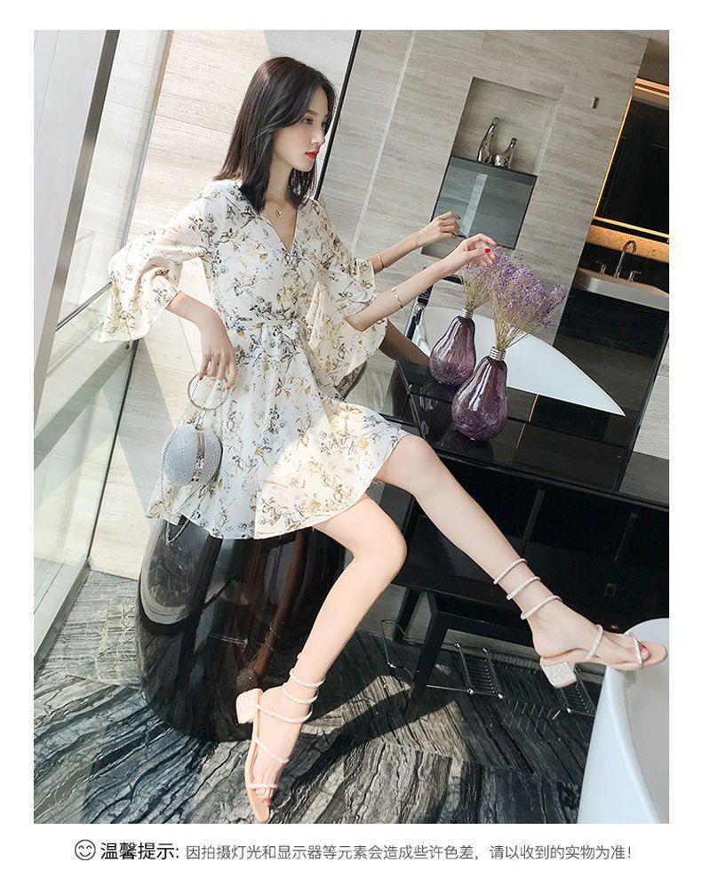 Vestido Diario para Ir al Trabajo Verano 2025 Nuevo Estilo Petite Falda Corta Floral Casual Nicho Cuello en V Falda de Hada