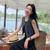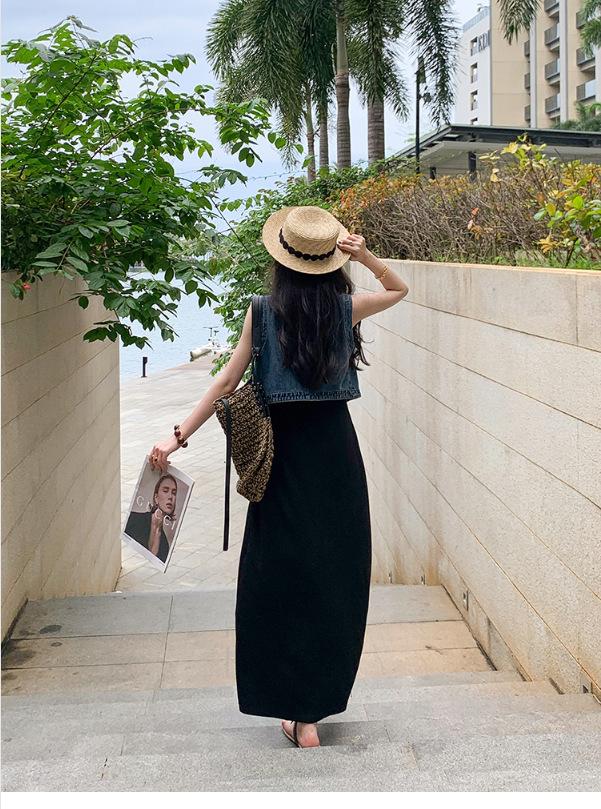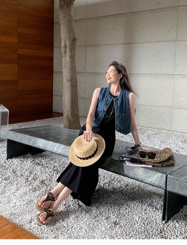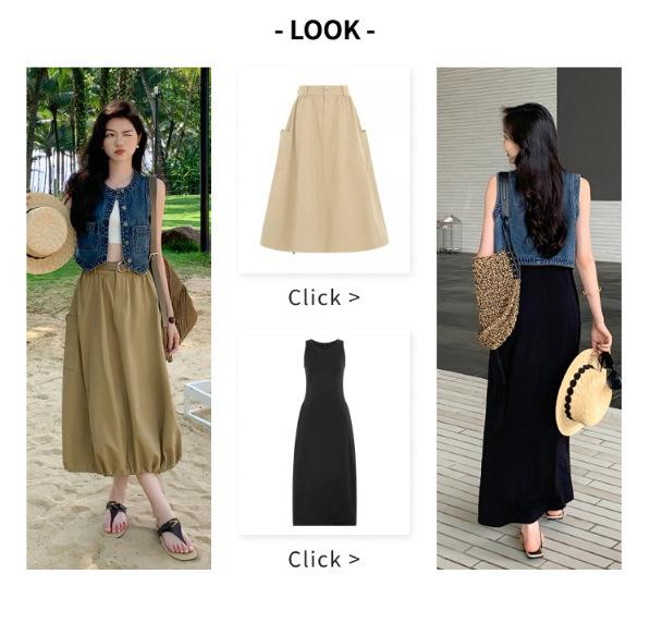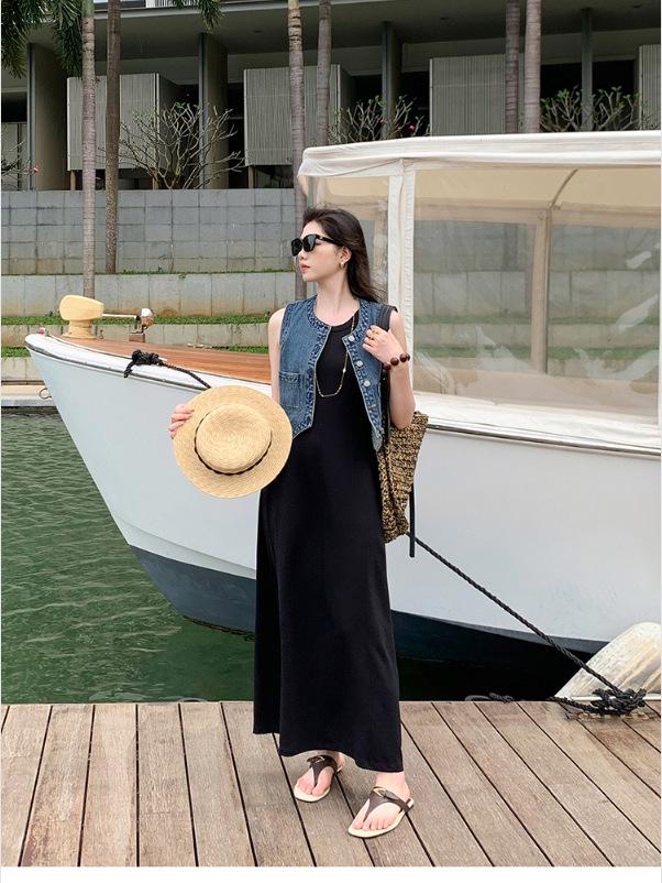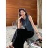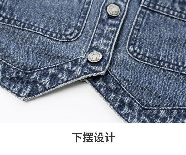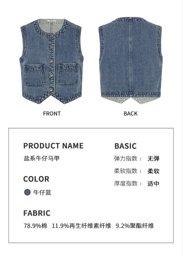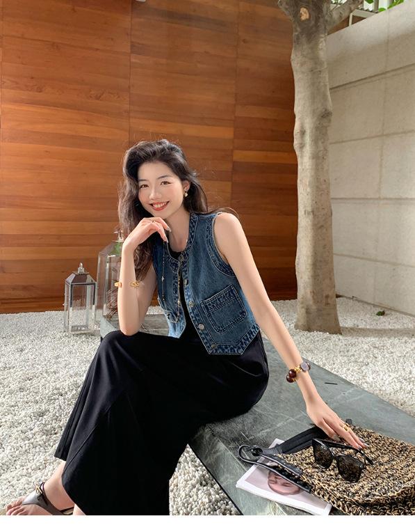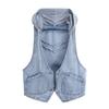 Chaleco de mezclilla estilo sal, guapo y capaz_ Chaleco top de cuello redondo sin mangas corto con bolsillo, moderno, casual y versátil