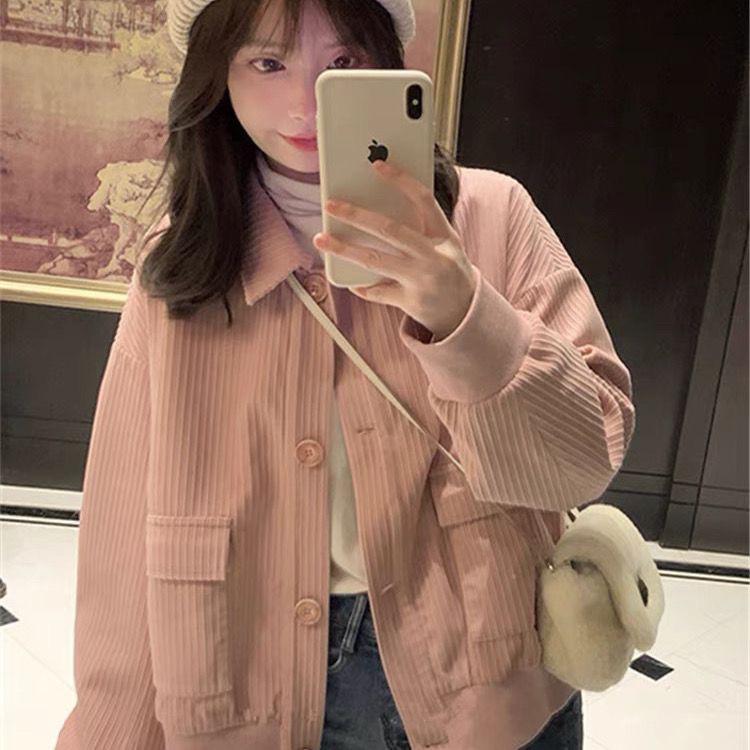 Nueva Chaqueta Corta de Corderoy de Talla Pequeña para Primavera y Otoño para Mujer, Holgada, Versátil, Casual, Abrigo, Top