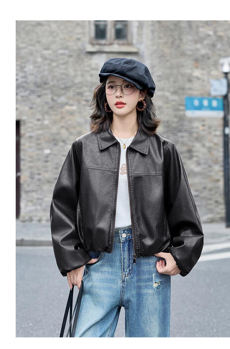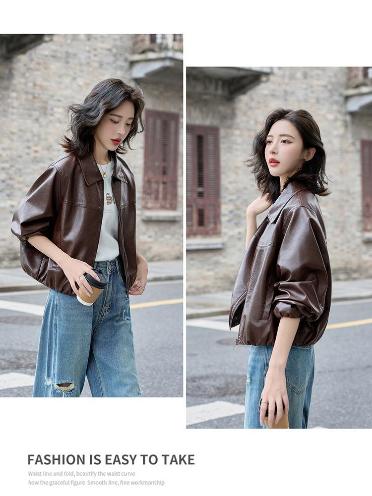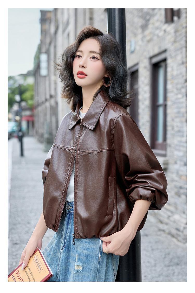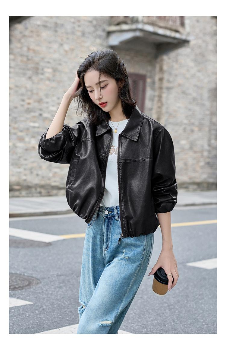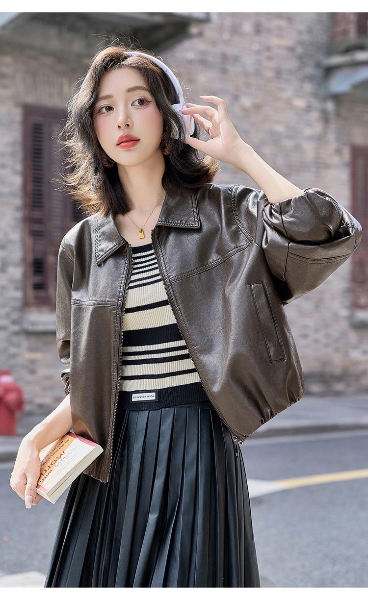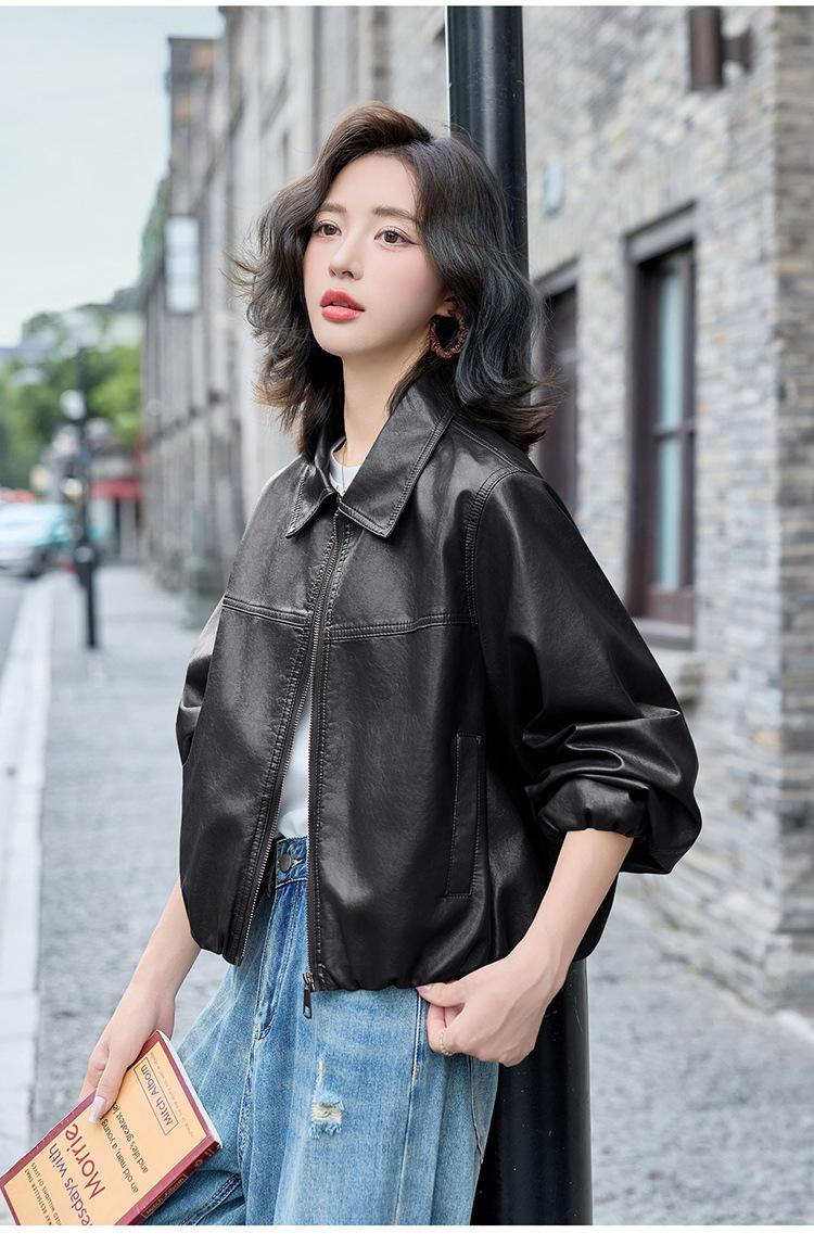 Chaqueta corta de cuero fresca y guapa 2025 primavera y otoño nueva chaqueta top de cuero PU suave con textura casual para mujer