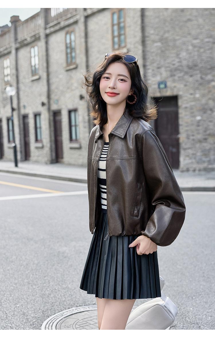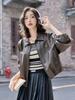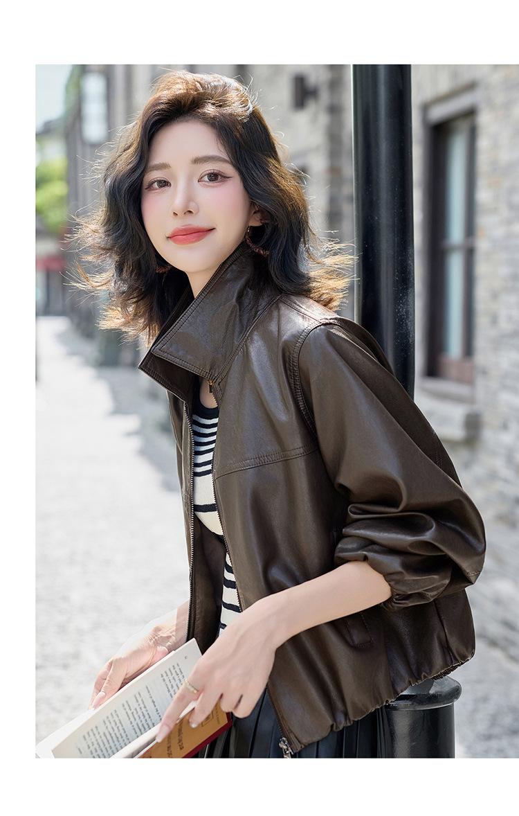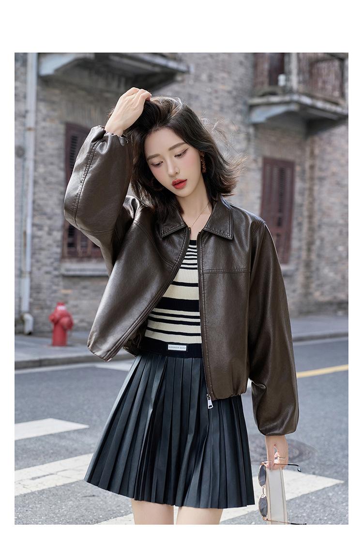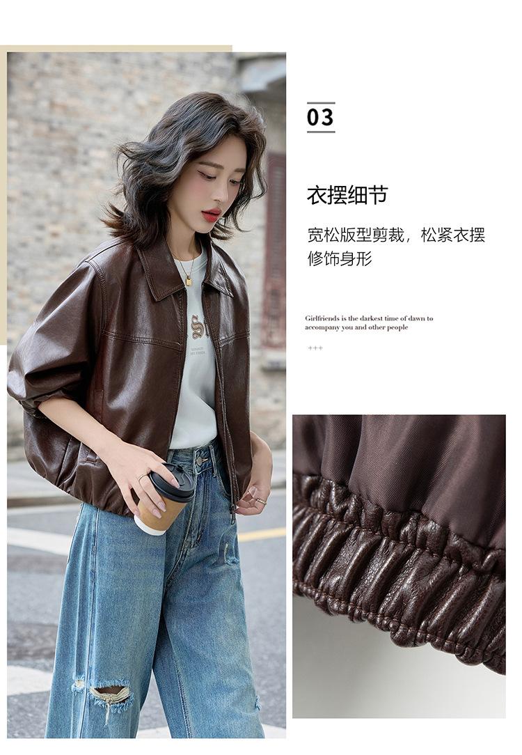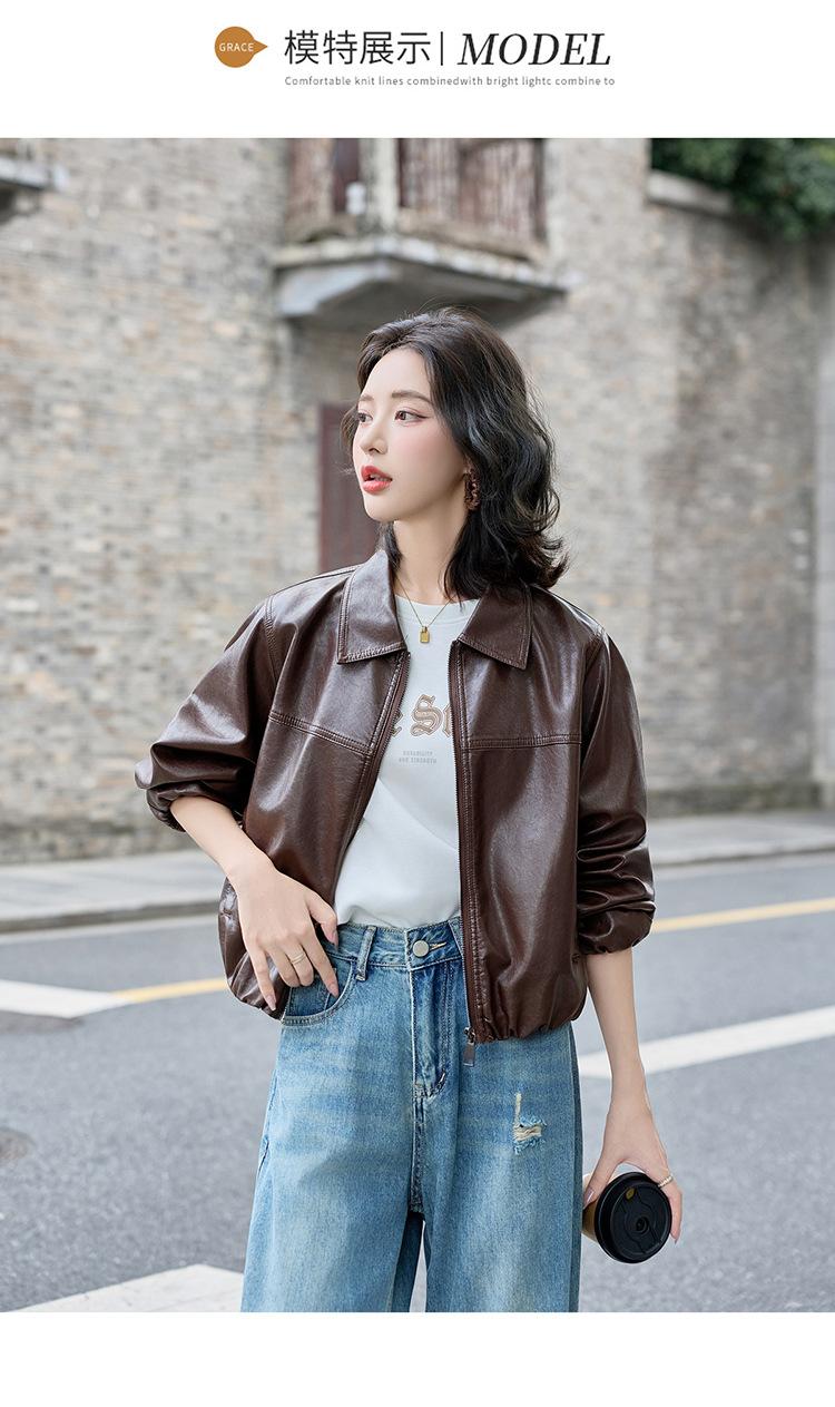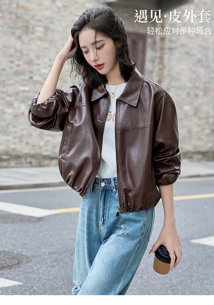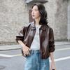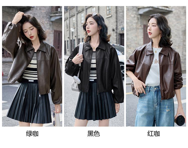 Chaqueta corta de cuero fresca y guapa 2025 primavera y otoño nueva chaqueta top de cuero PU suave con textura casual para mujer