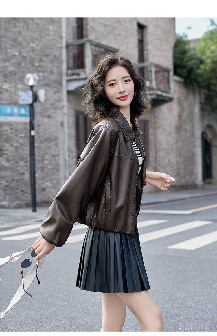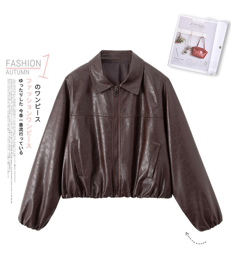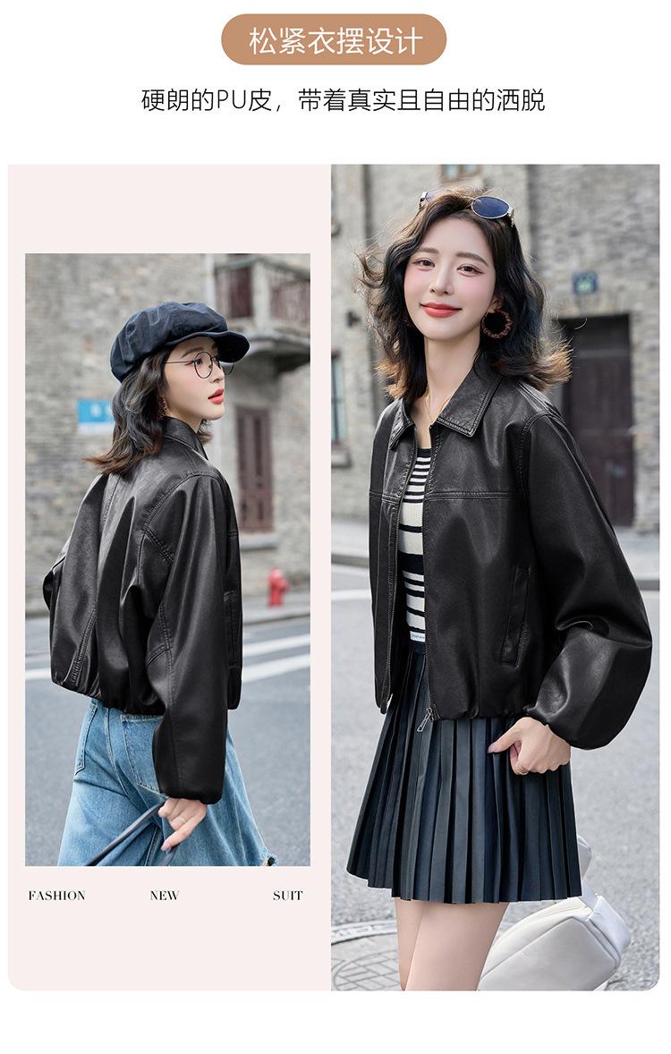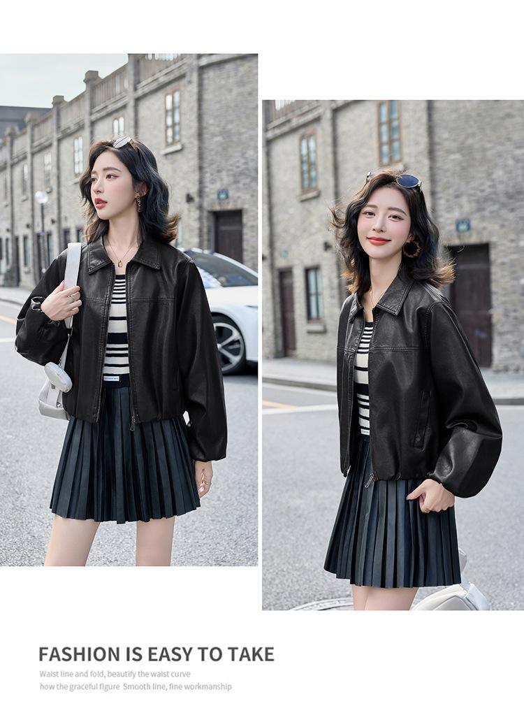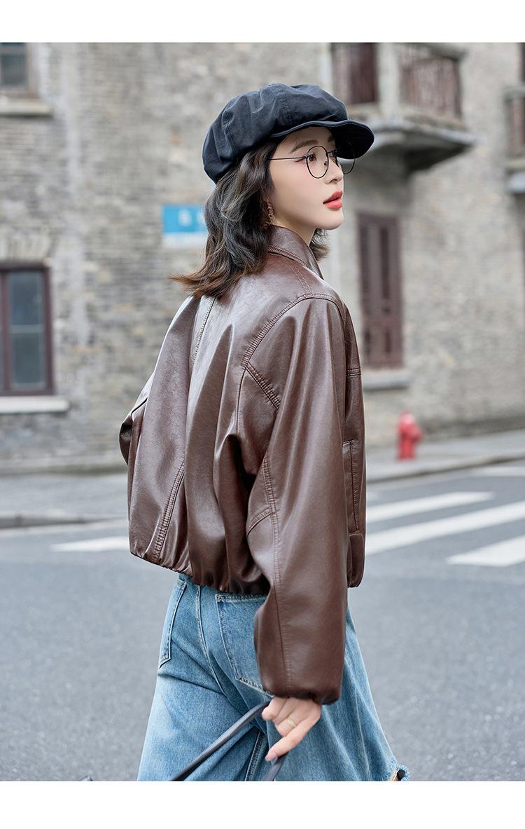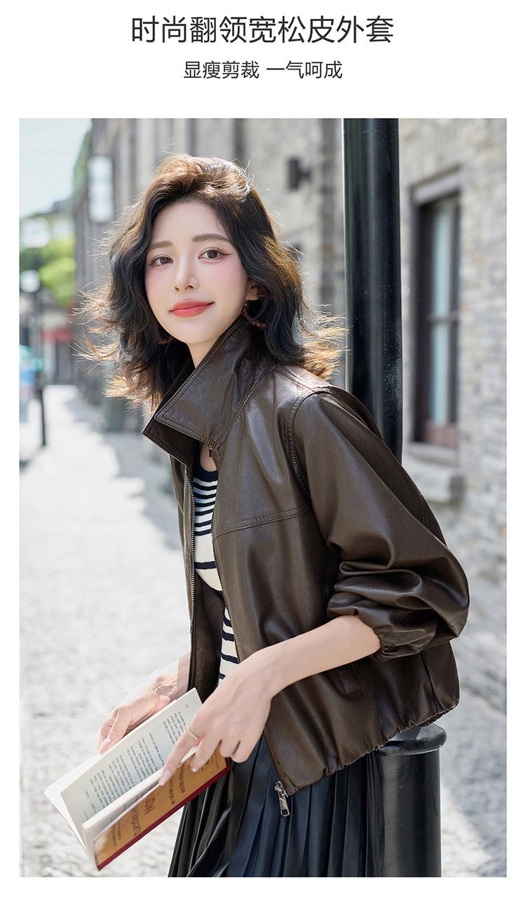 Chaqueta corta de cuero fresca y guapa 2025 primavera y otoño nueva chaqueta top de cuero PU suave con textura casual para mujer