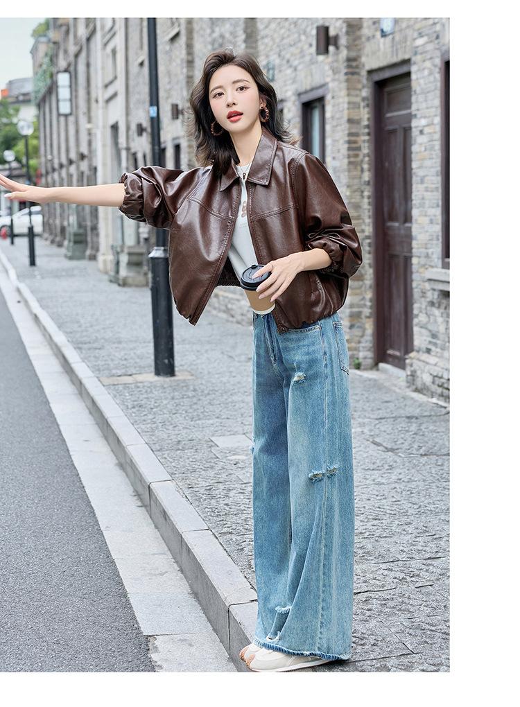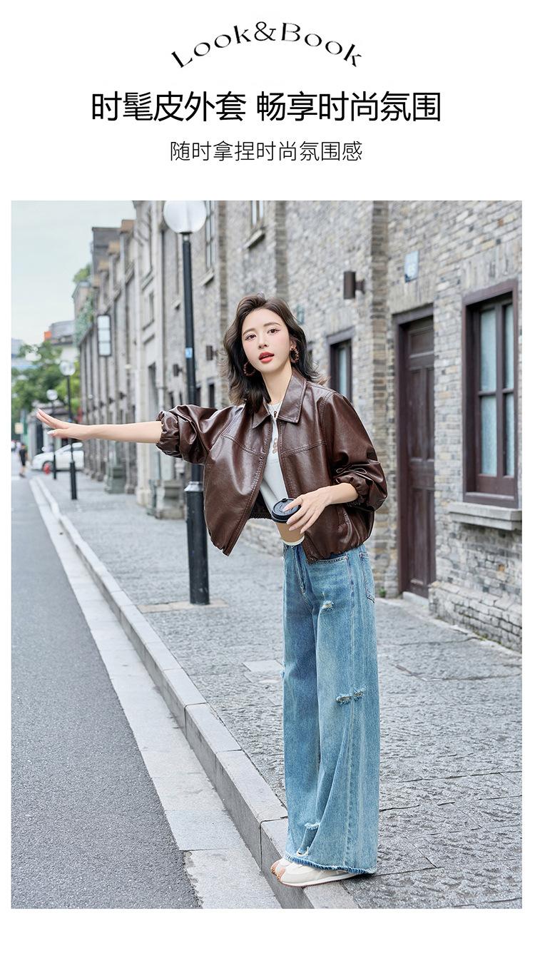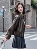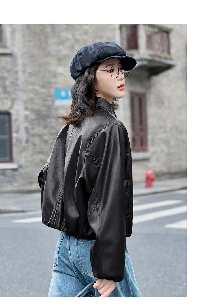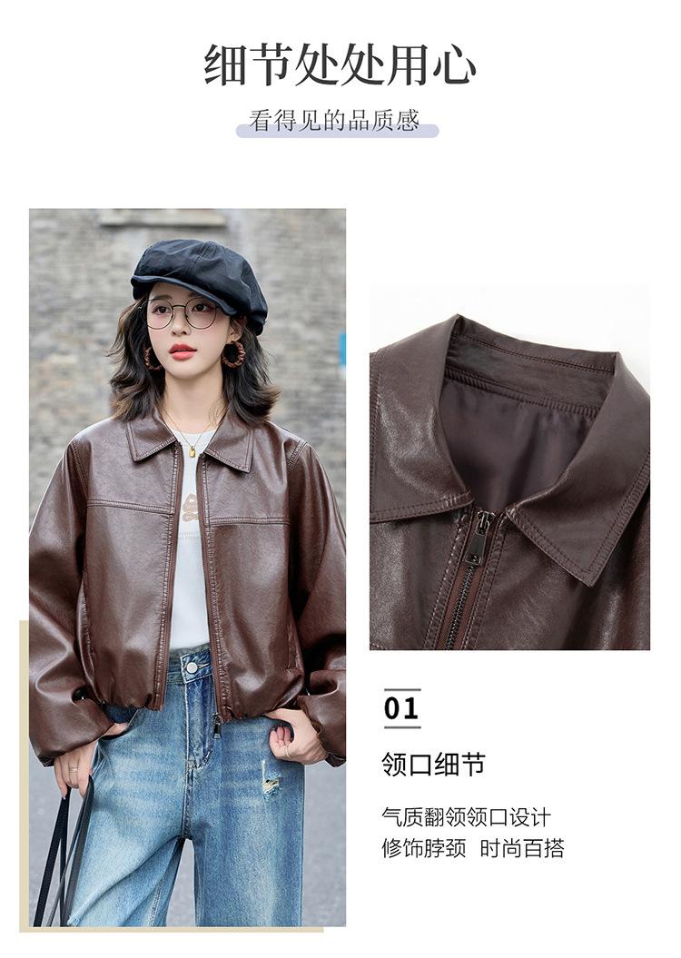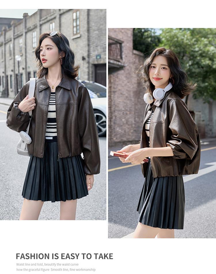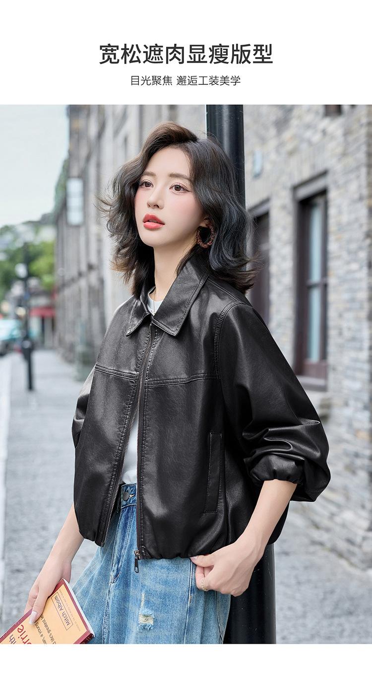 Chaqueta corta de cuero fresca y guapa 2025 primavera y otoño nueva chaqueta top de cuero PU suave con textura casual para mujer