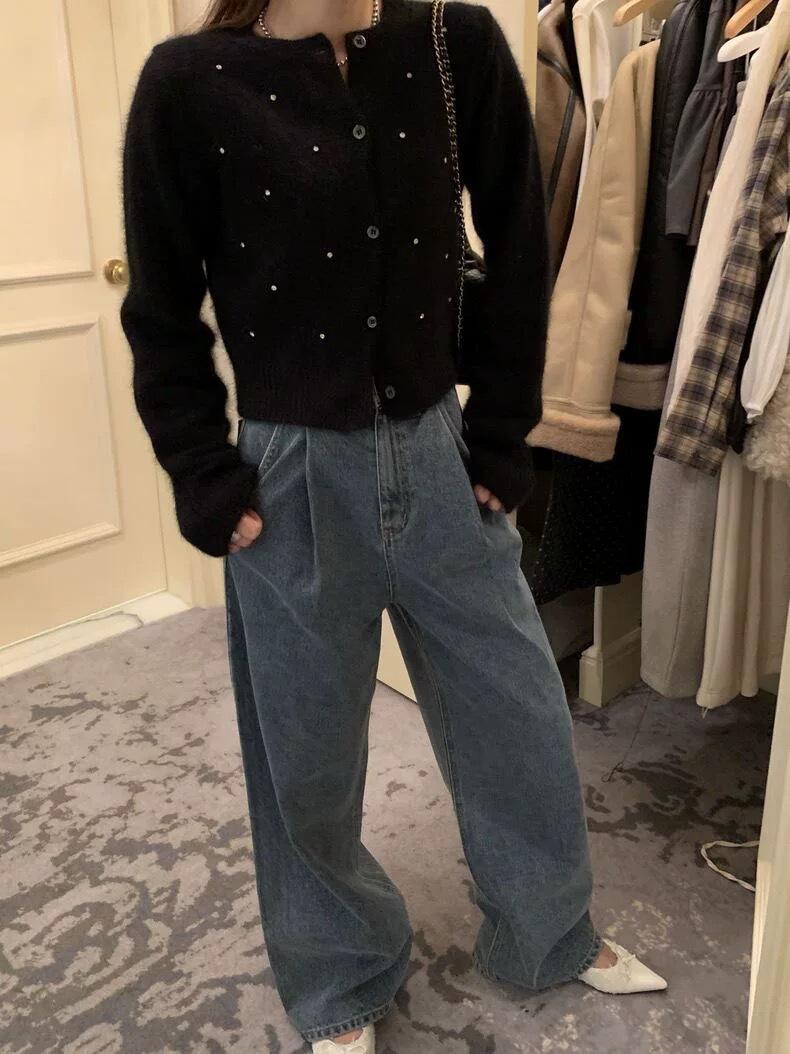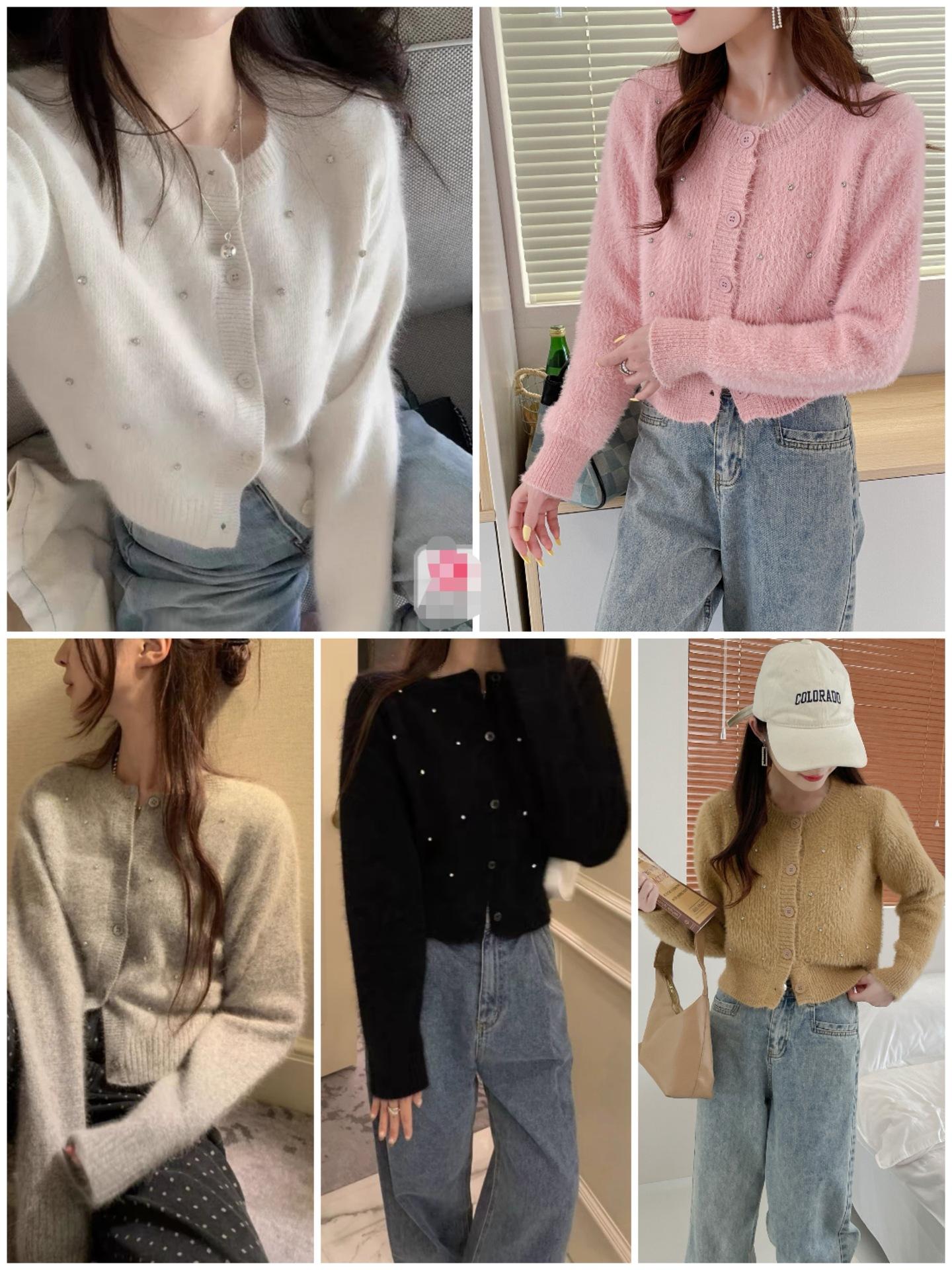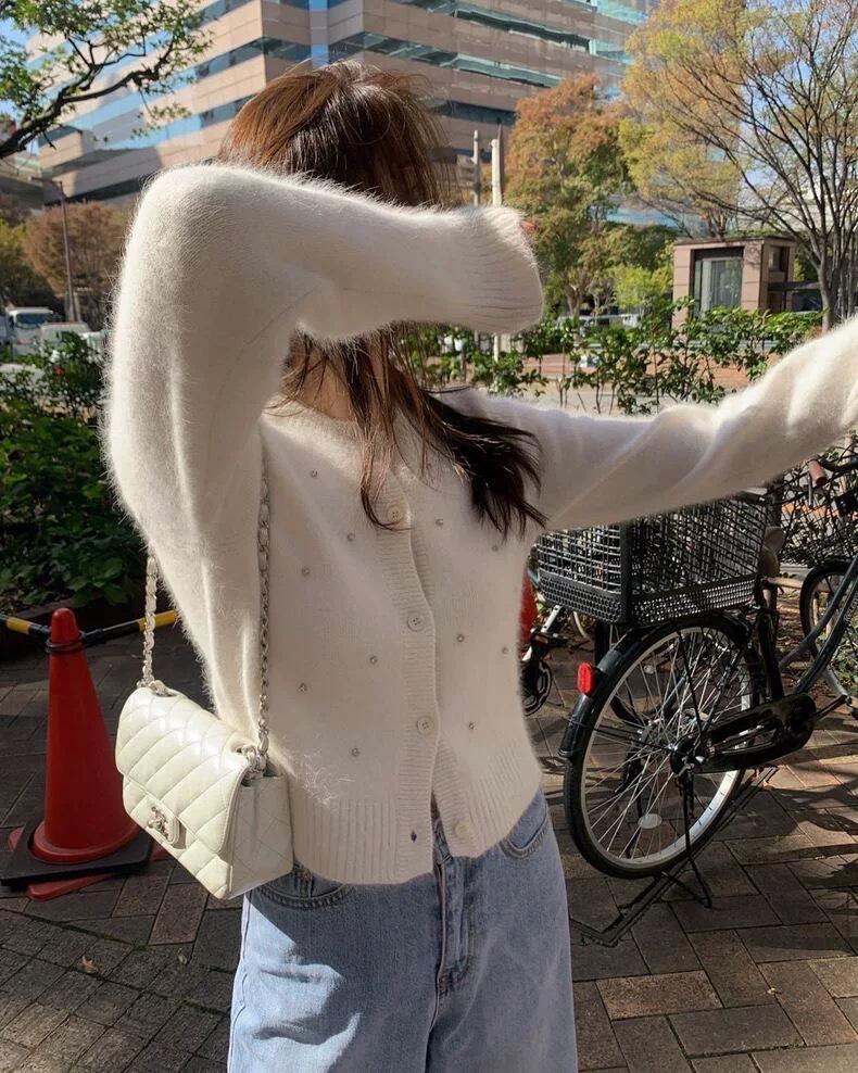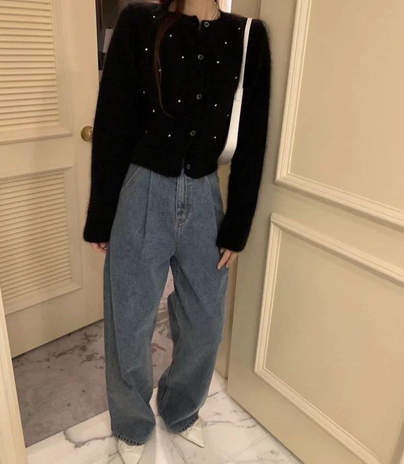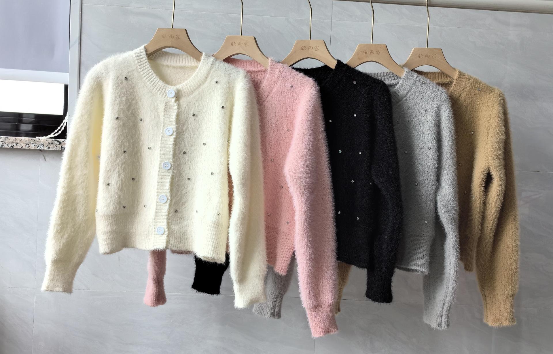 2025 Nuevo Otoño e Invierno Diseño Francés Cárdigan Elegante de Punto Diamante Brillante Estilo Dulce y Gentil Prenda Exterior Suéter de Alta Calidad para Mujer