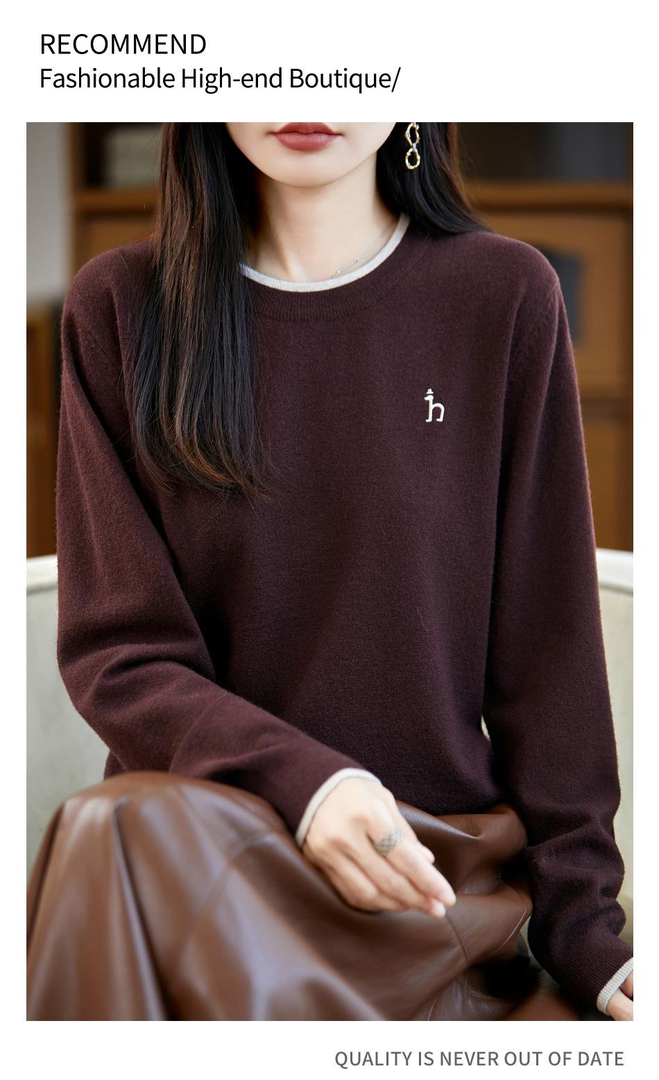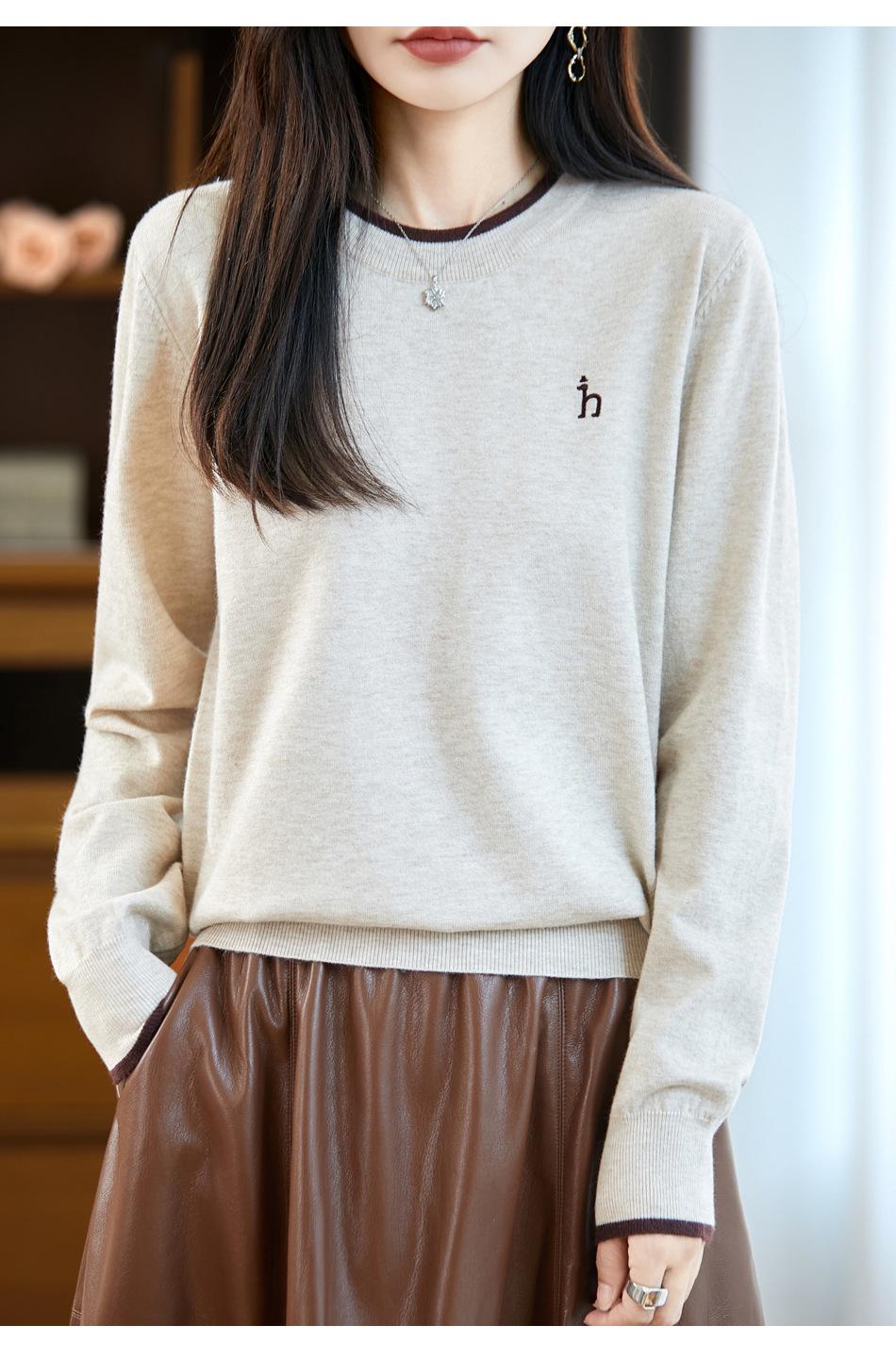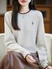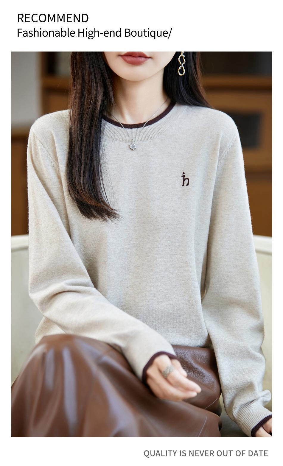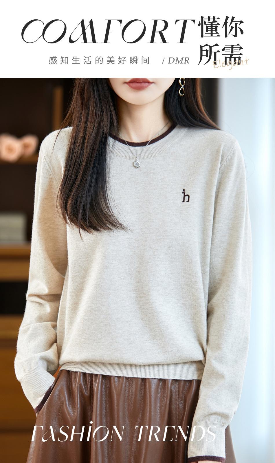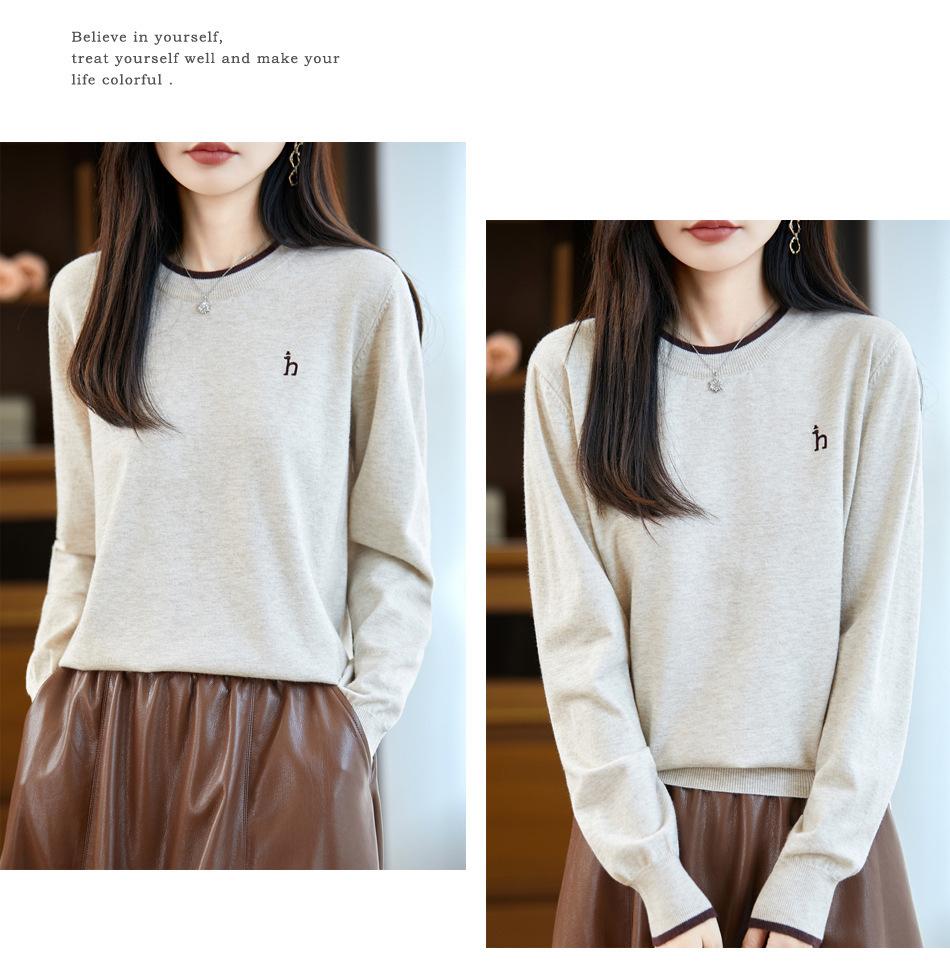 Suéter Base Suave de Punto para Mujer Casual Simple Adelgazante con Cuello Redondo y Bloque de Color con Bordado de Letras Nuevo Otoño/Invierno 2025