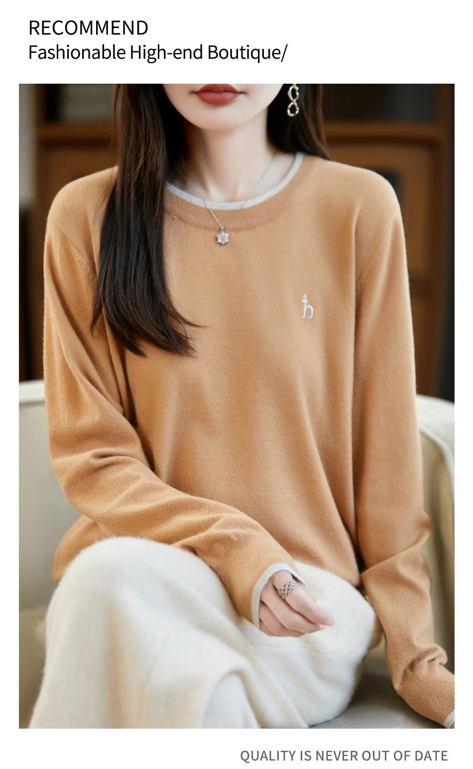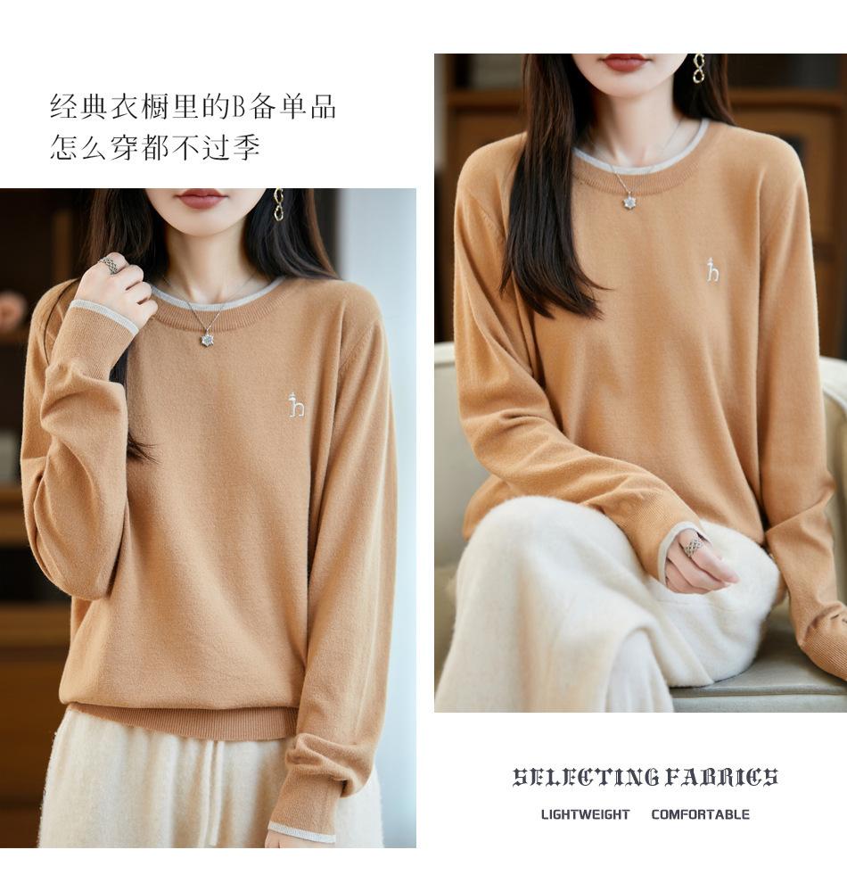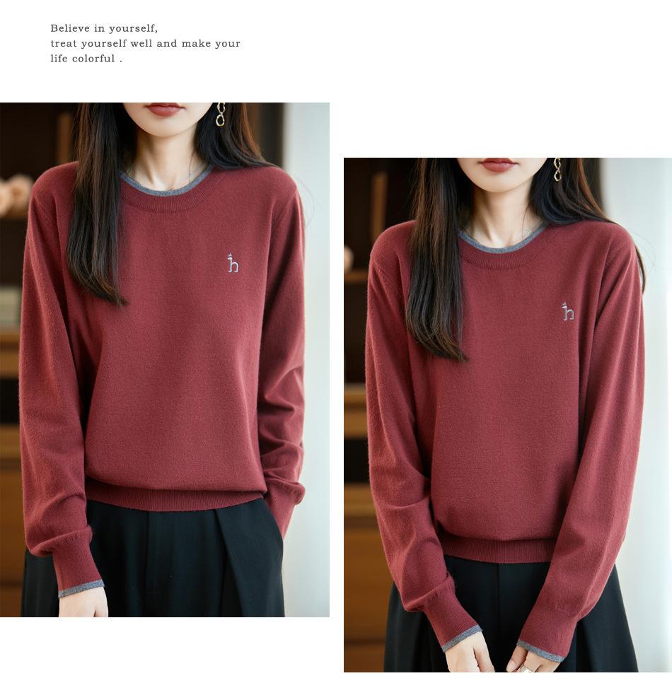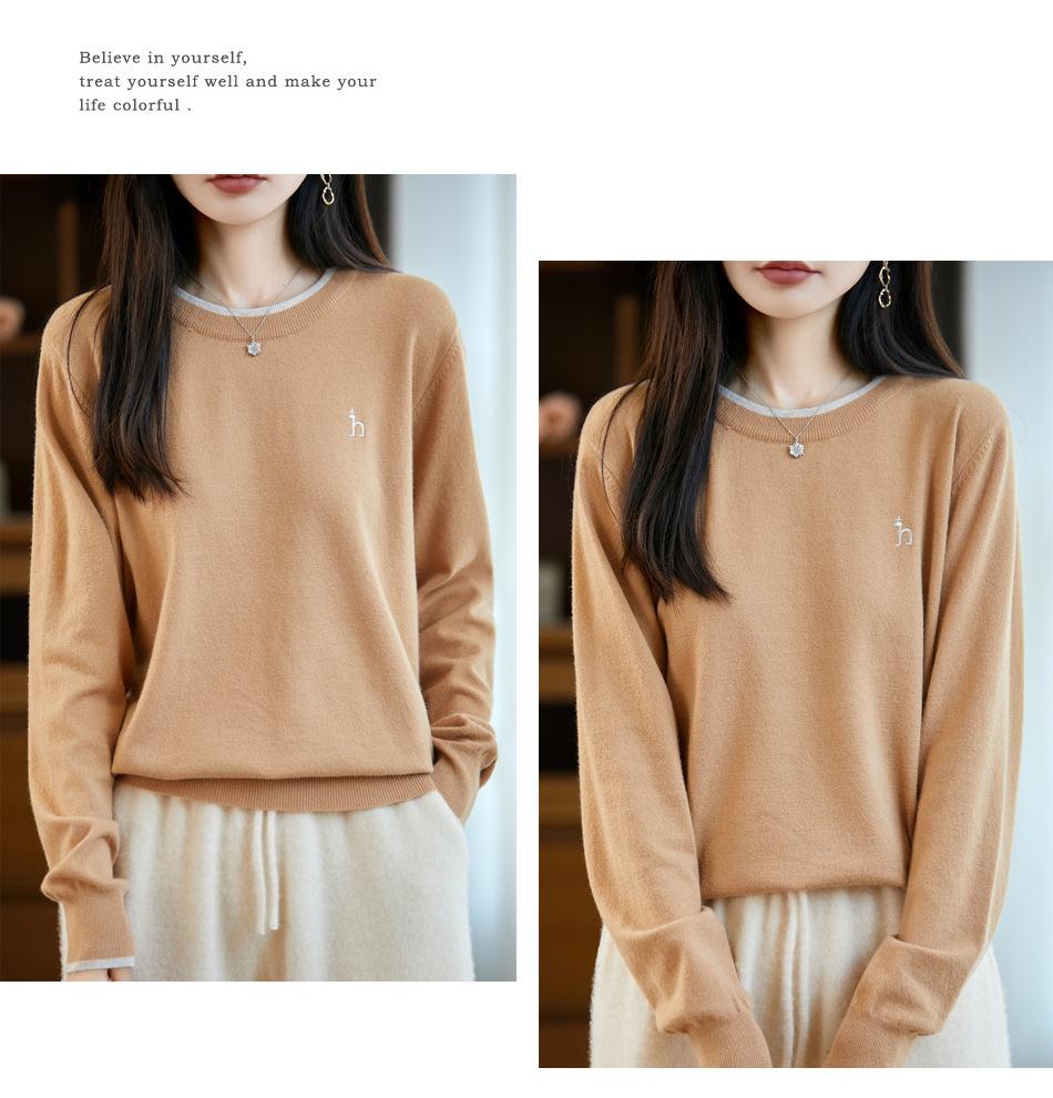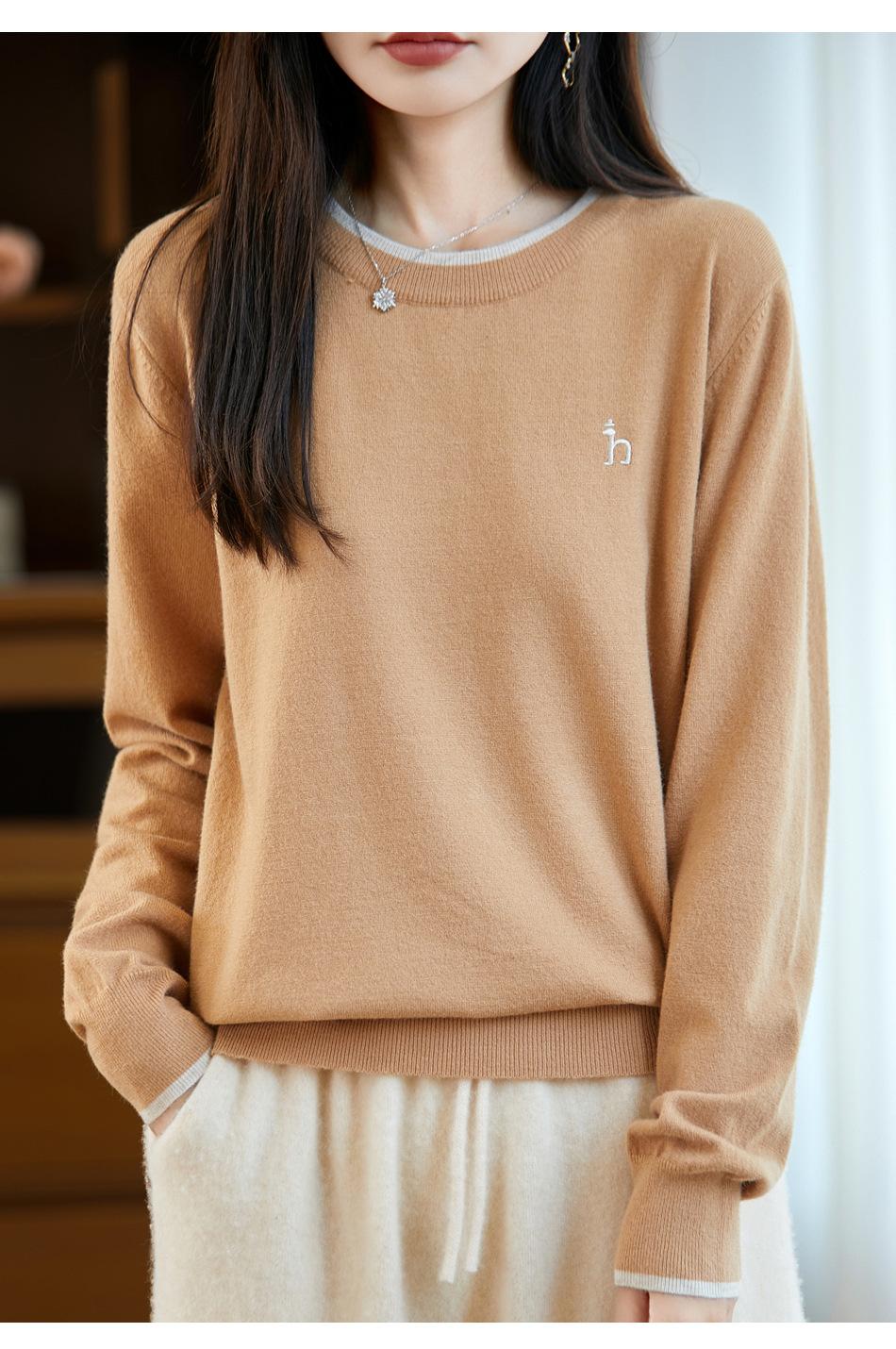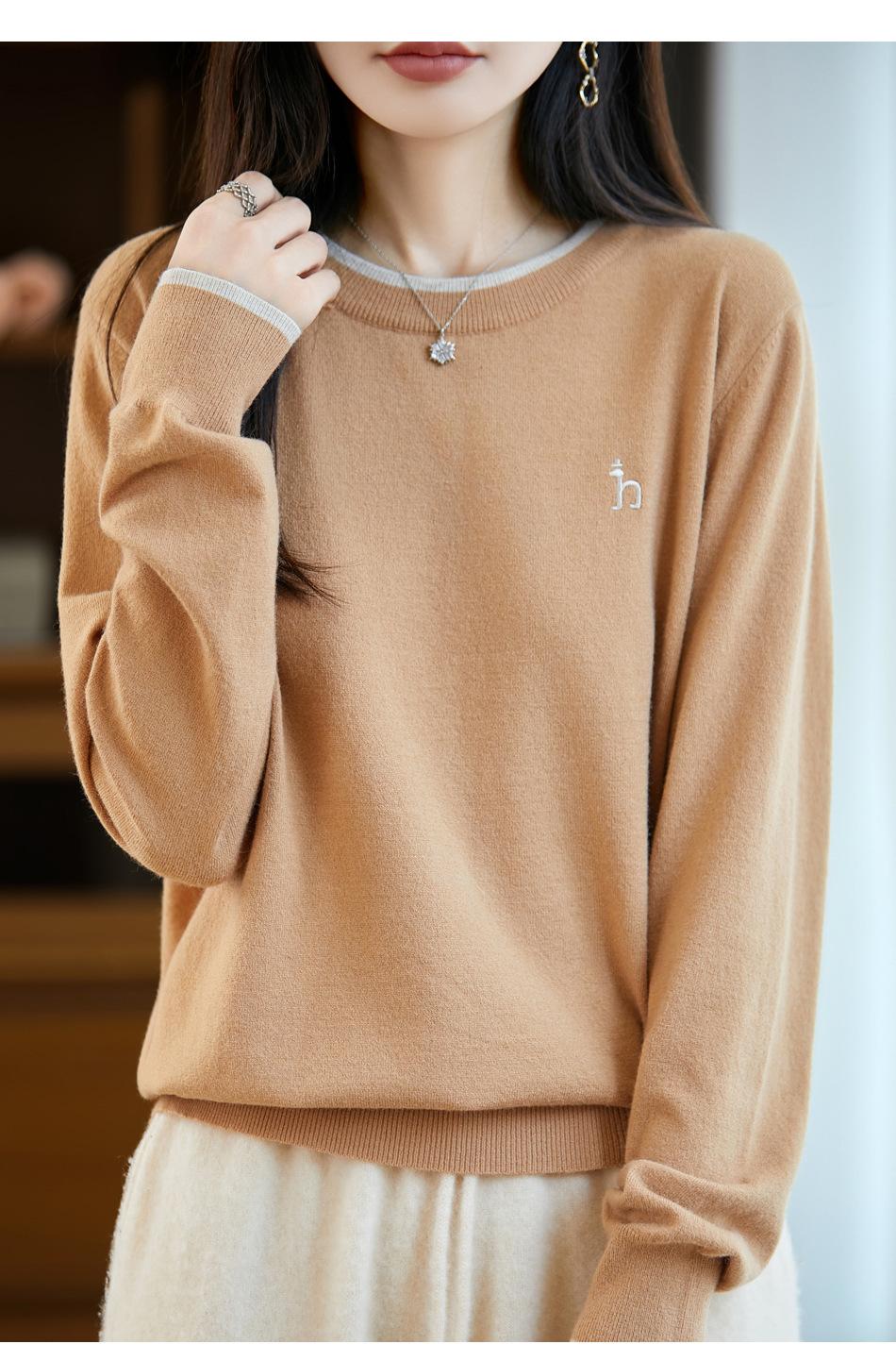 Suéter Base Suave de Punto para Mujer Casual Simple Adelgazante con Cuello Redondo y Bloque de Color con Bordado de Letras Nuevo Otoño/Invierno 2025
