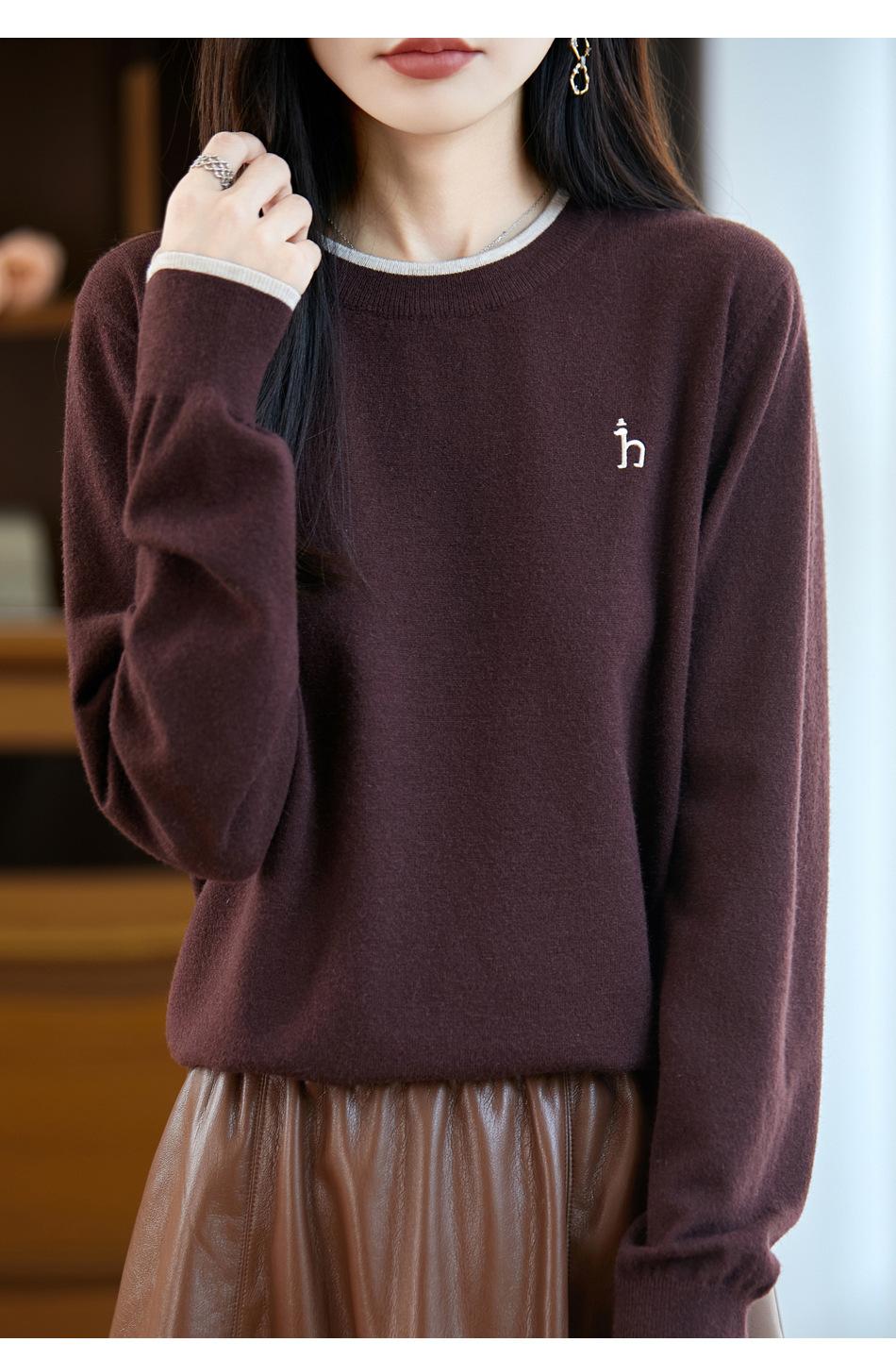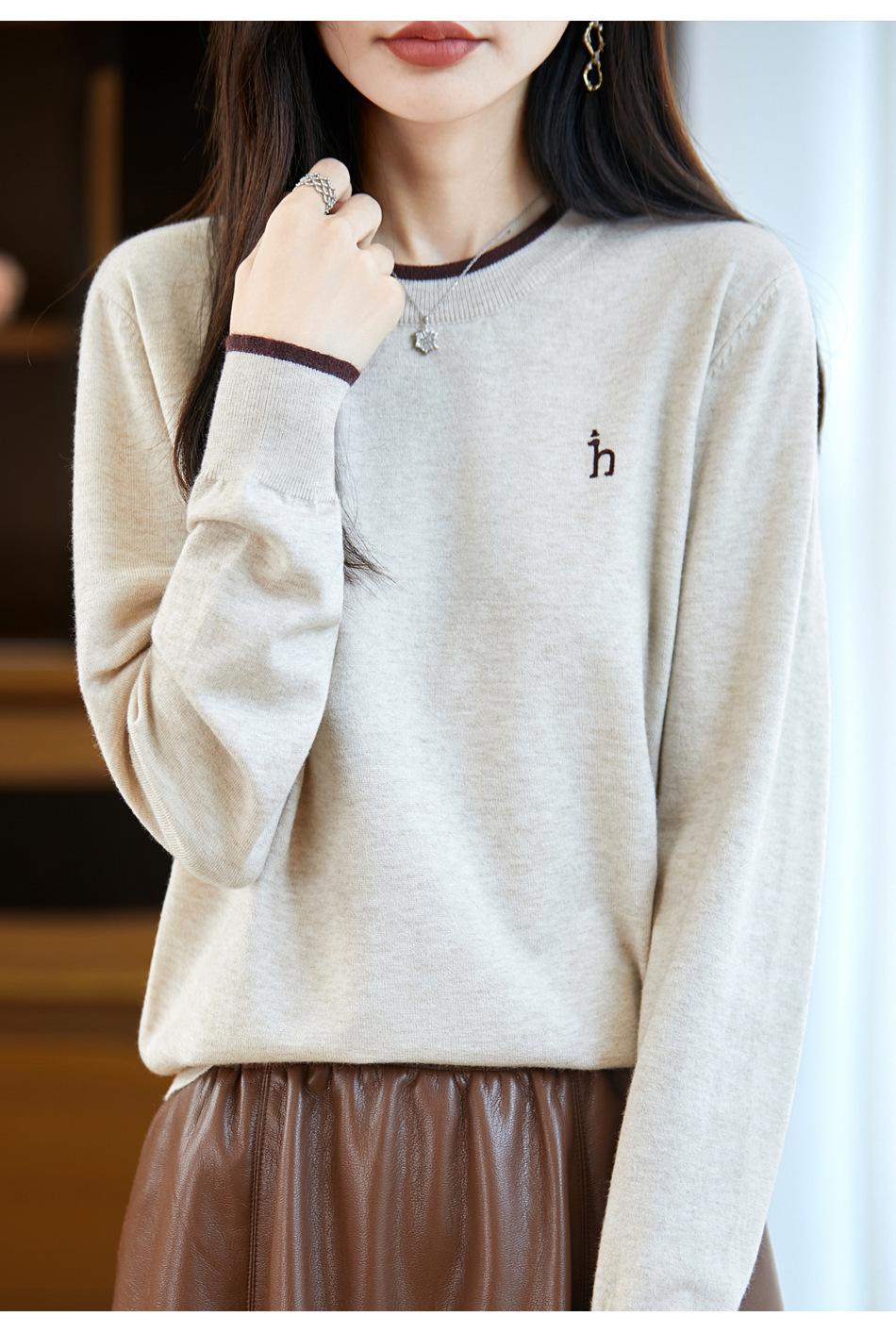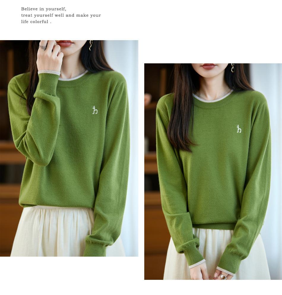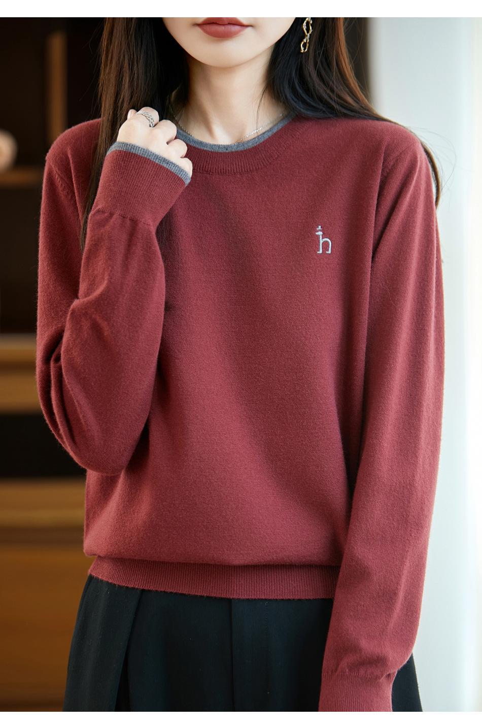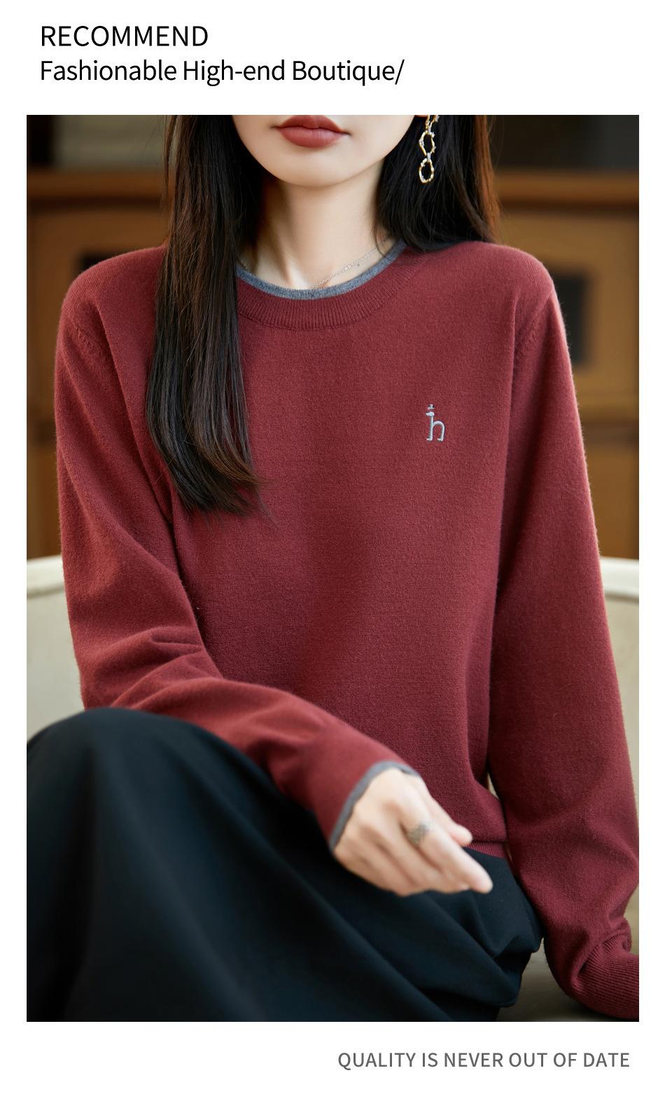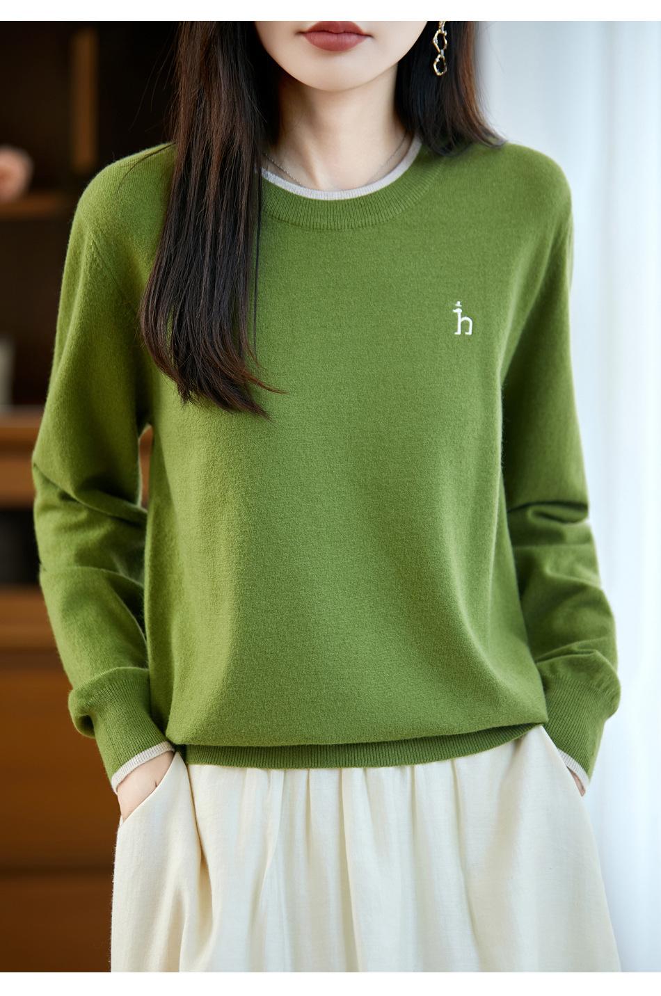 Suéter Base Suave de Punto para Mujer Casual Simple Adelgazante con Cuello Redondo y Bloque de Color con Bordado de Letras Nuevo Otoño/Invierno 2025