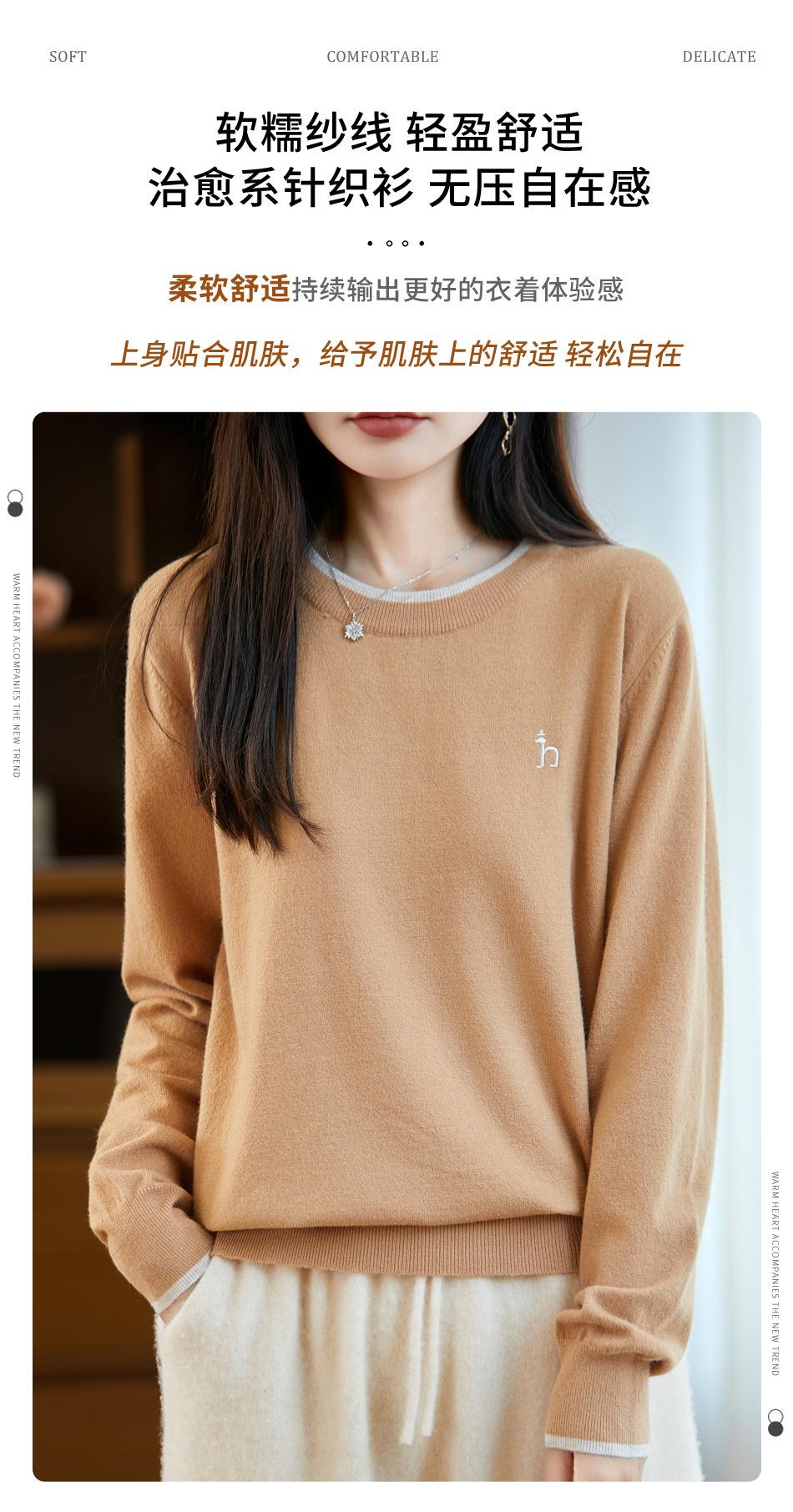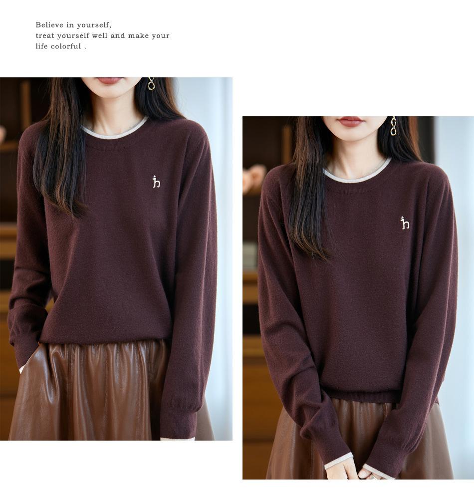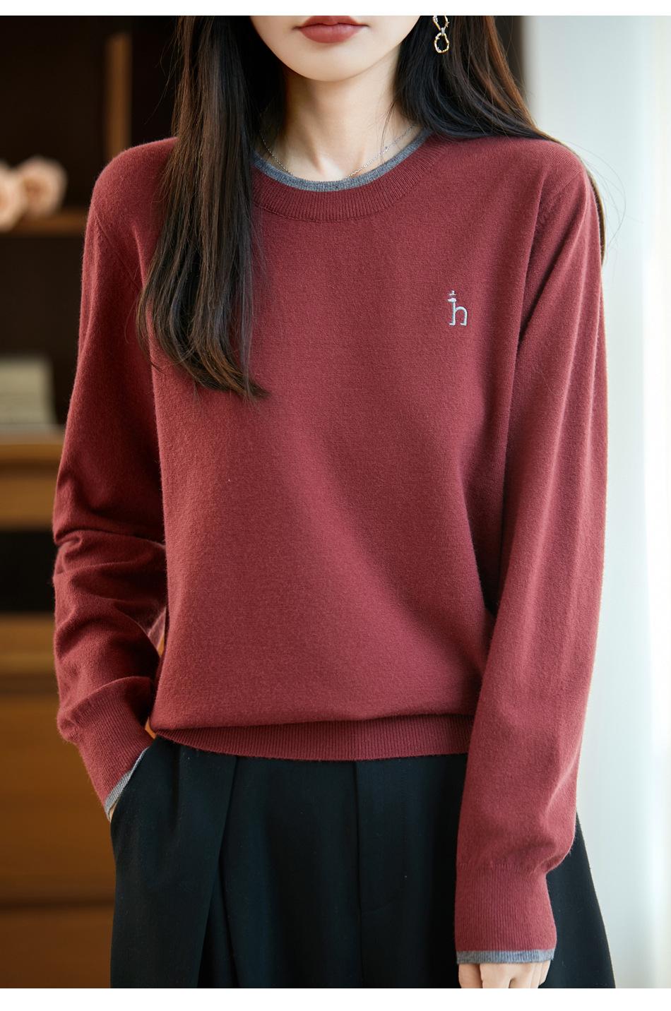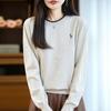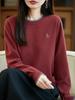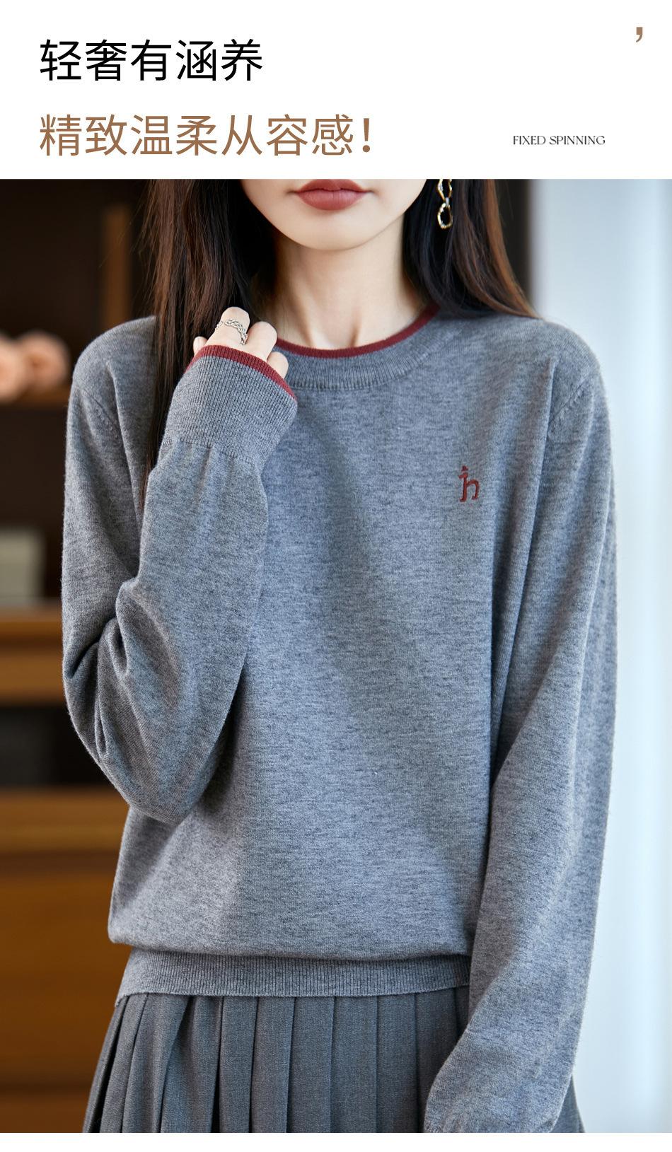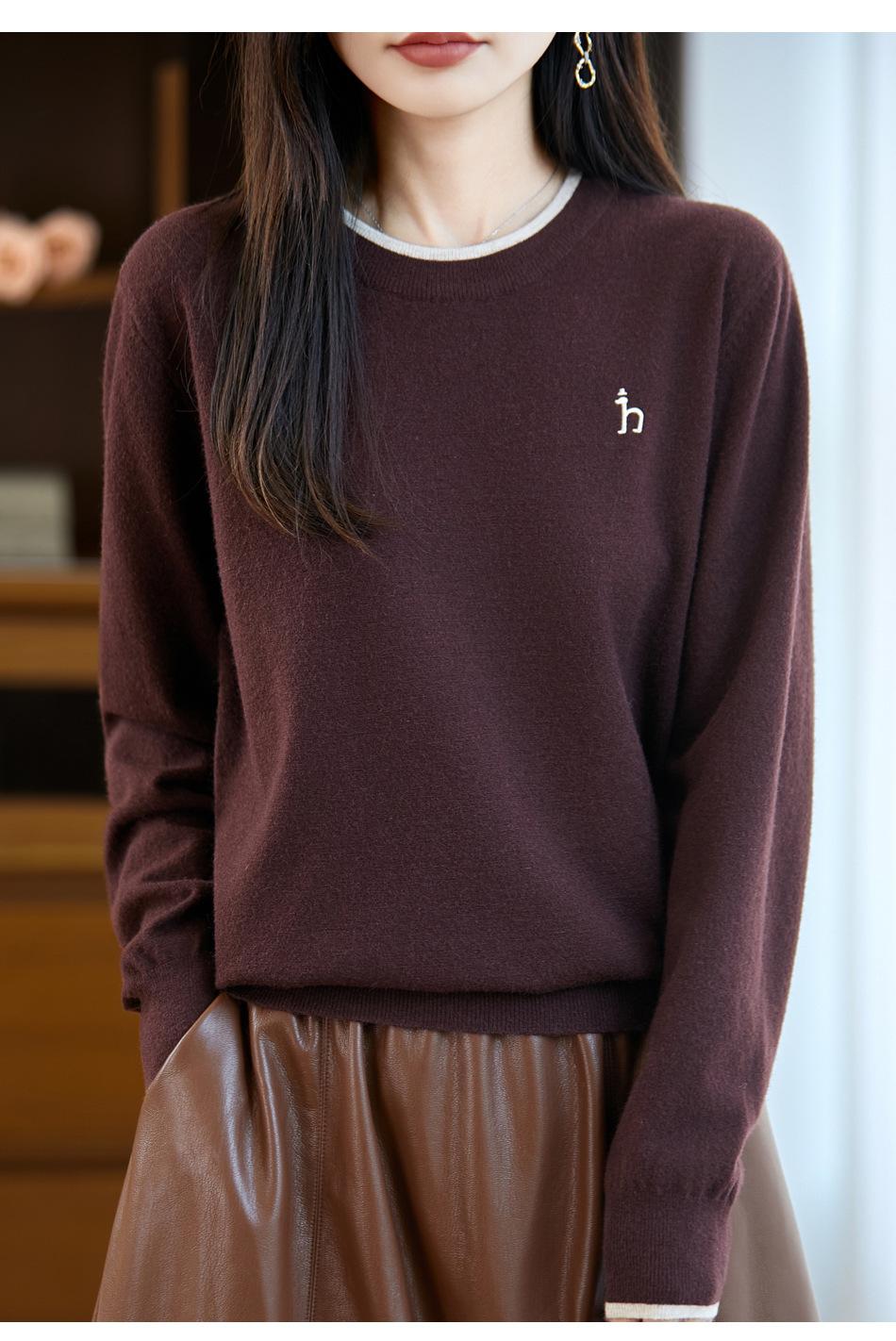 Suéter Base Suave de Punto para Mujer Casual Simple Adelgazante con Cuello Redondo y Bloque de Color con Bordado de Letras Nuevo Otoño/Invierno 2025