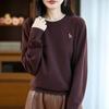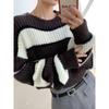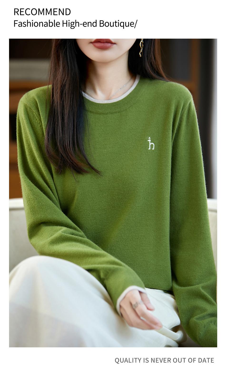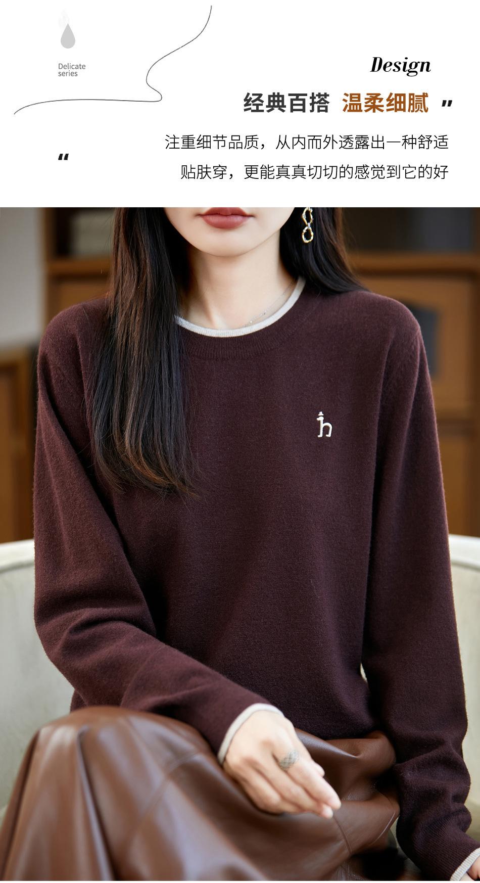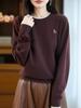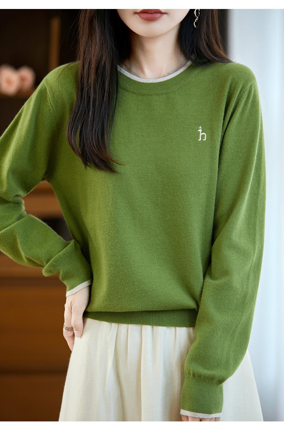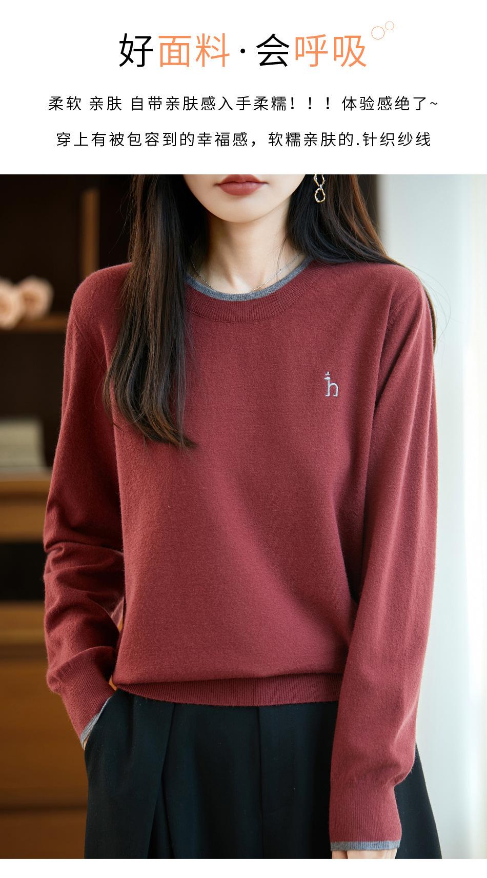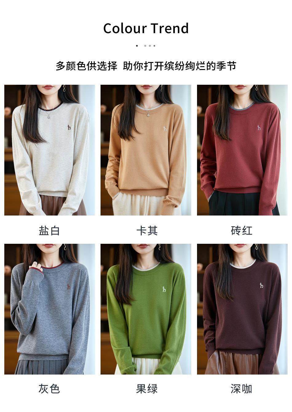 Suéter Base Suave de Punto para Mujer Casual Simple Adelgazante con Cuello Redondo y Bloque de Color con Bordado de Letras Nuevo Otoño/Invierno 2025