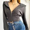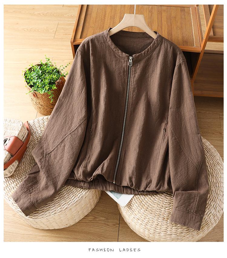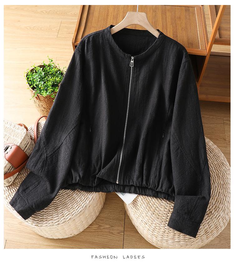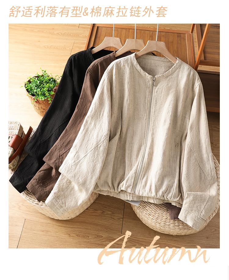 Foto Real 100% Casual Minimalista Chaqueta Corta de Doble Capa para Mujer Otoño Cárdigan con Cremallera Ropa Exterior Top Suelto Chaqueta de Mujer