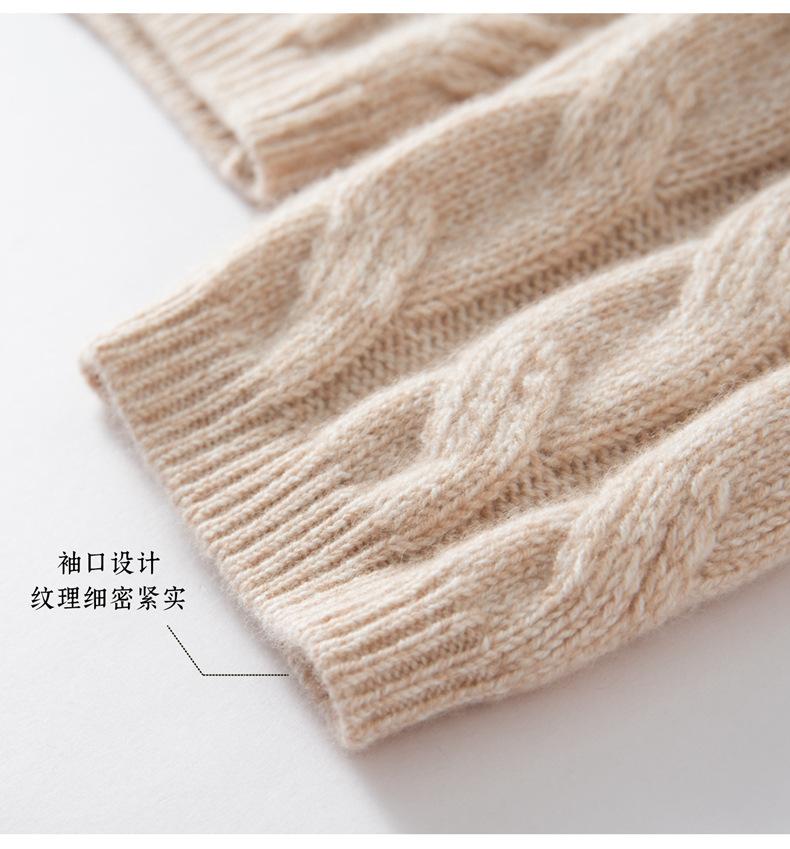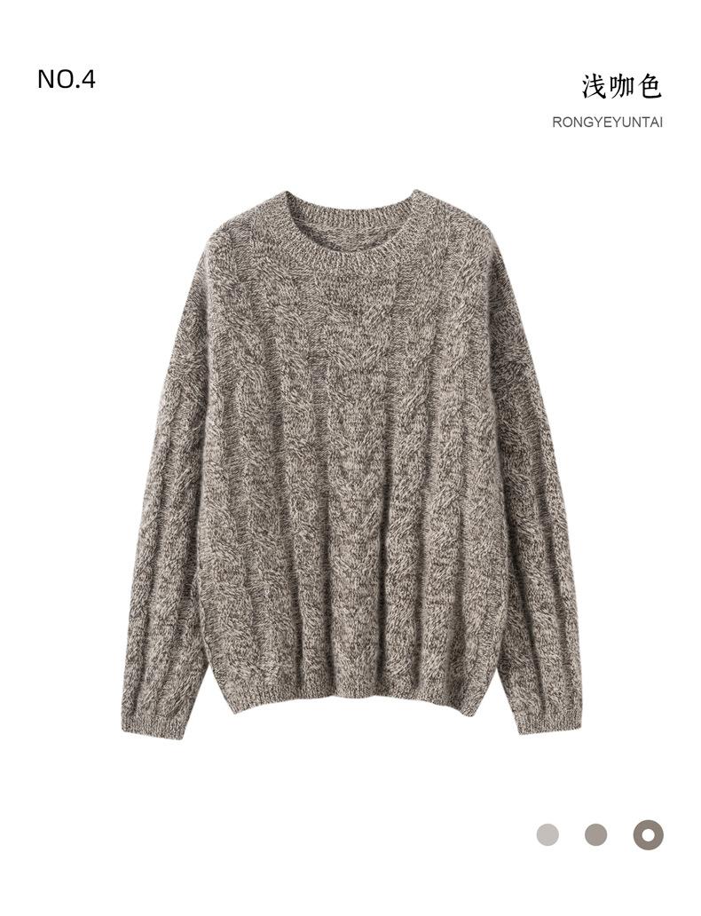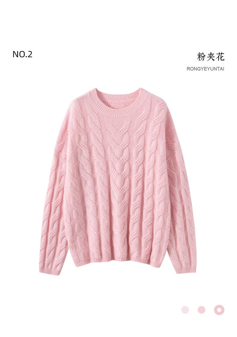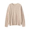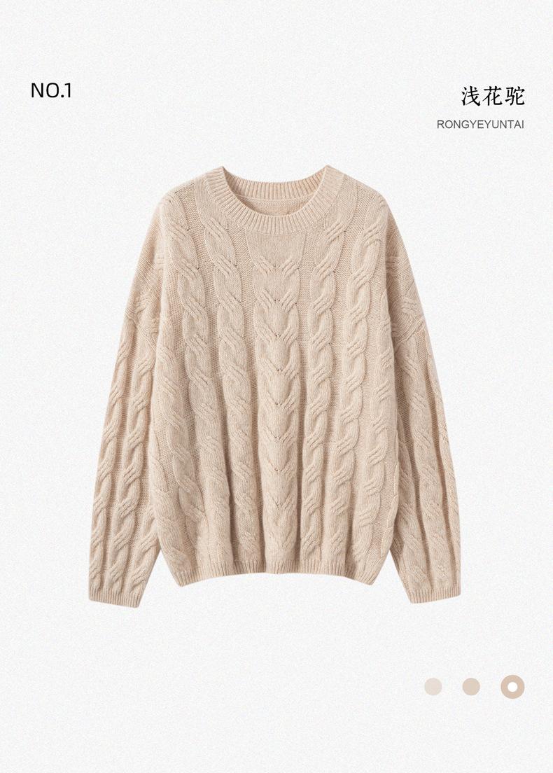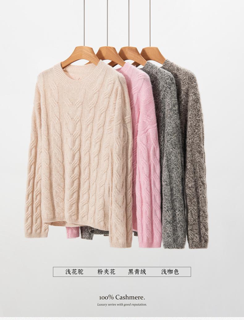 Suéter de Cachemira para Mujer 100% Cachemira Pura Casual Versátil Punto Trenzado Holgado Cuello Redondo Jersey Manga Larga