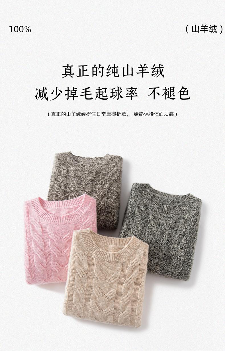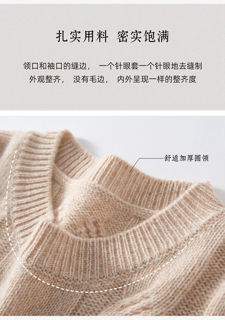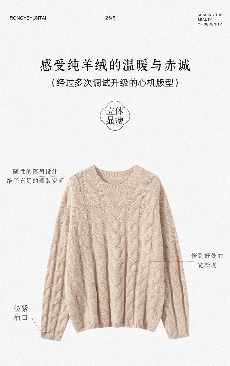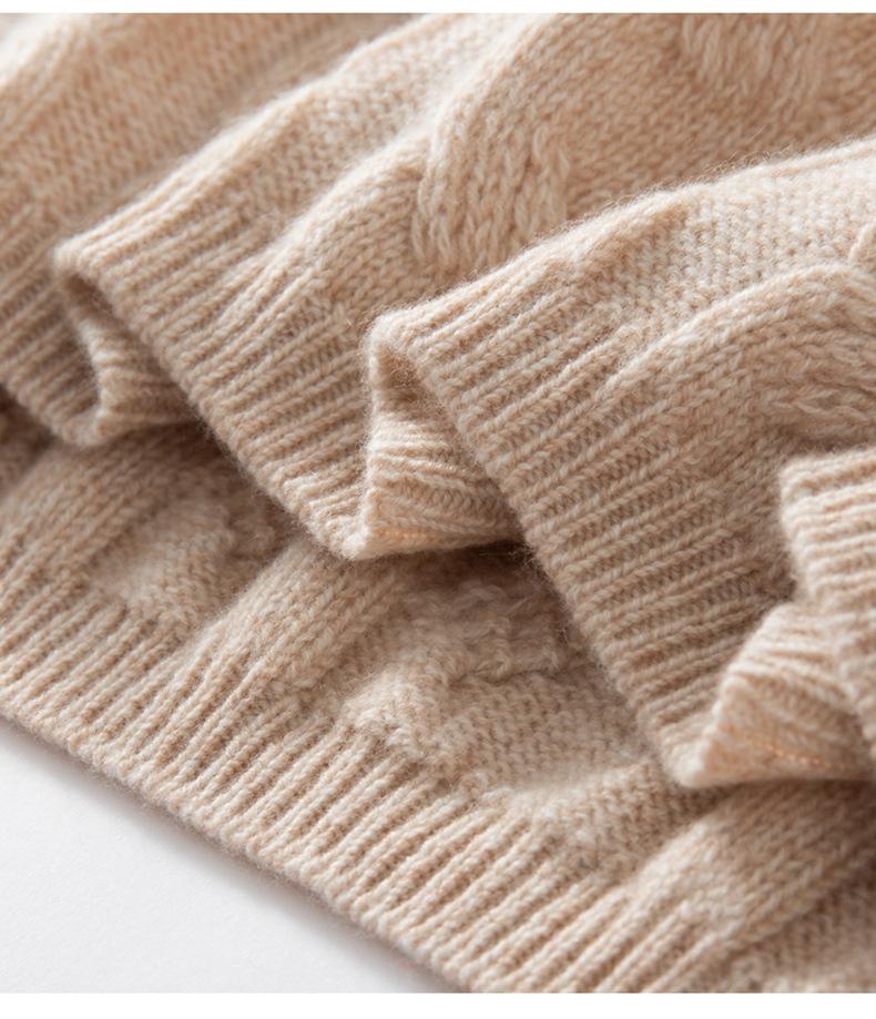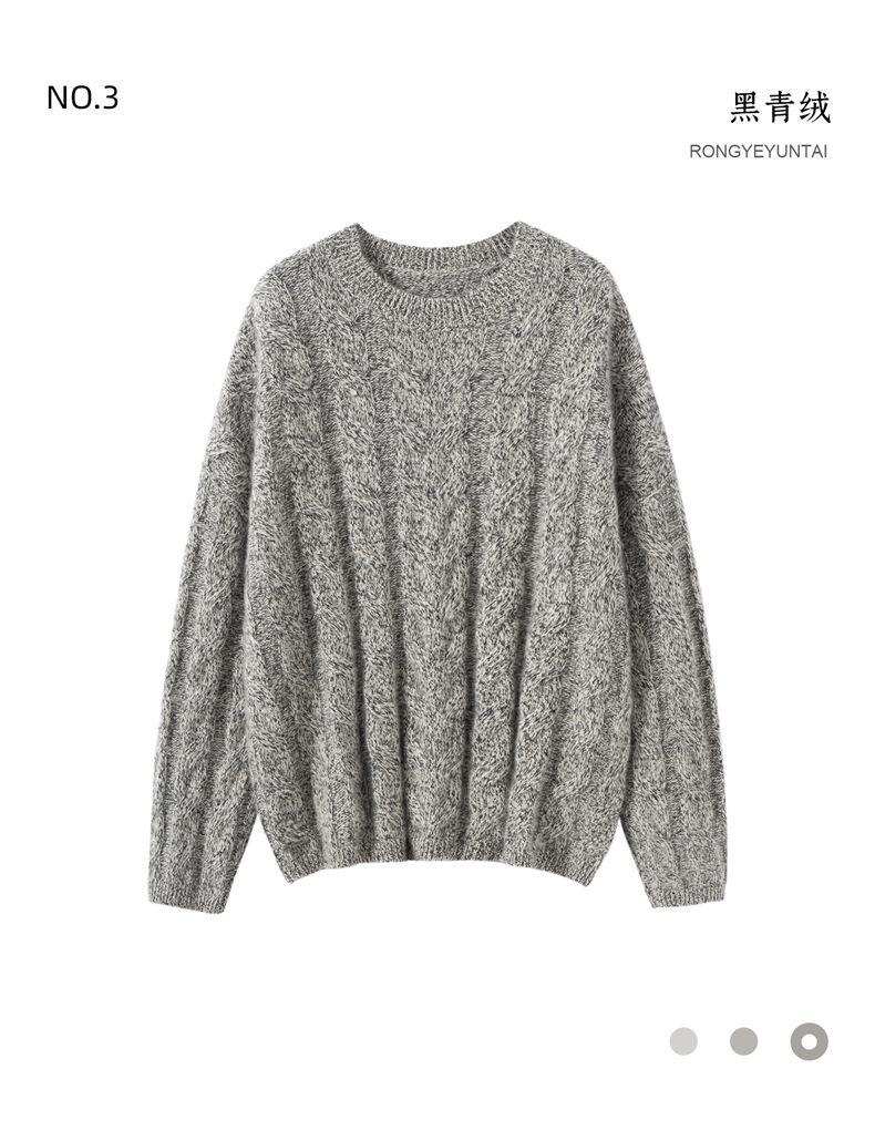 Suéter de Cachemira para Mujer 100% Cachemira Pura Casual Versátil Punto Trenzado Holgado Cuello Redondo Jersey Manga Larga