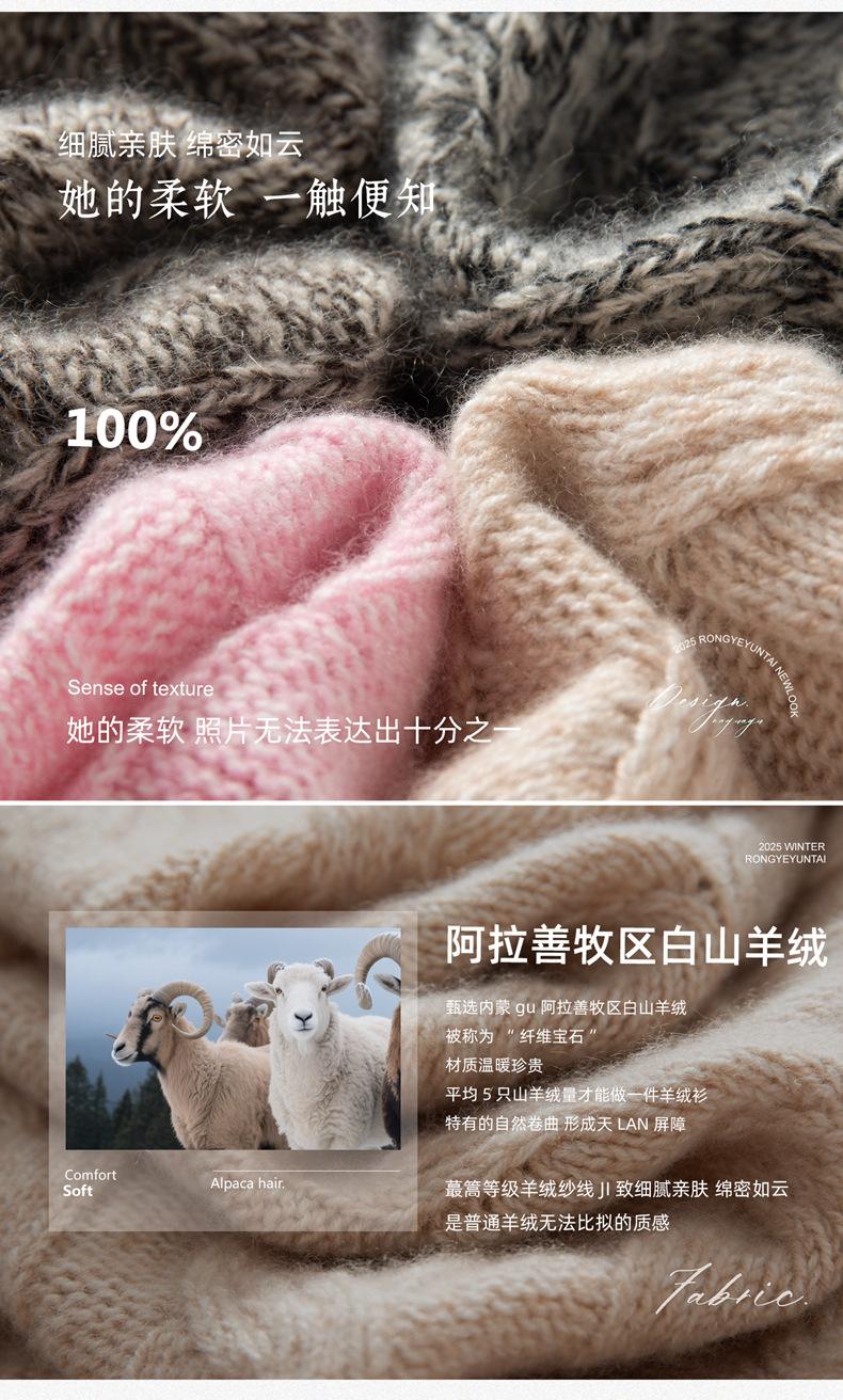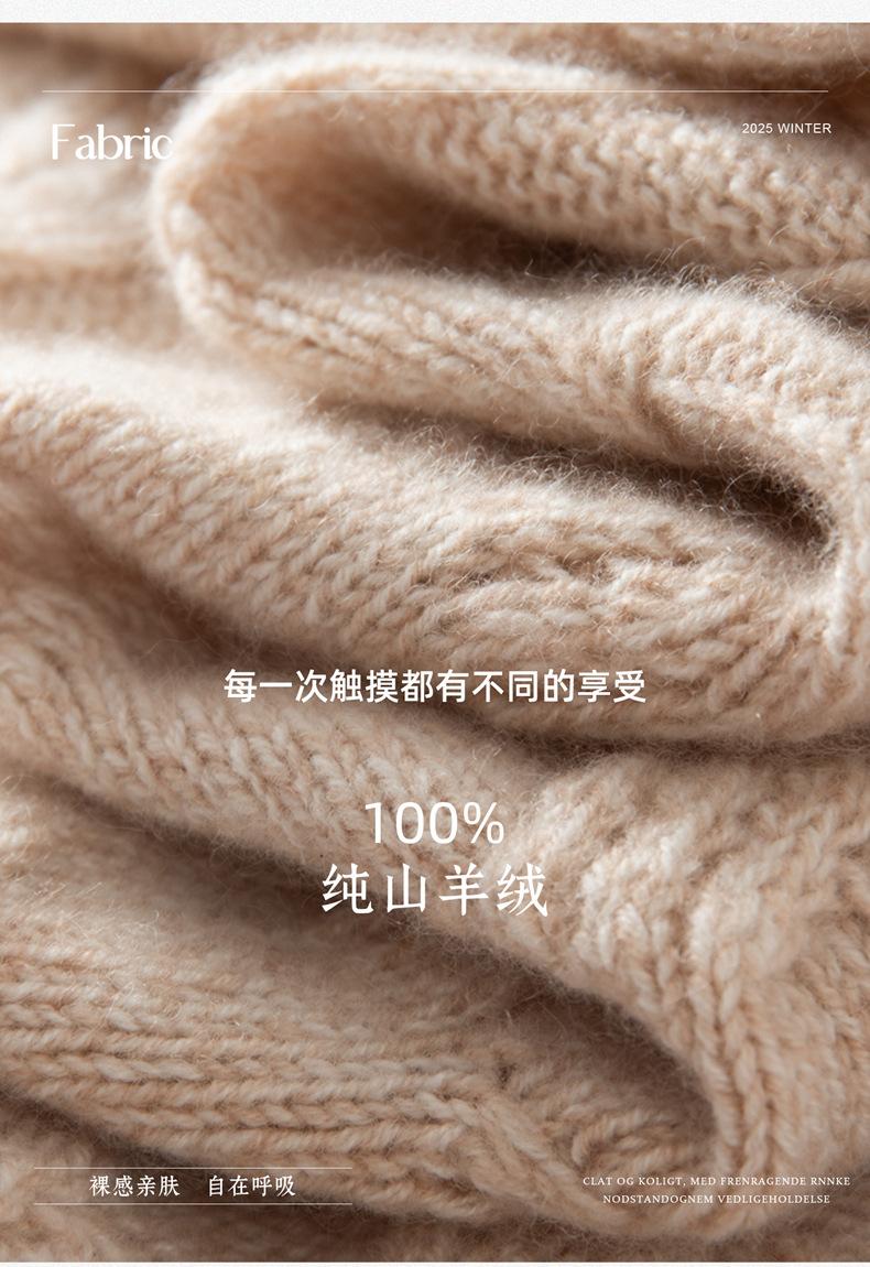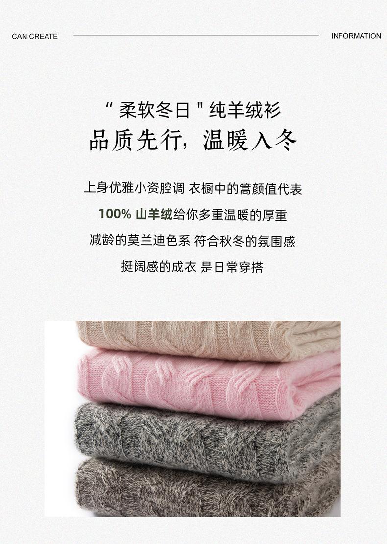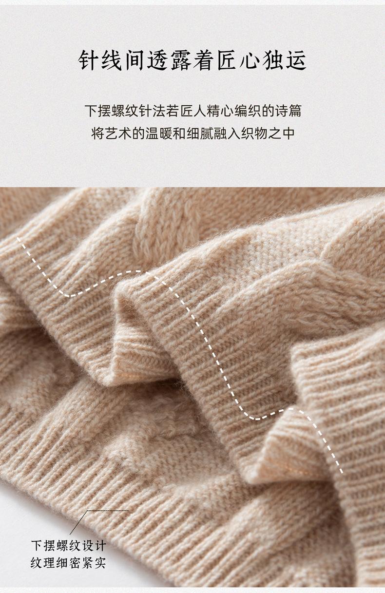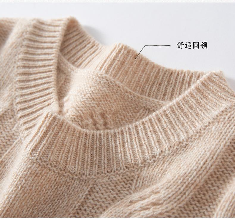 Suéter de Cachemira para Mujer 100% Cachemira Pura Casual Versátil Punto Trenzado Holgado Cuello Redondo Jersey Manga Larga