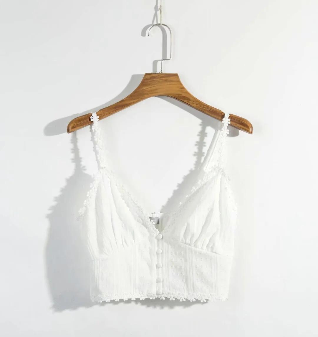Verano 2020 Nuevo Europeo y Americano Retro Francés Estilo Hong Kong Moda Versátil Ajustado Corto Encaje Camisola Top
