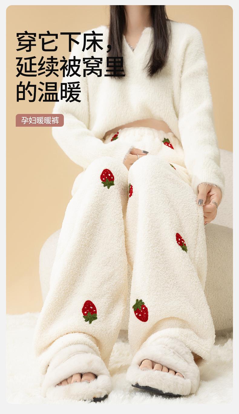 Ropa de Casa Casual para Mujeres Embarazadas, Pantalones Estilo Otoño e Invierno, Ropa Exterior, Leggings Gruesos con Forro Polar, Talla Grande, Pantalones Cálidos de Lana de Cordero para Mujeres Embarazadas