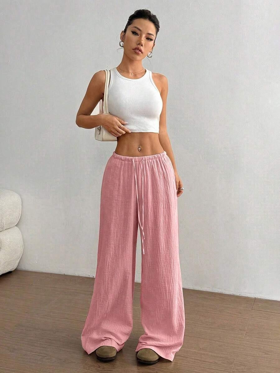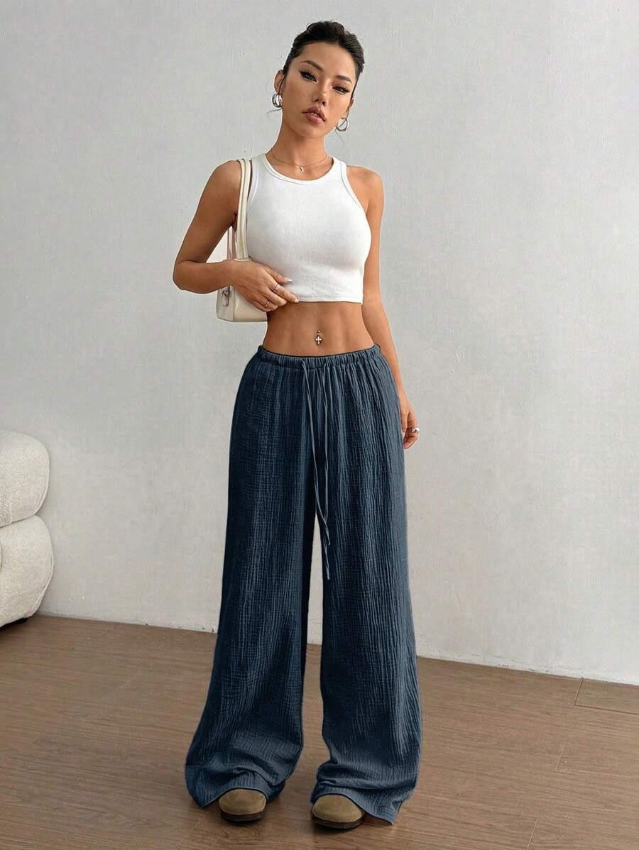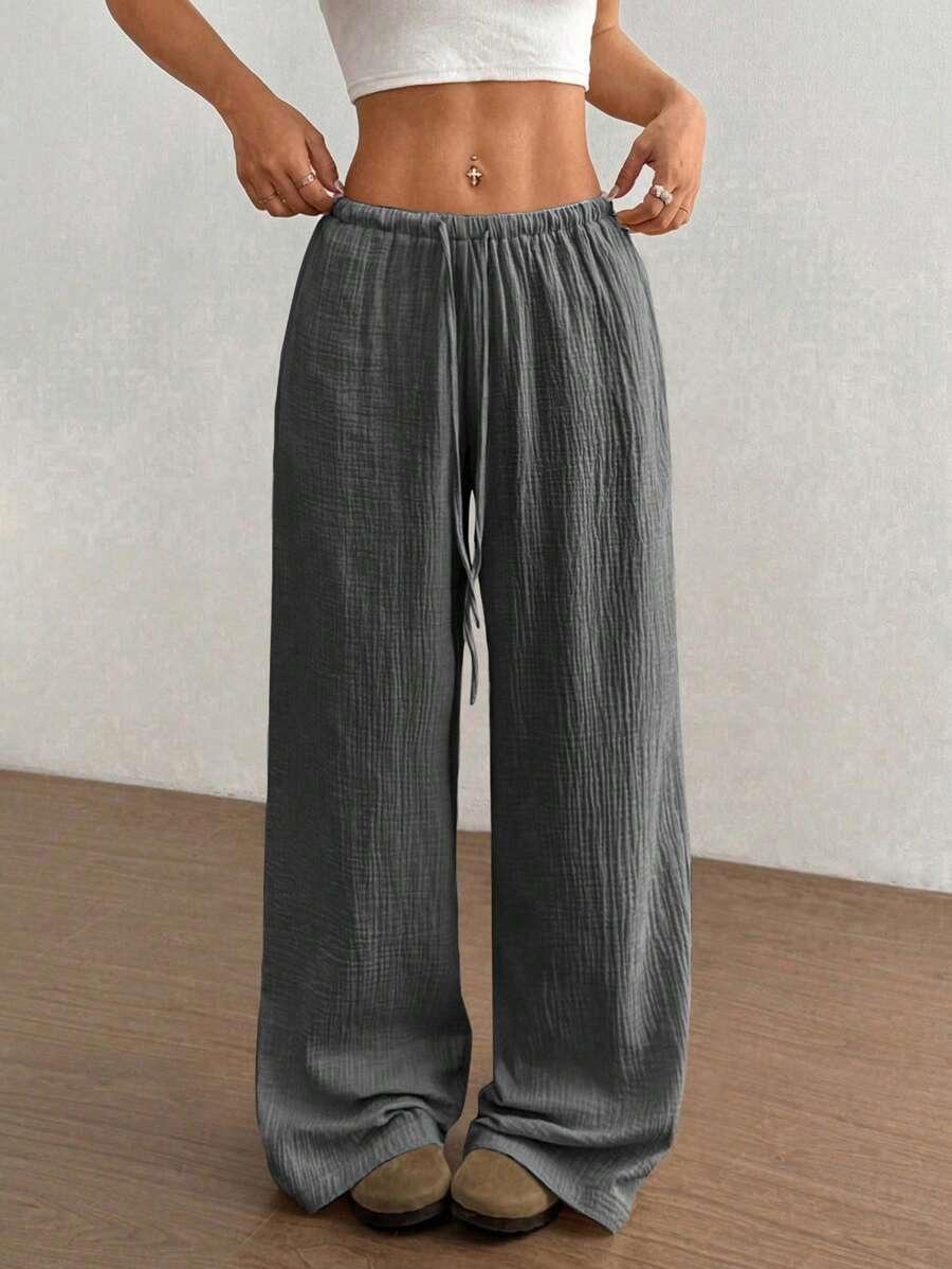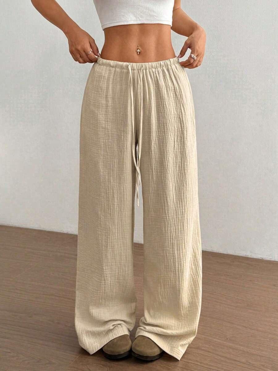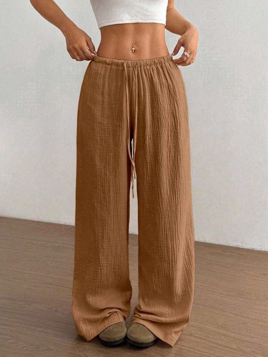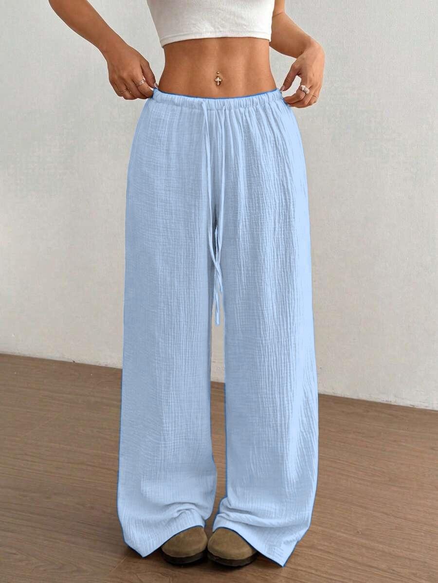 Amazon transfronterizo europeo y americano nuevo primavera y verano casual holgado cómodo para el hogar para mujer cordón pierna ancha pierna recta pantalones largos para mujer