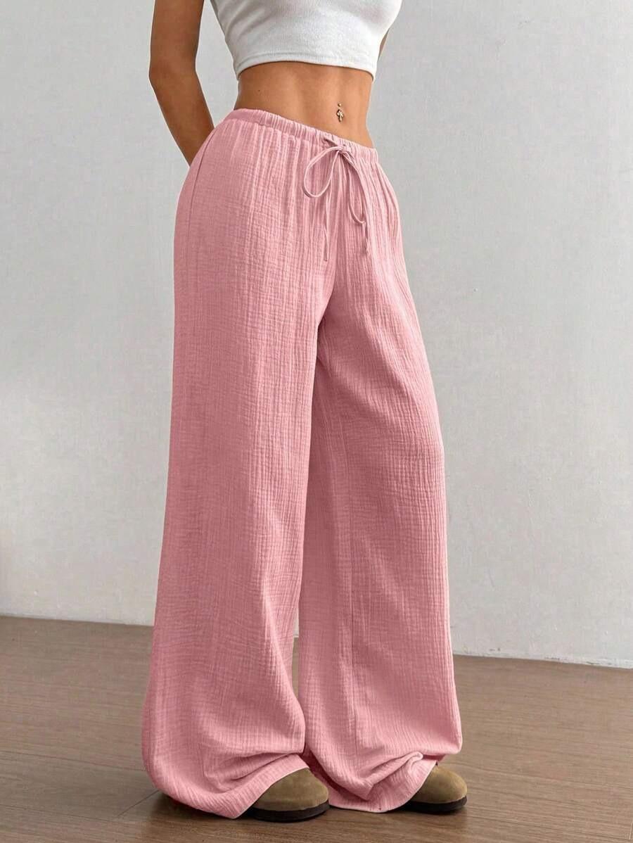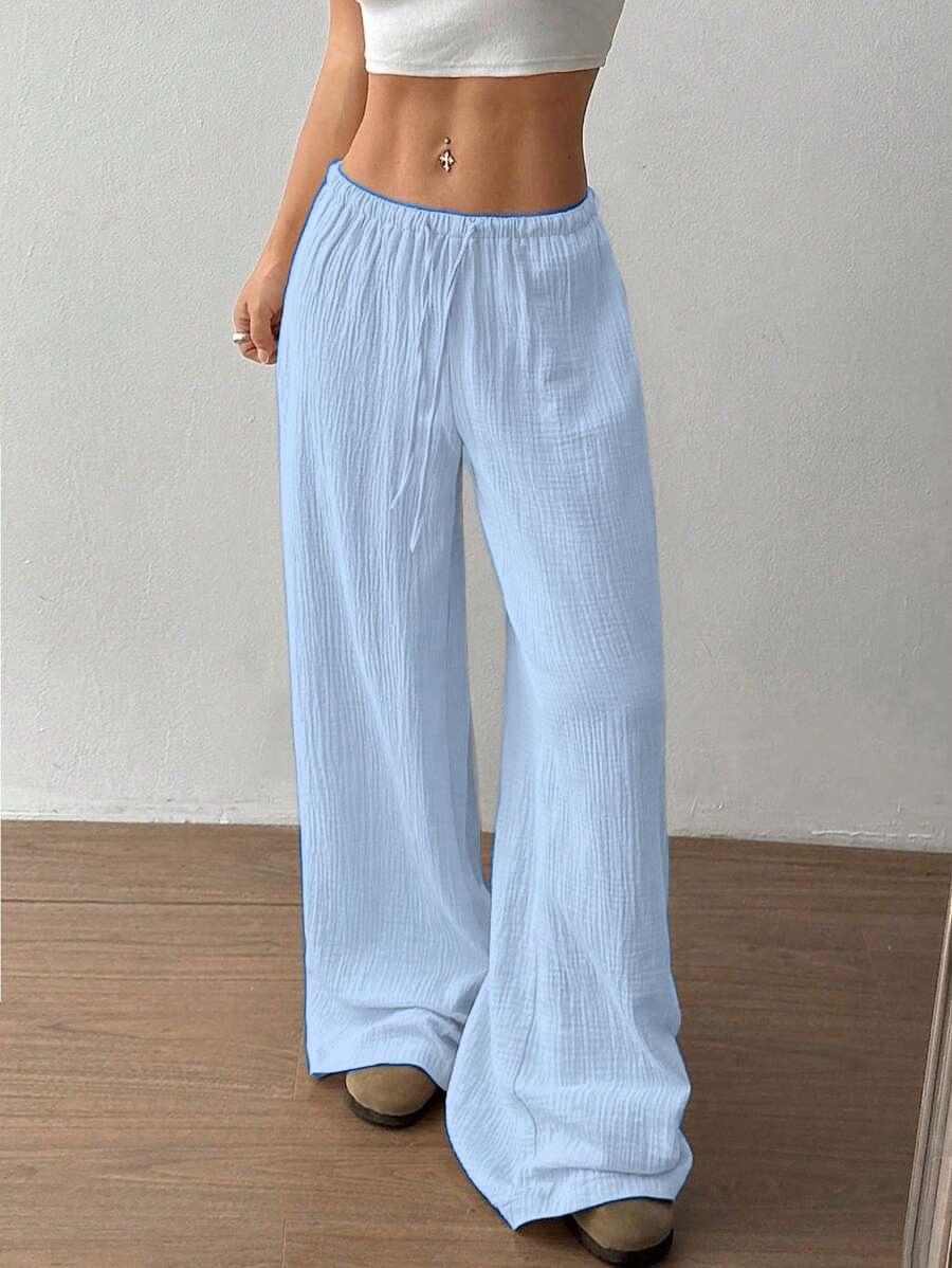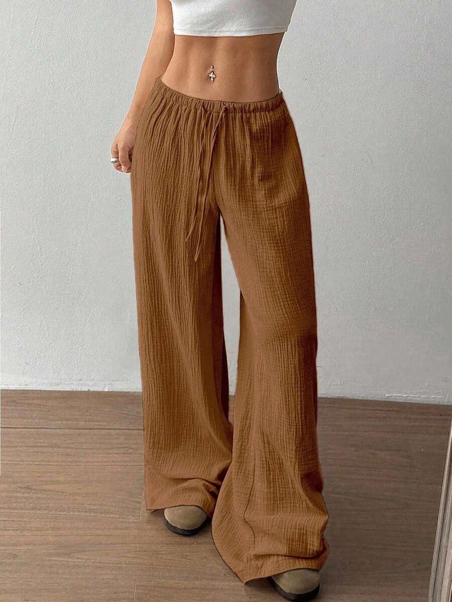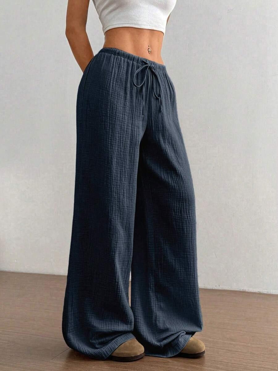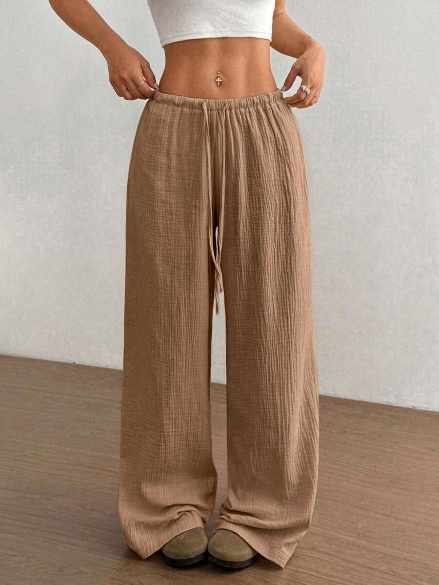 Amazon transfronterizo europeo y americano nuevo primavera y verano casual holgado cómodo para el hogar para mujer cordón pierna ancha pierna recta pantalones largos para mujer