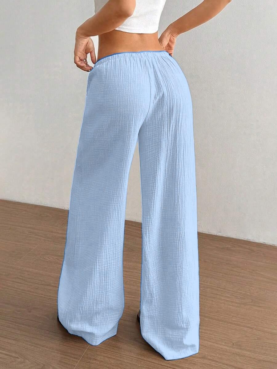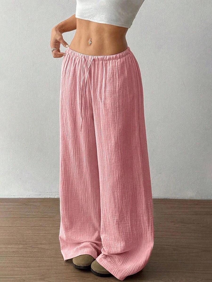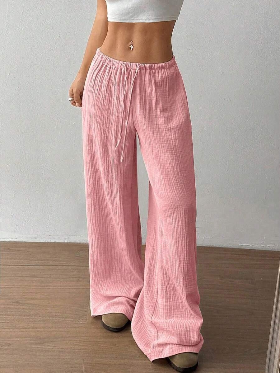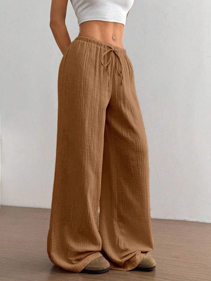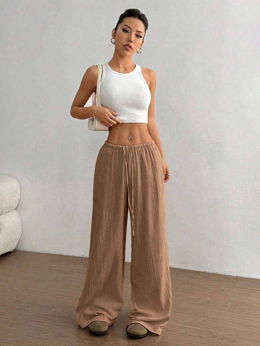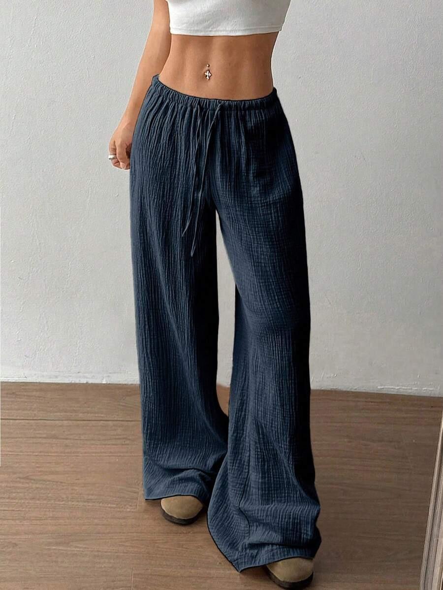 Amazon transfronterizo europeo y americano nuevo primavera y verano casual holgado cómodo para el hogar para mujer cordón pierna ancha pierna recta pantalones largos para mujer