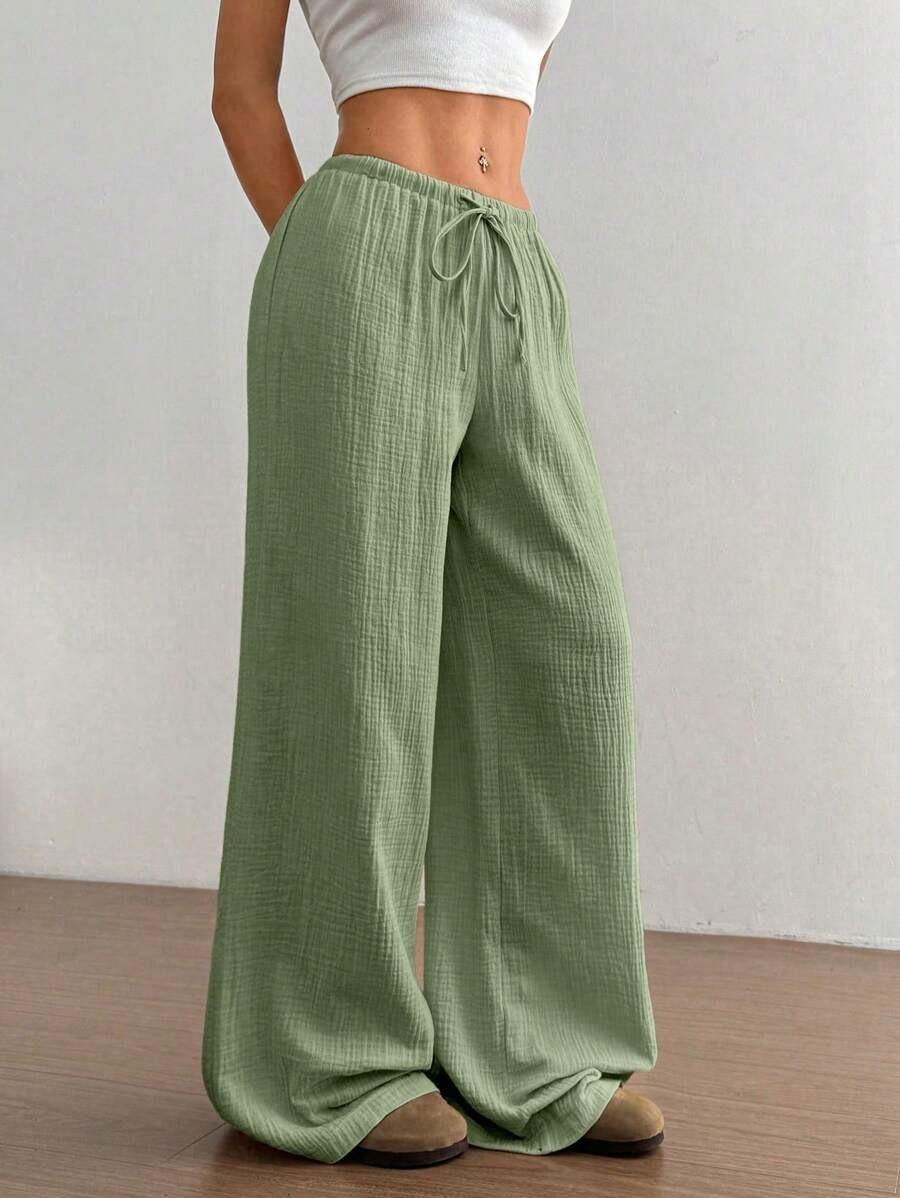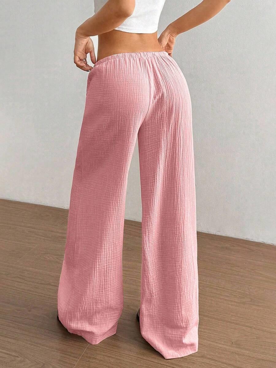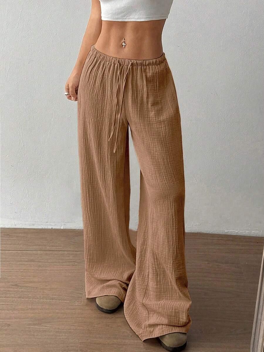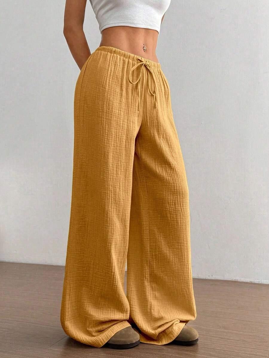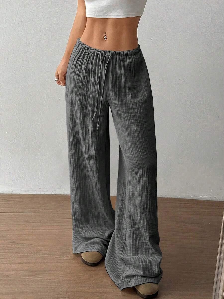 Amazon transfronterizo europeo y americano nuevo primavera y verano casual holgado cómodo para el hogar para mujer cordón pierna ancha pierna recta pantalones largos para mujer