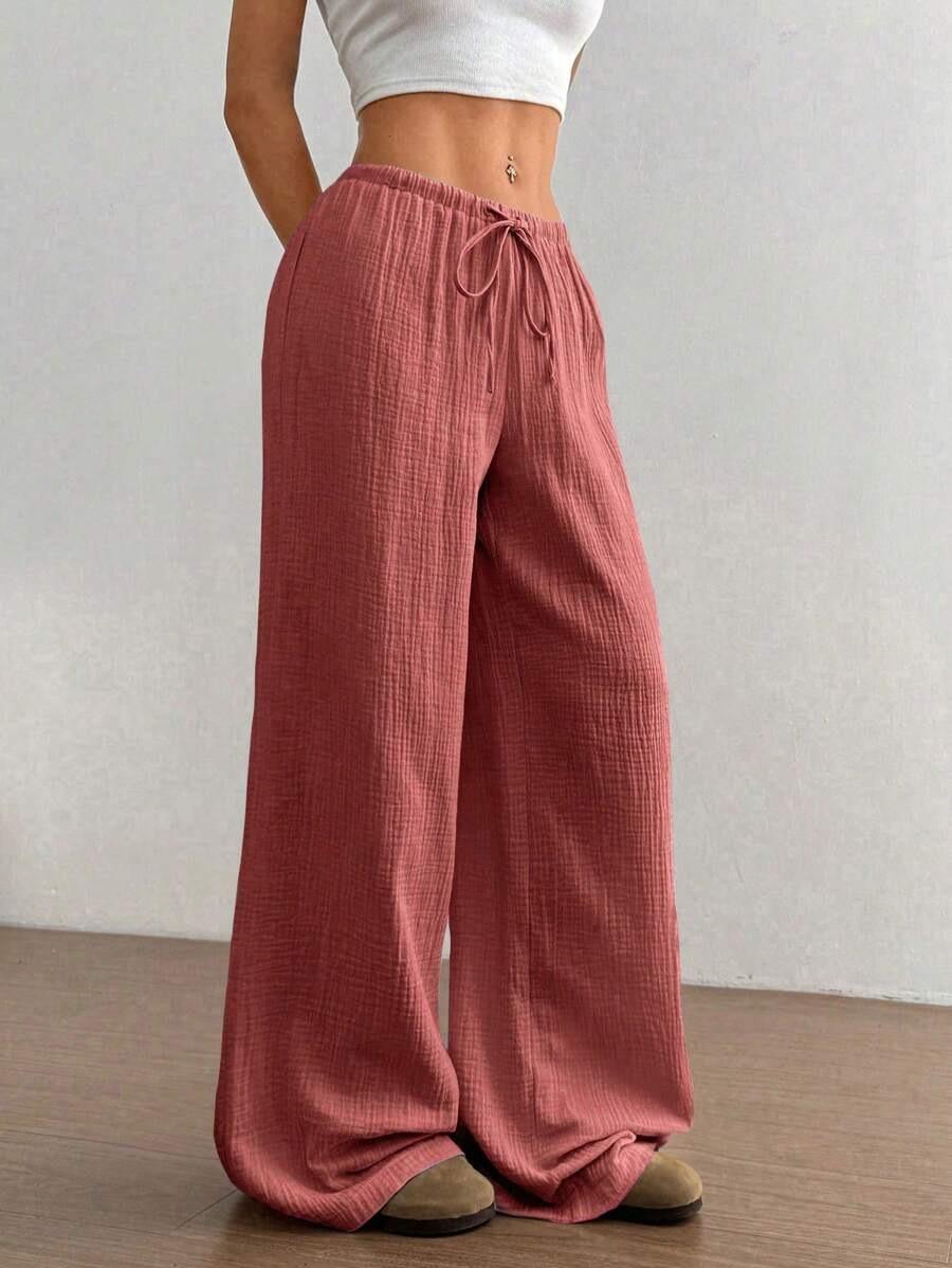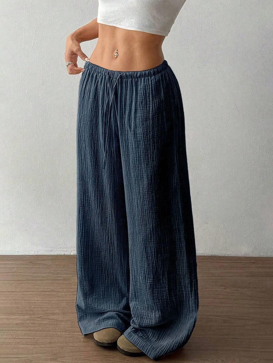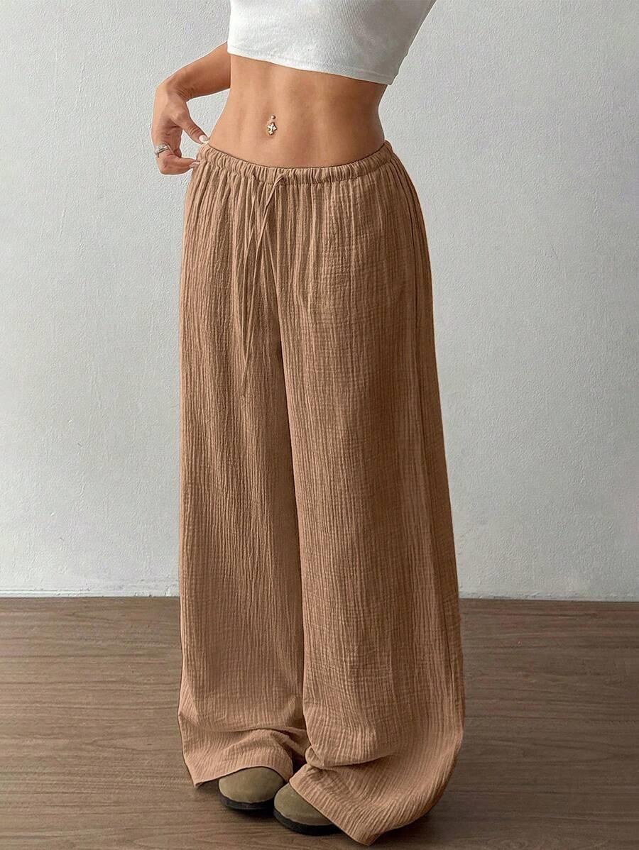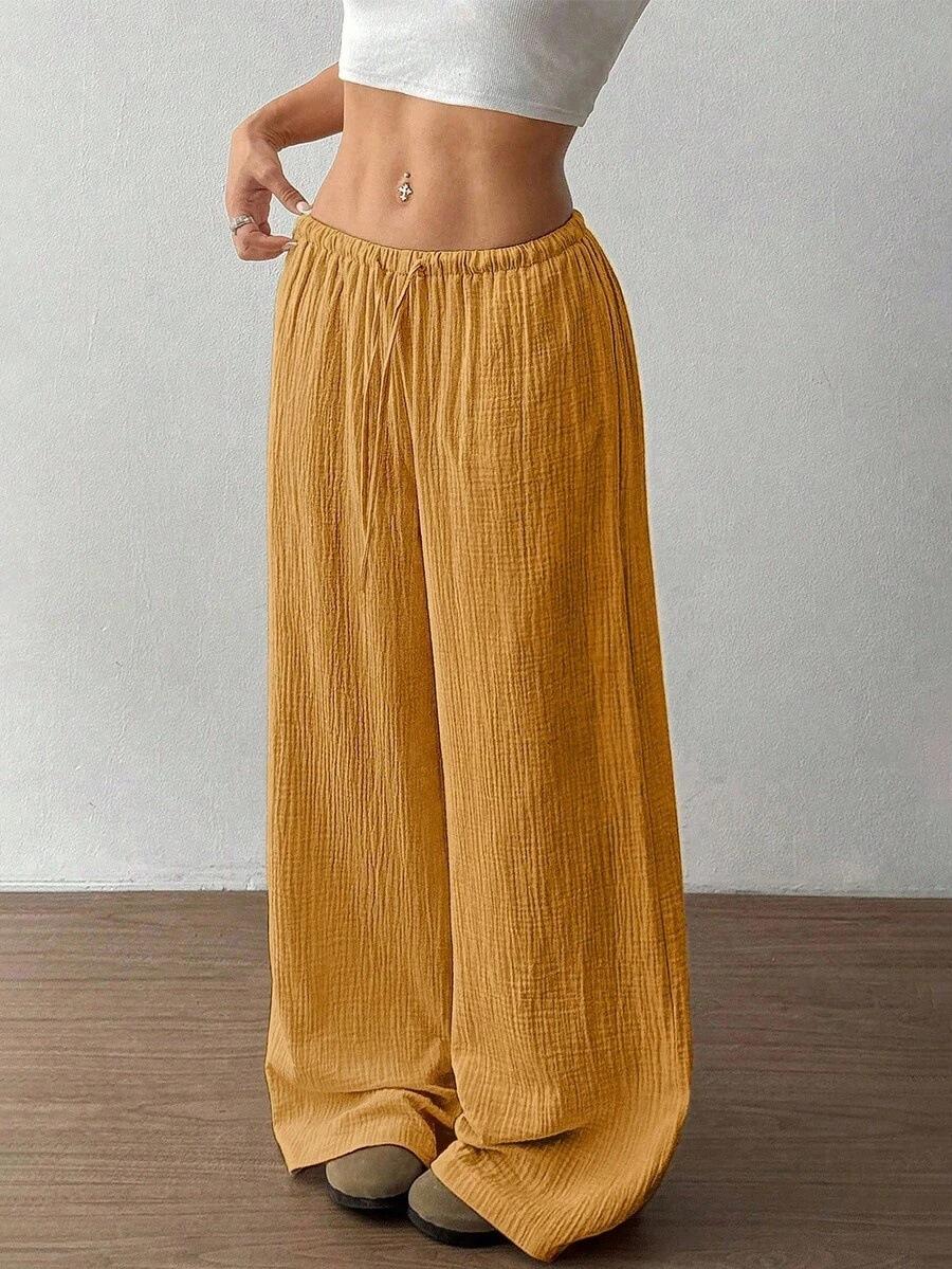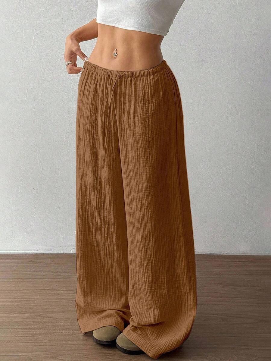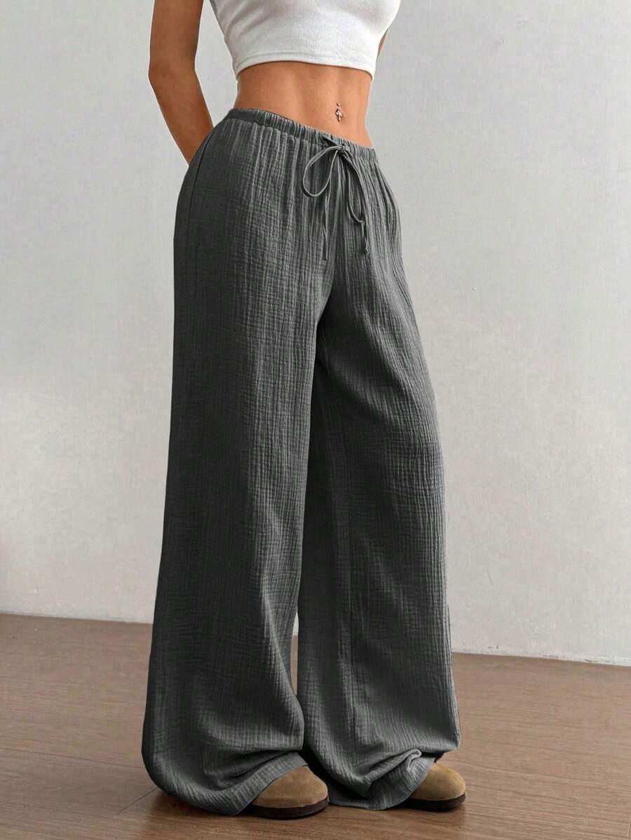 Amazon transfronterizo europeo y americano nuevo primavera y verano casual holgado cómodo para el hogar para mujer cordón pierna ancha pierna recta pantalones largos para mujer