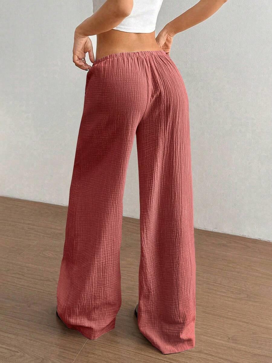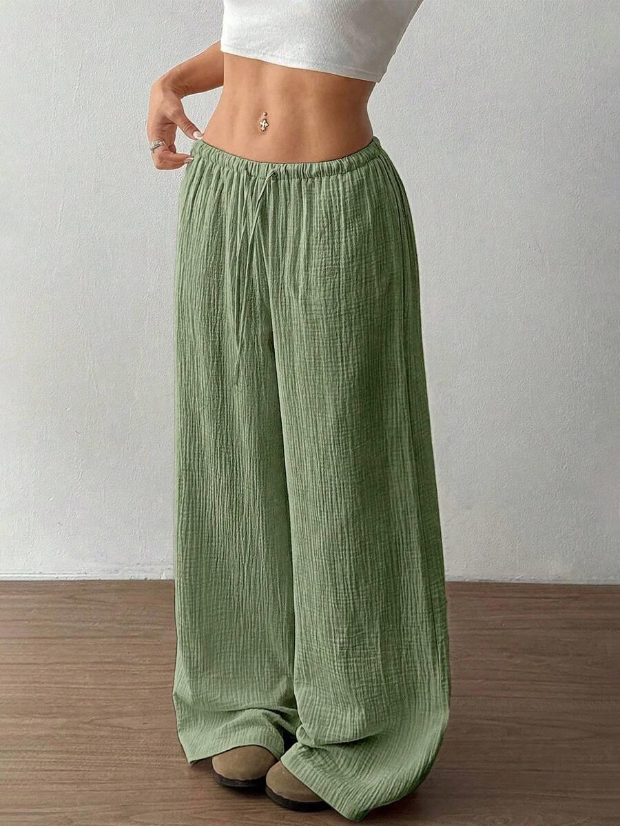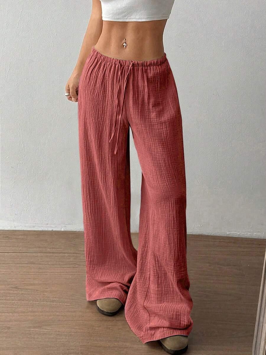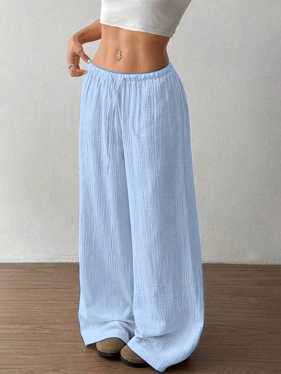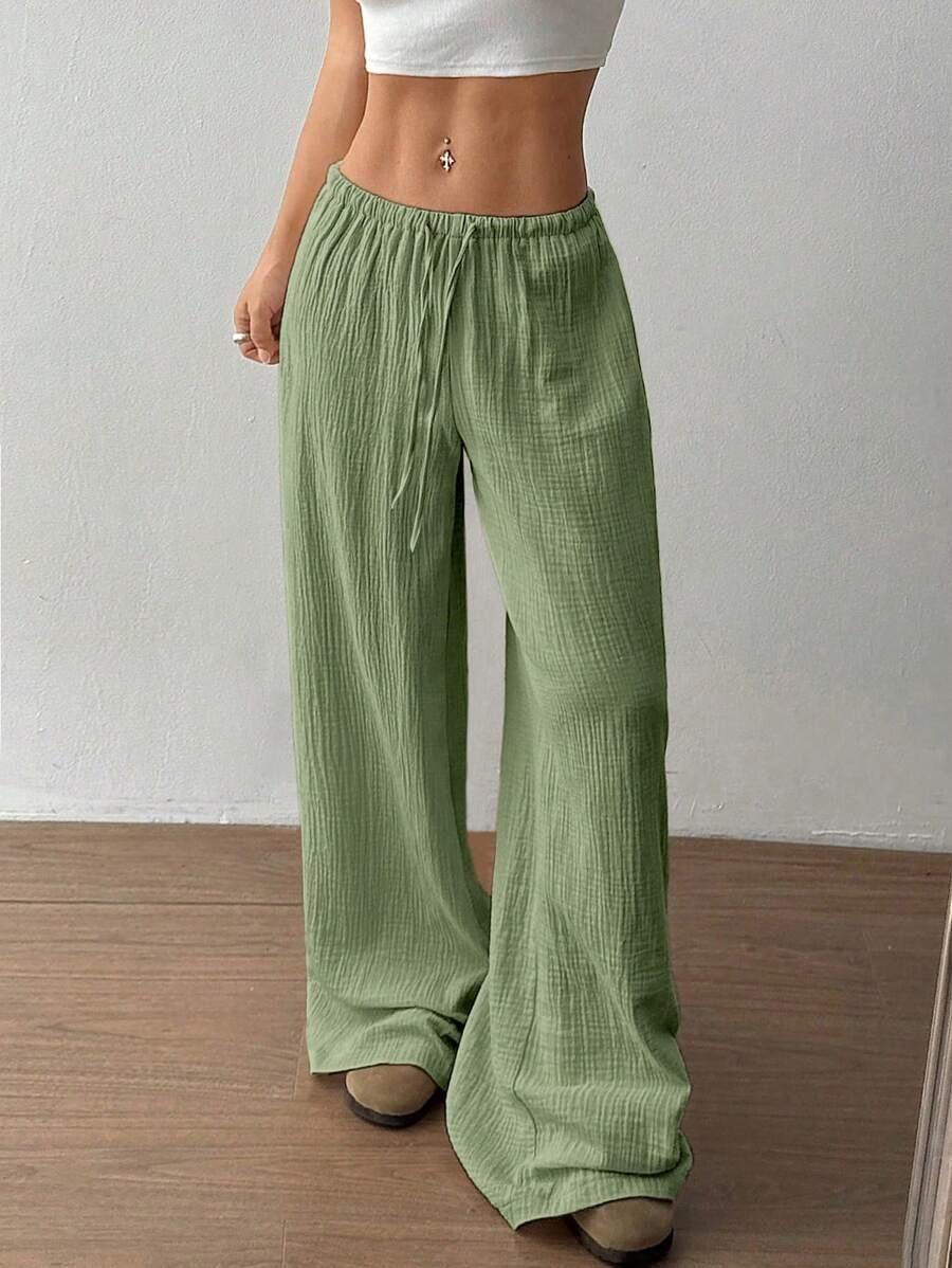 Amazon transfronterizo europeo y americano nuevo primavera y verano casual holgado cómodo para el hogar para mujer cordón pierna ancha pierna recta pantalones largos para mujer