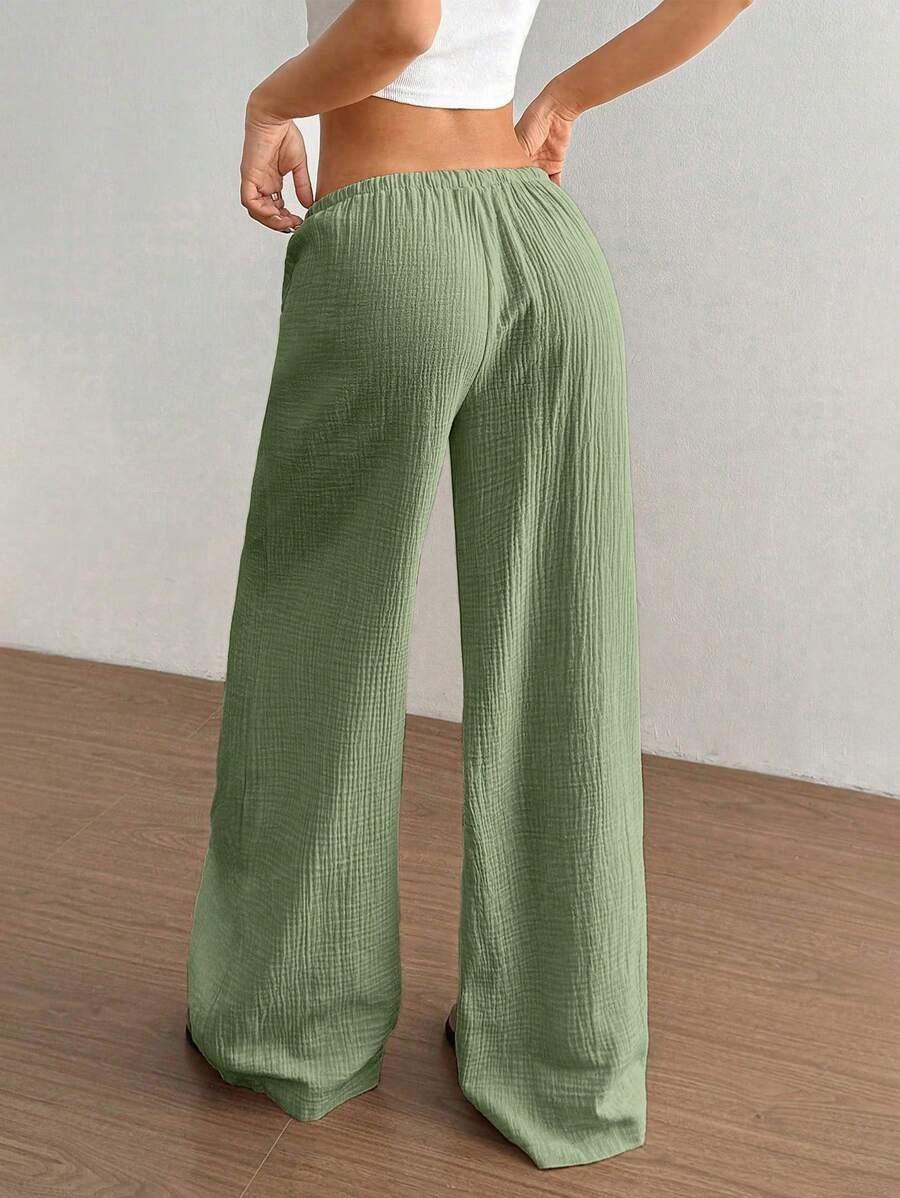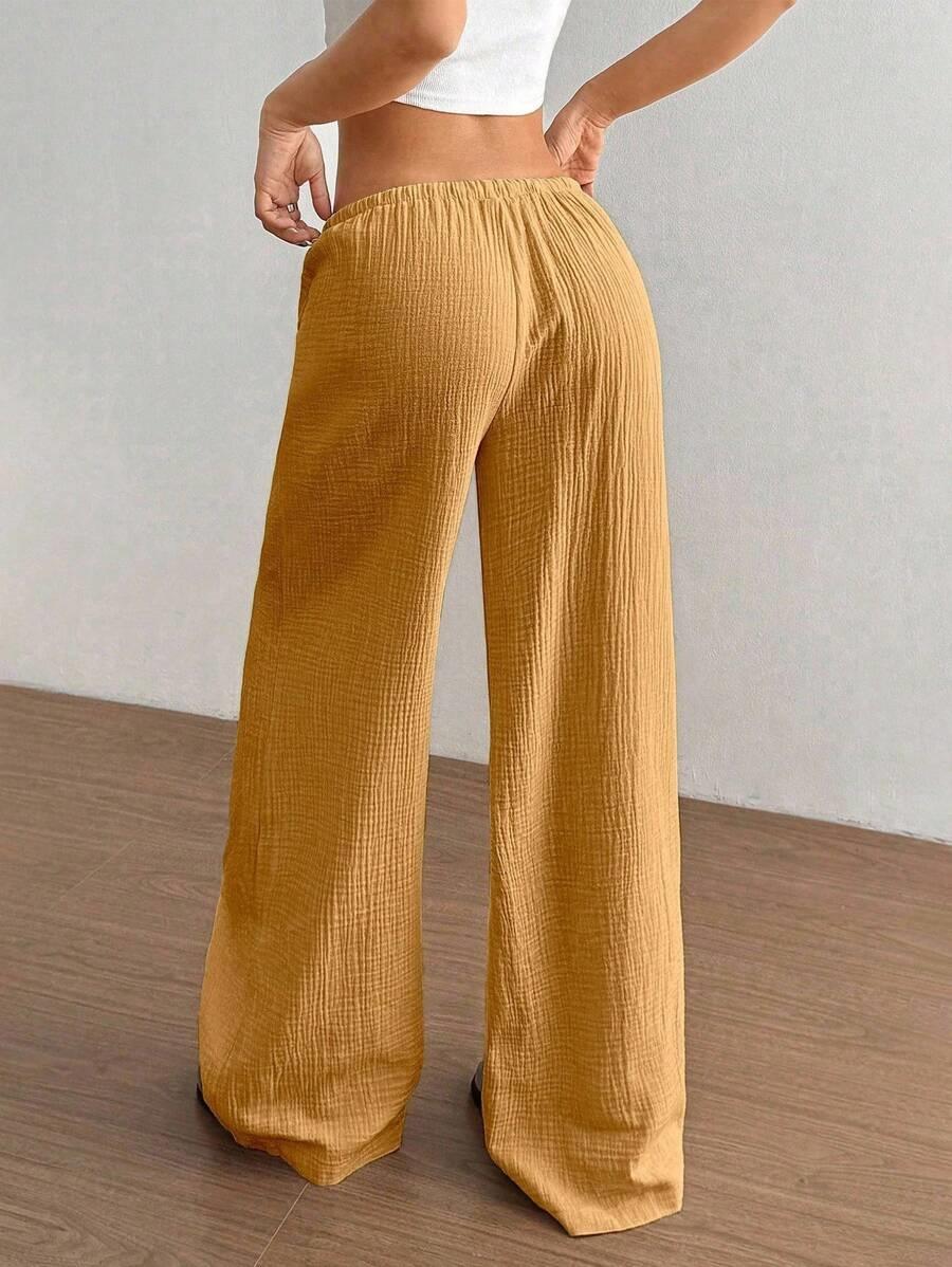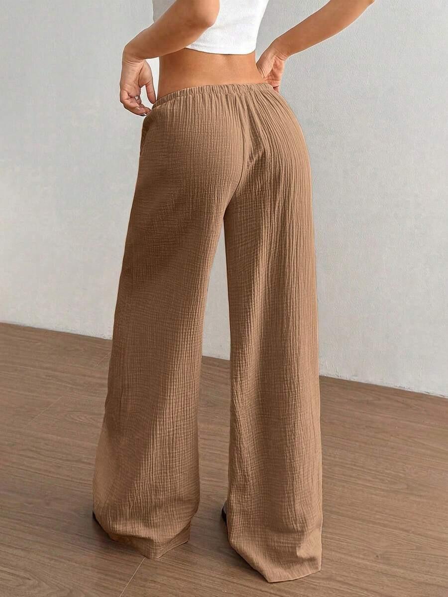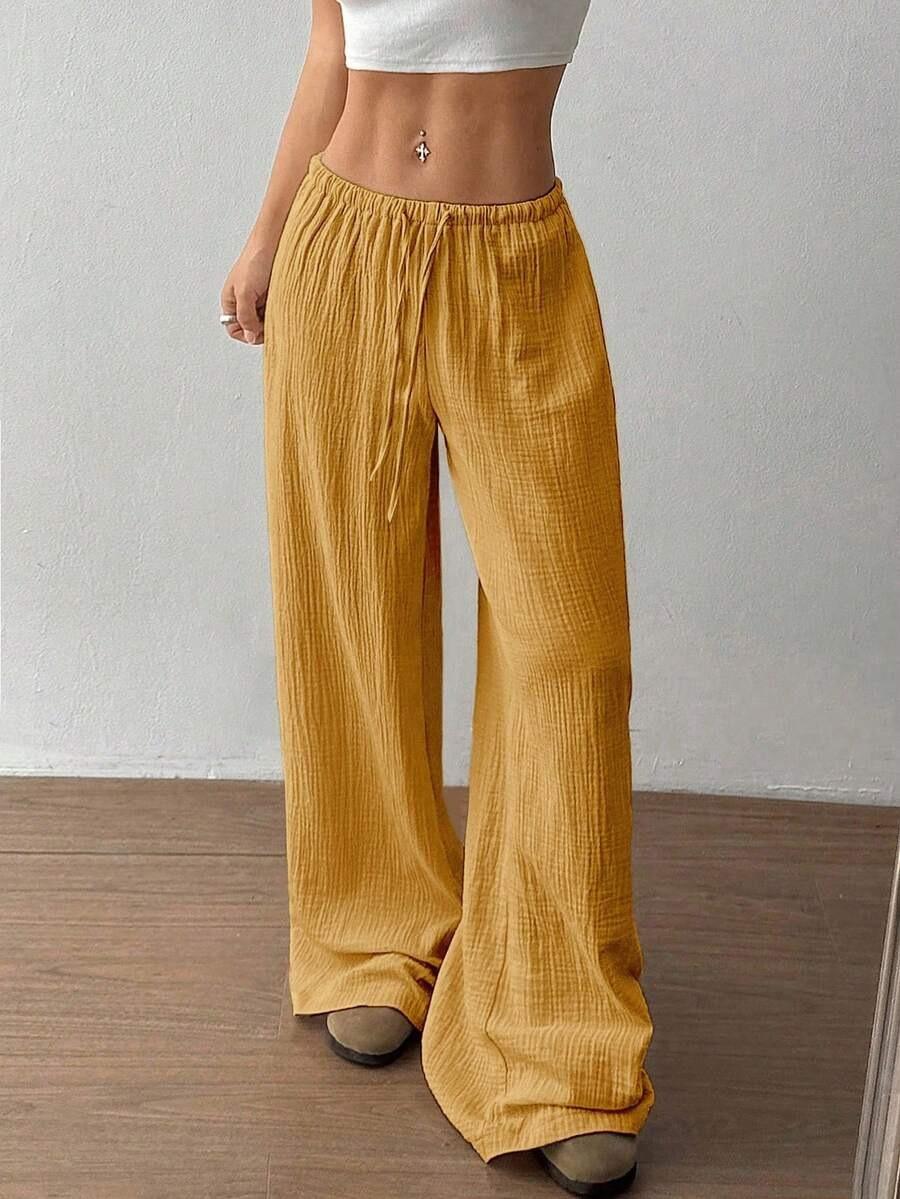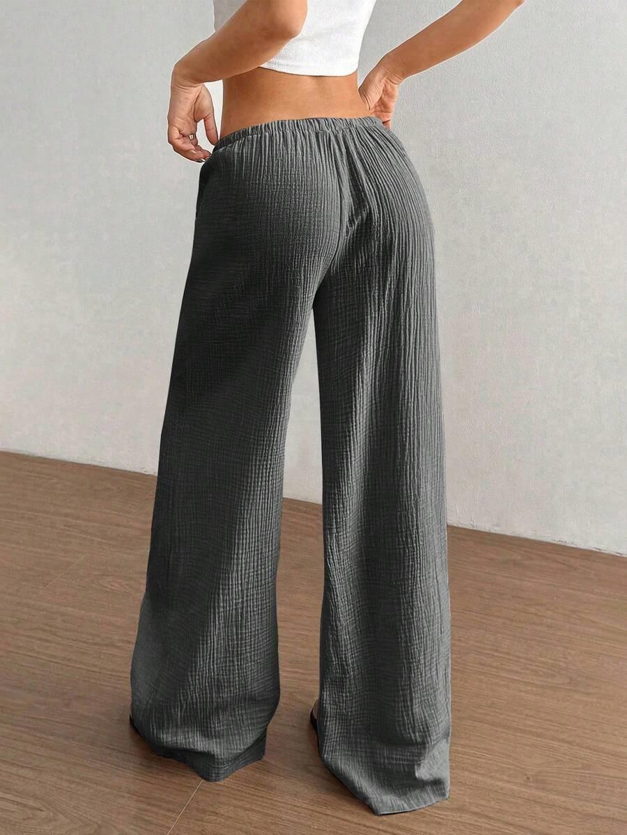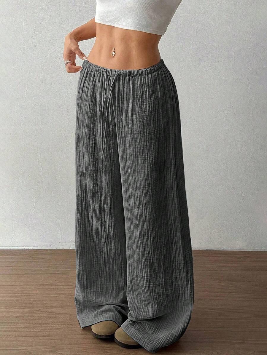 Amazon transfronterizo europeo y americano nuevo primavera y verano casual holgado cómodo para el hogar para mujer cordón pierna ancha pierna recta pantalones largos para mujer
