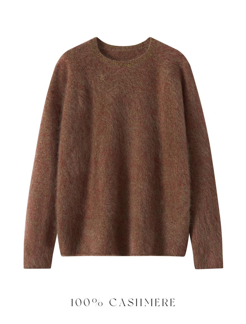Suéter de cachemira para mujer 100% cachemira pura nuevo versátil simple moda color sólido cuello redondo jersey tejido cálido