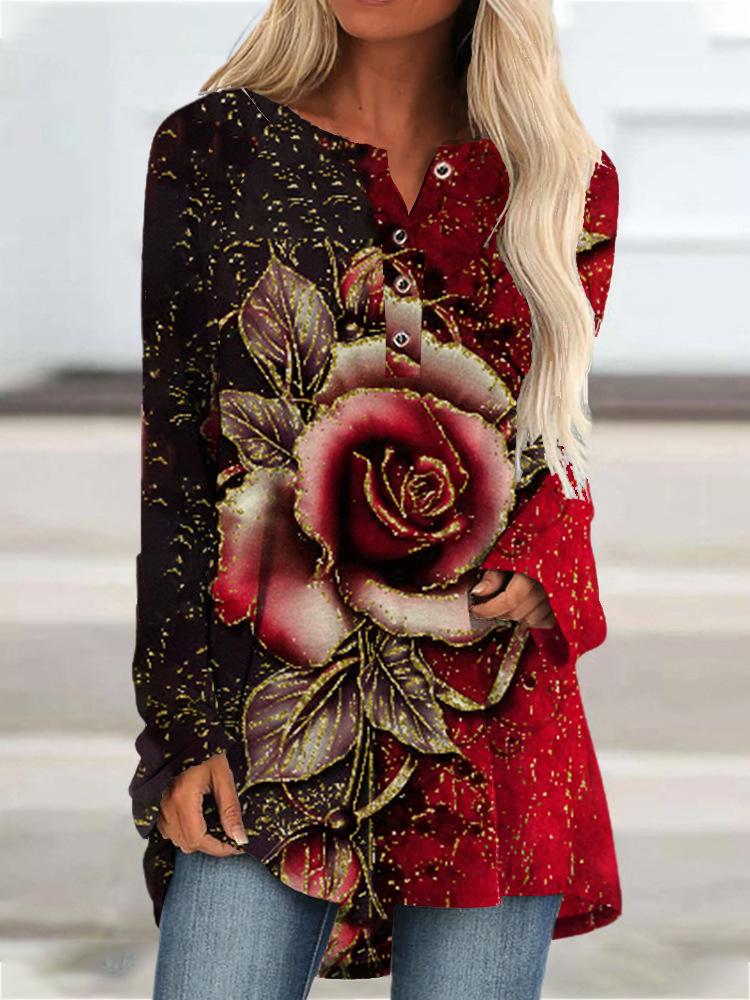 Amazon AliExpress primavera nuevo comercio exterior transfronterizo Moda Mujer manga larga pequeño cuello en V estampado de flores camiseta 9192