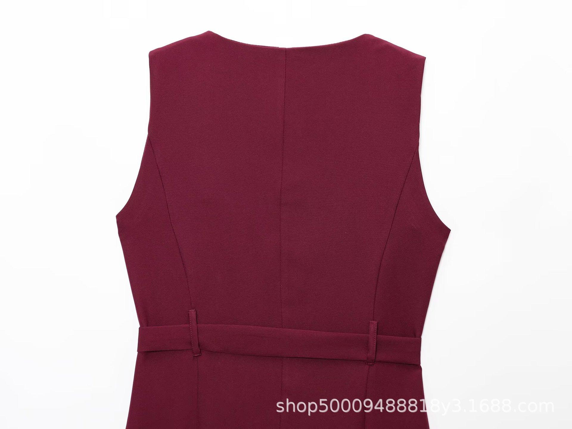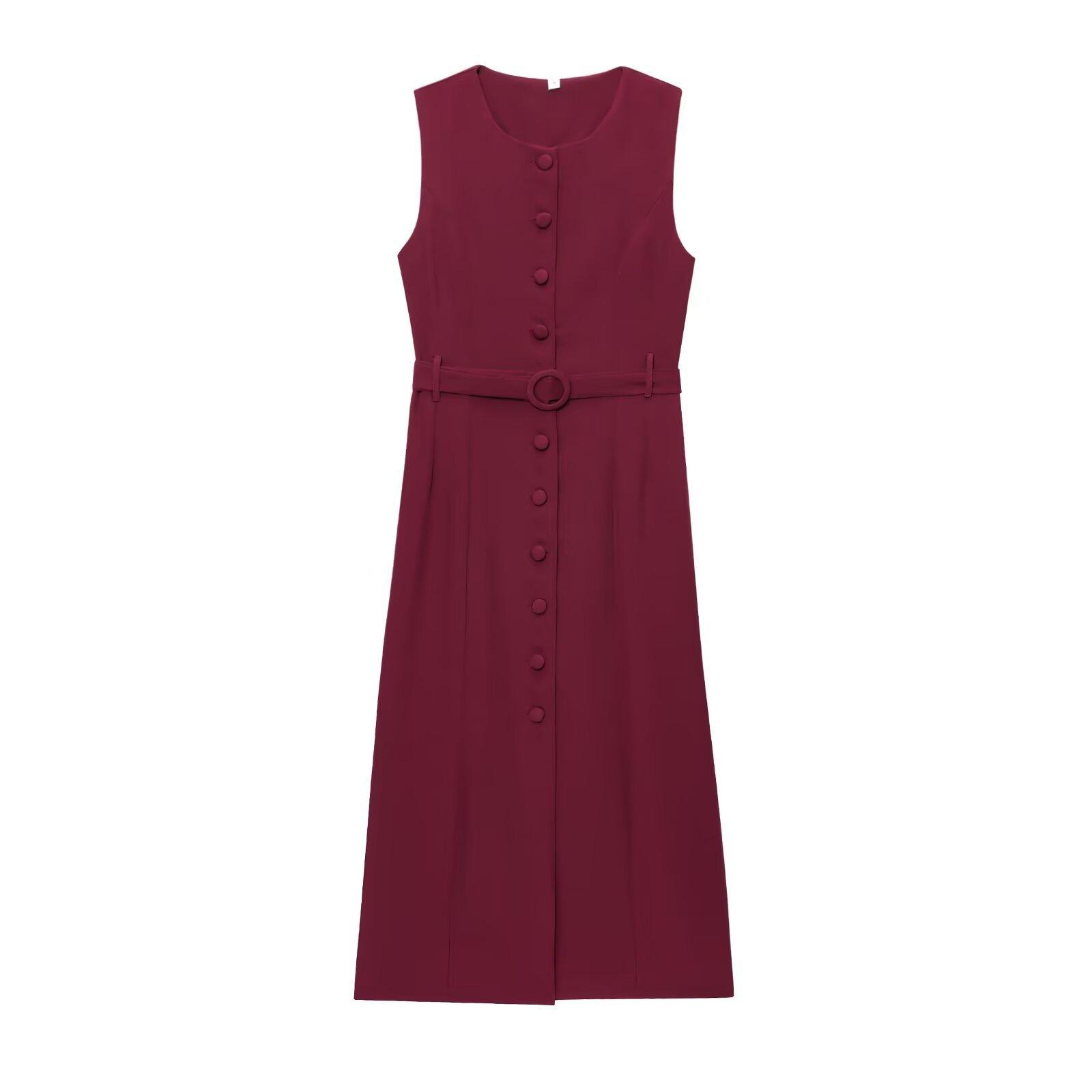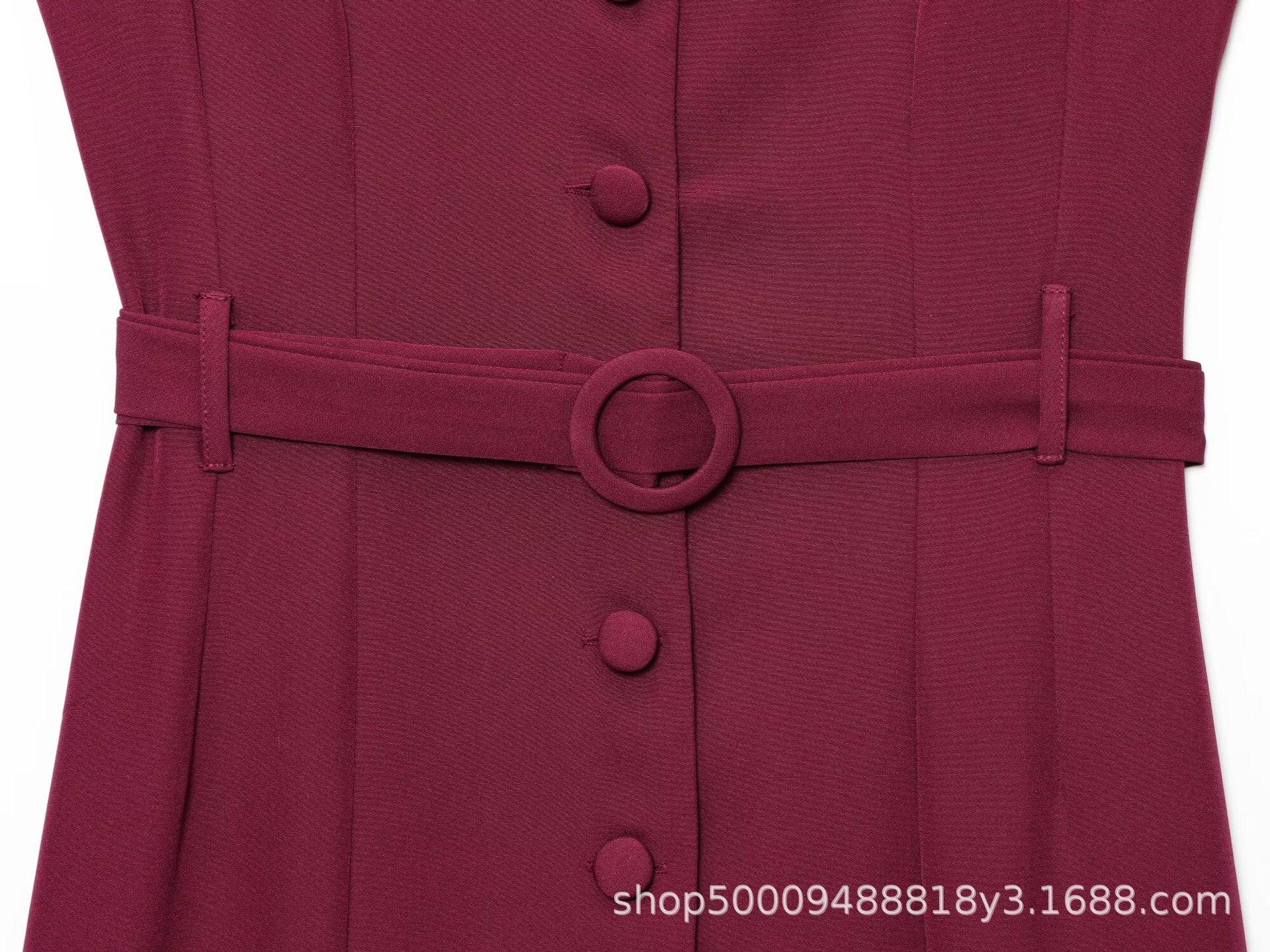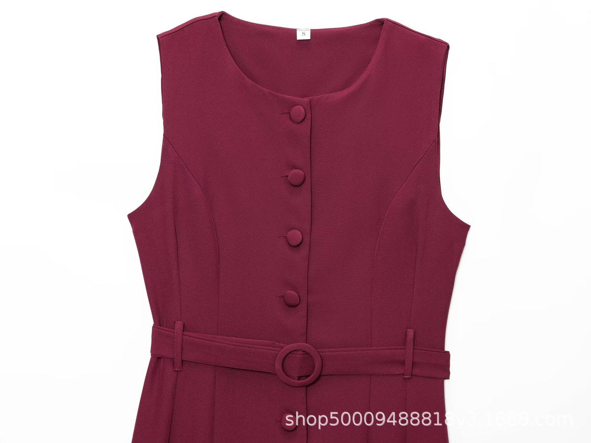 Amazon Comercio Exterior Transfronterizo Ropa de Mujer Estilo Europeo y Americano Vestido Casual sin Mangas Ajustado de Un Solo Botón con Cinturón