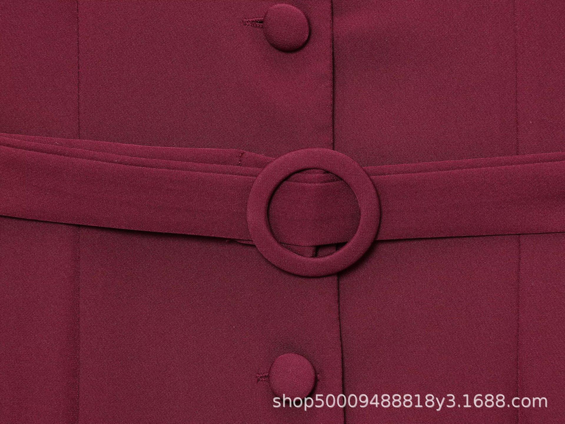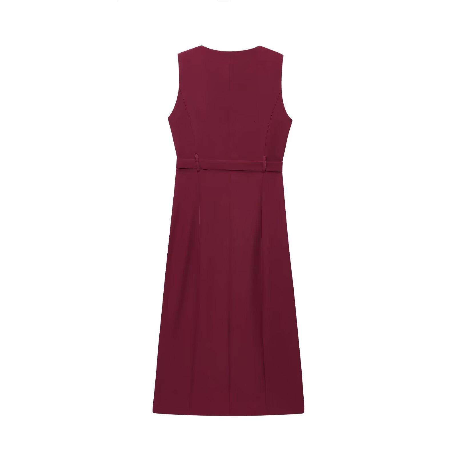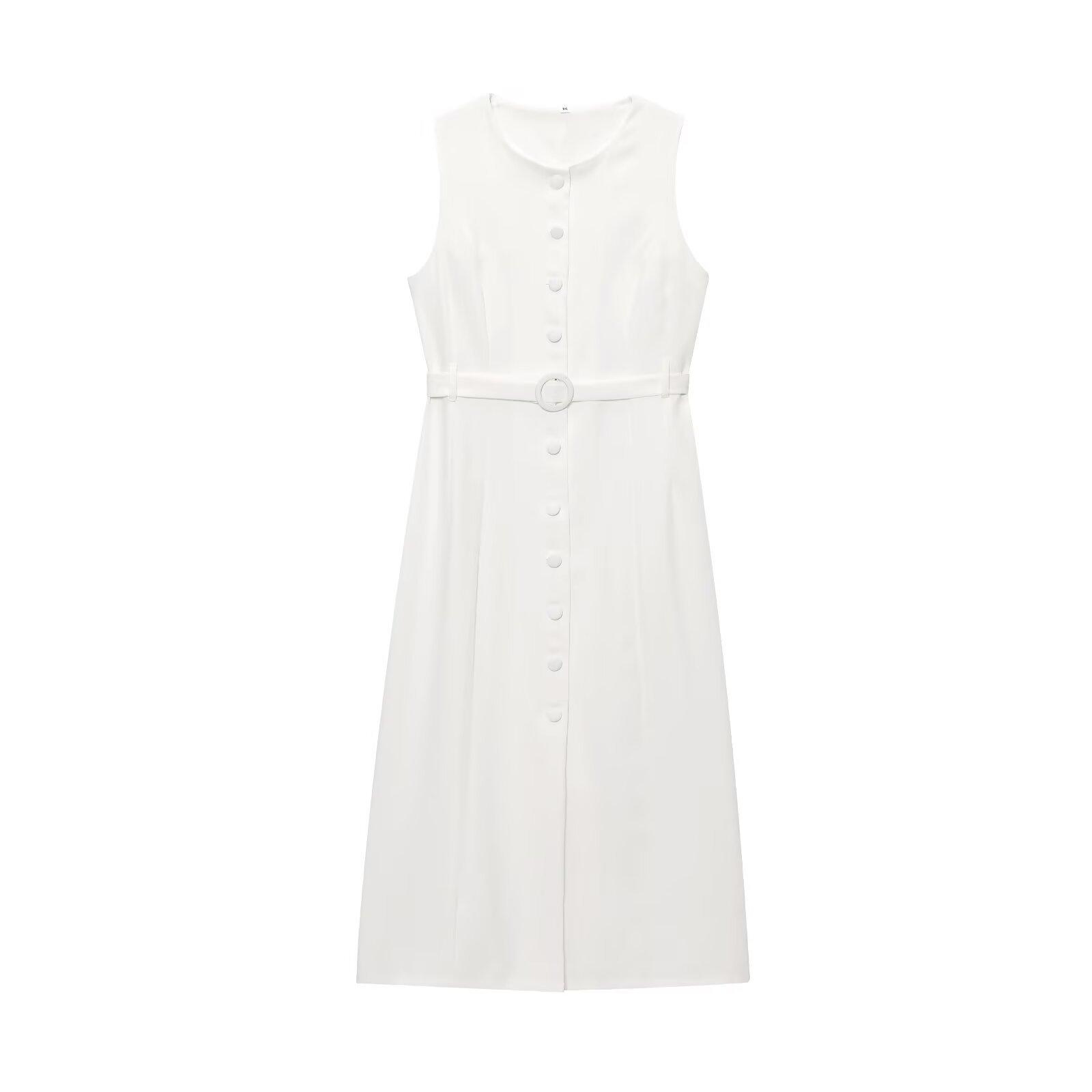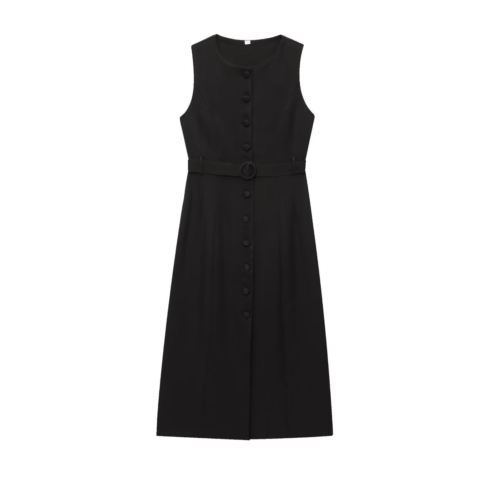 Amazon Comercio Exterior Transfronterizo Ropa de Mujer Estilo Europeo y Americano Vestido Casual sin Mangas Ajustado de Un Solo Botón con Cinturón
