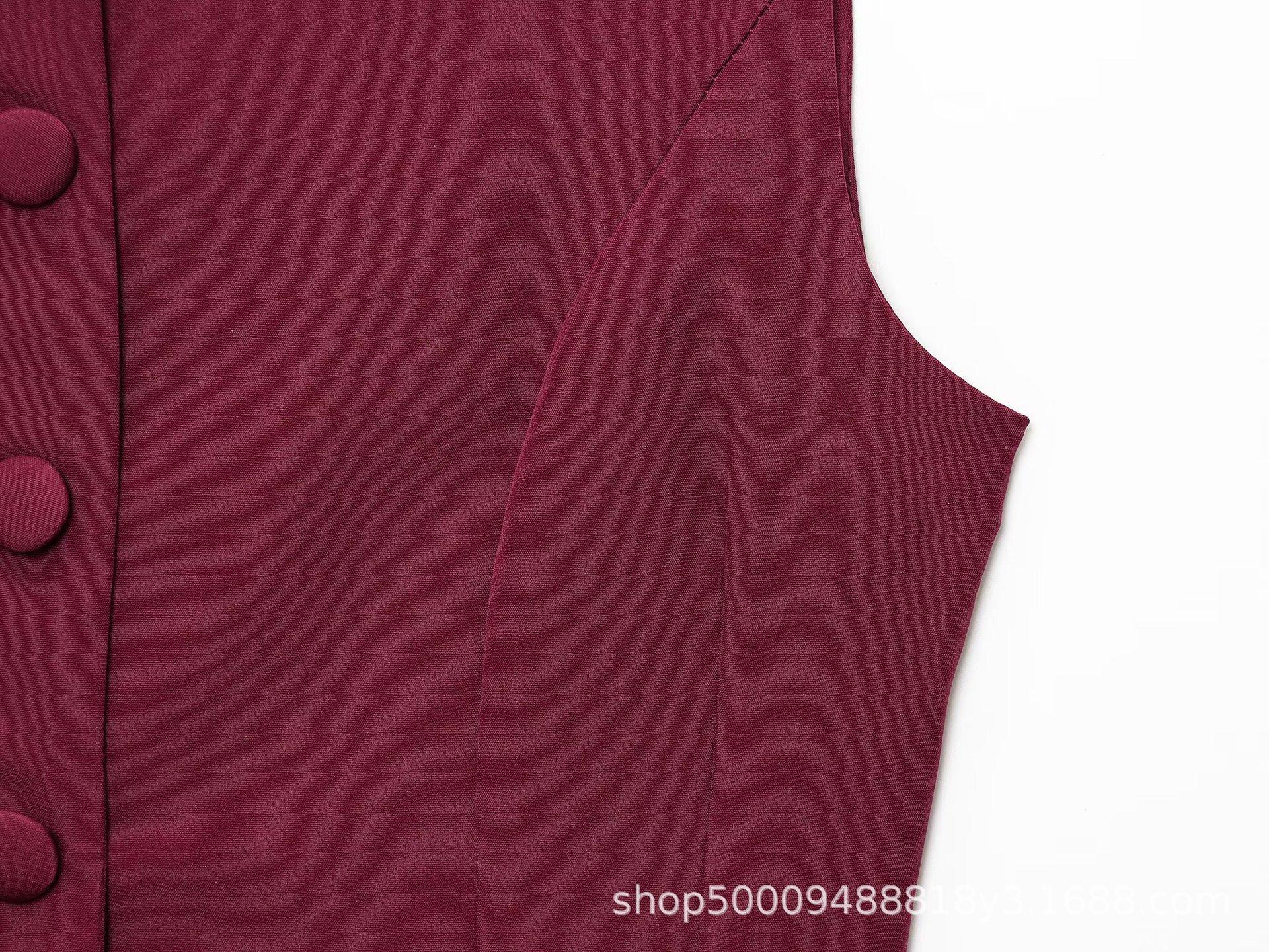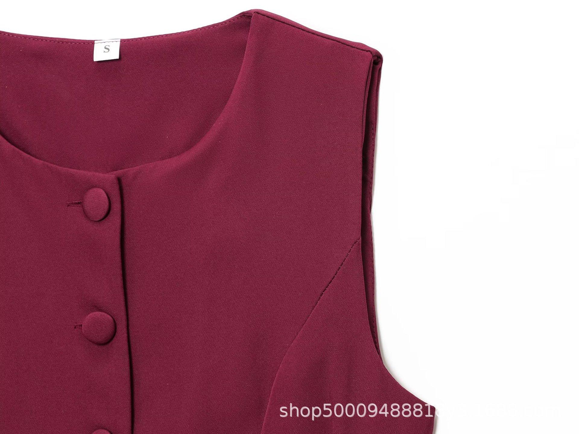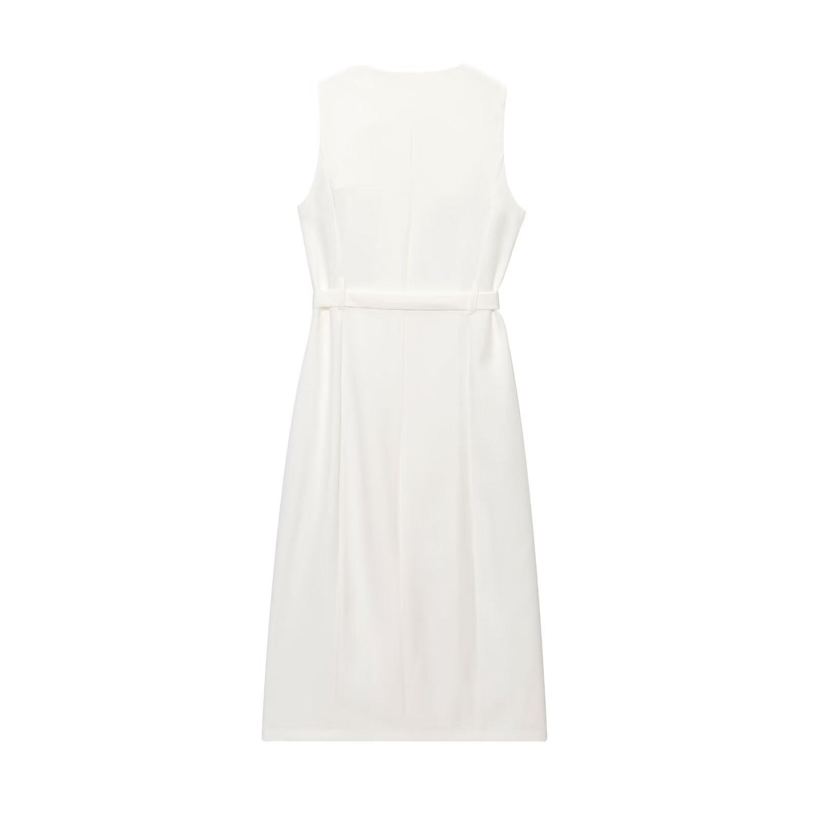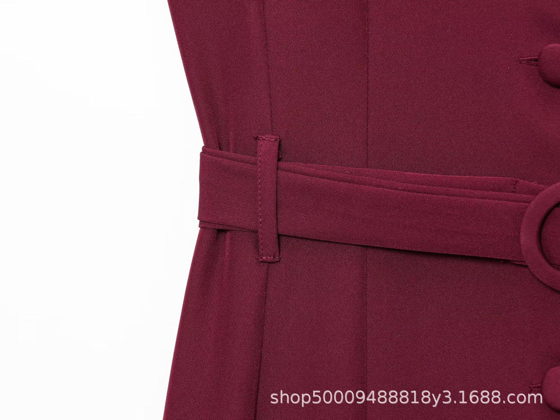 Amazon Comercio Exterior Transfronterizo Ropa de Mujer Estilo Europeo y Americano Vestido Casual sin Mangas Ajustado de Un Solo Botón con Cinturón