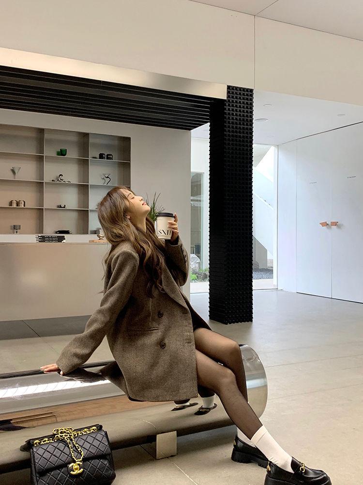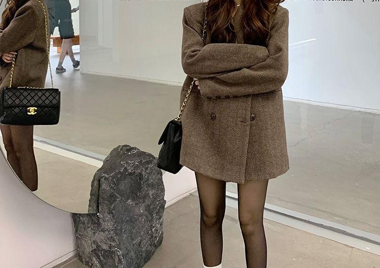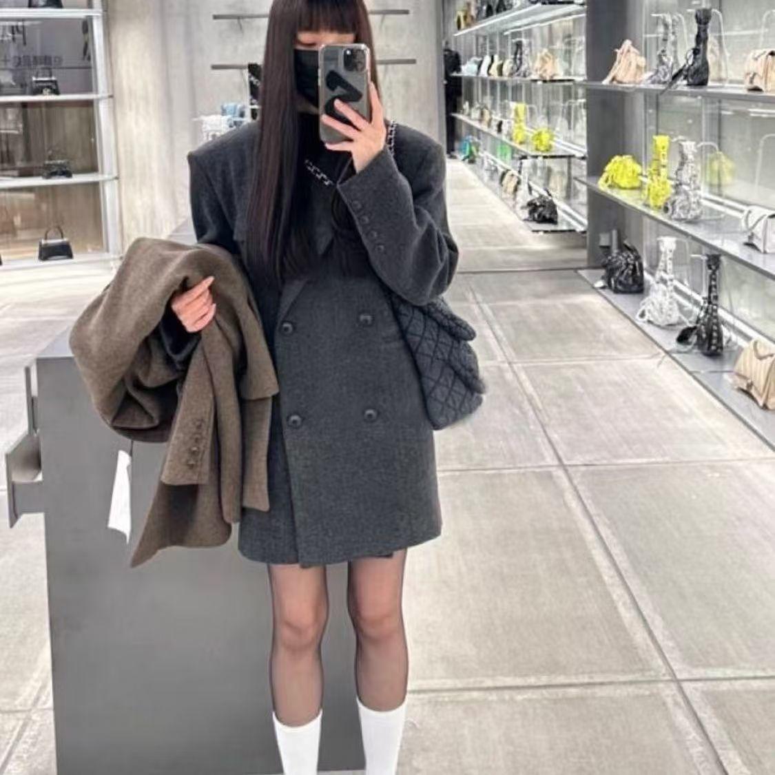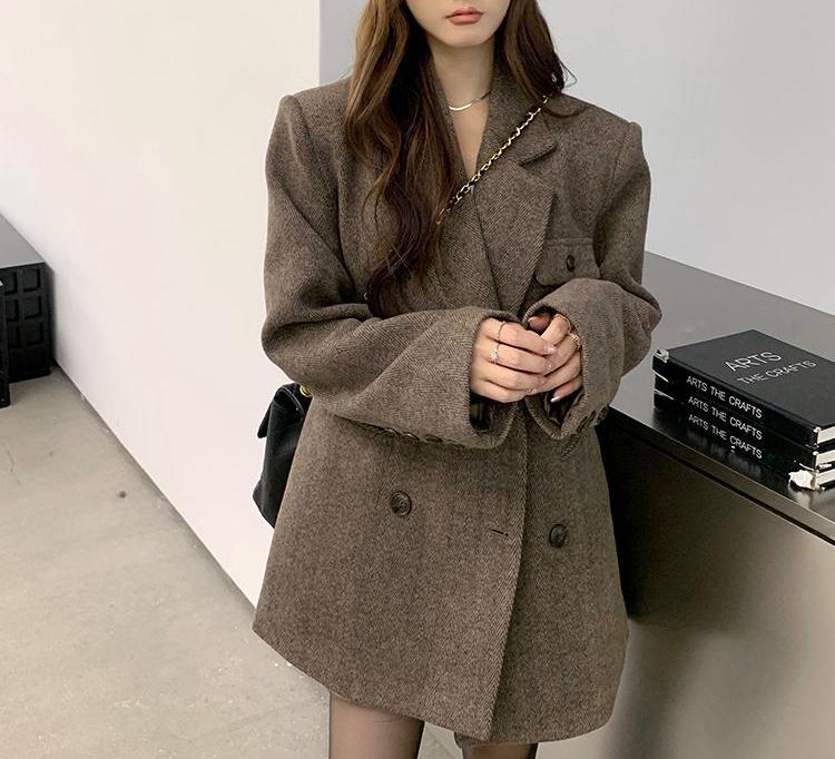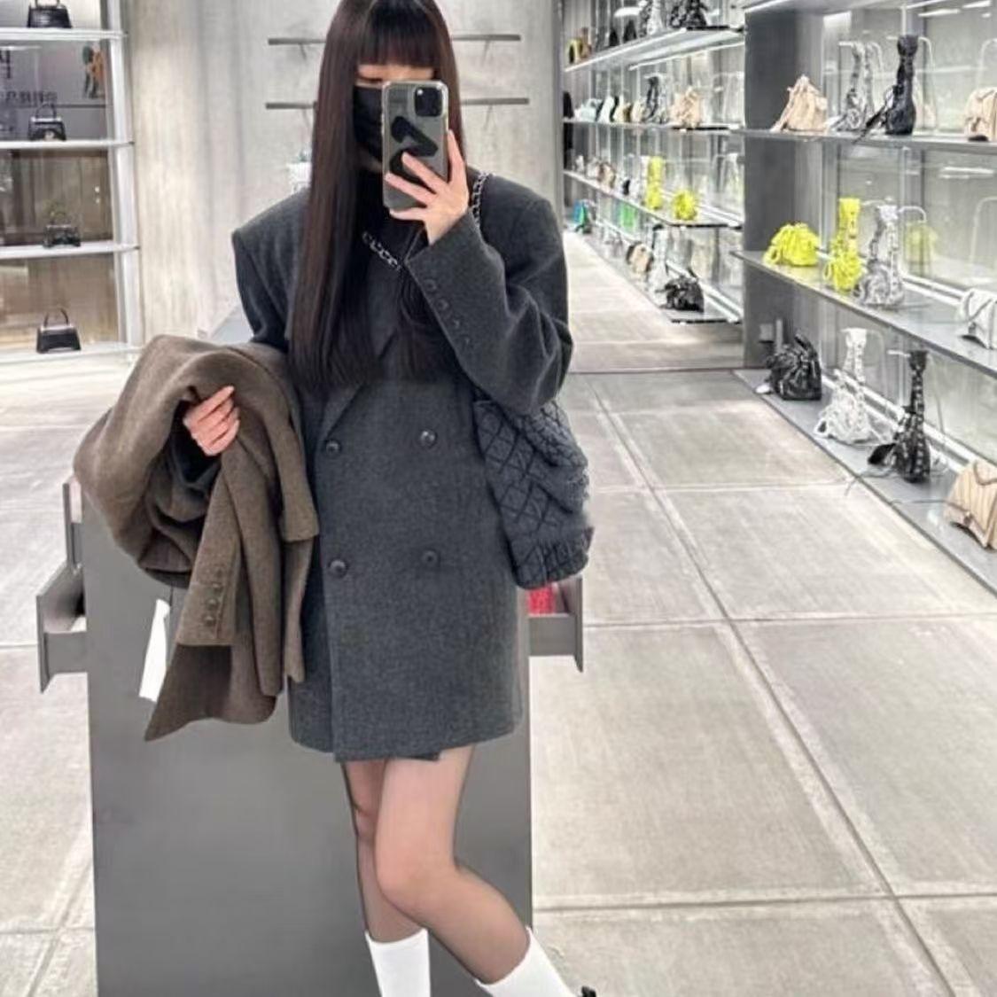 2025 Nuevo Otoño e Invierno Versátil Abrigo de Lana de Moda de Alta Gama Estilo Traje Petite de Largo Medio para Mujer