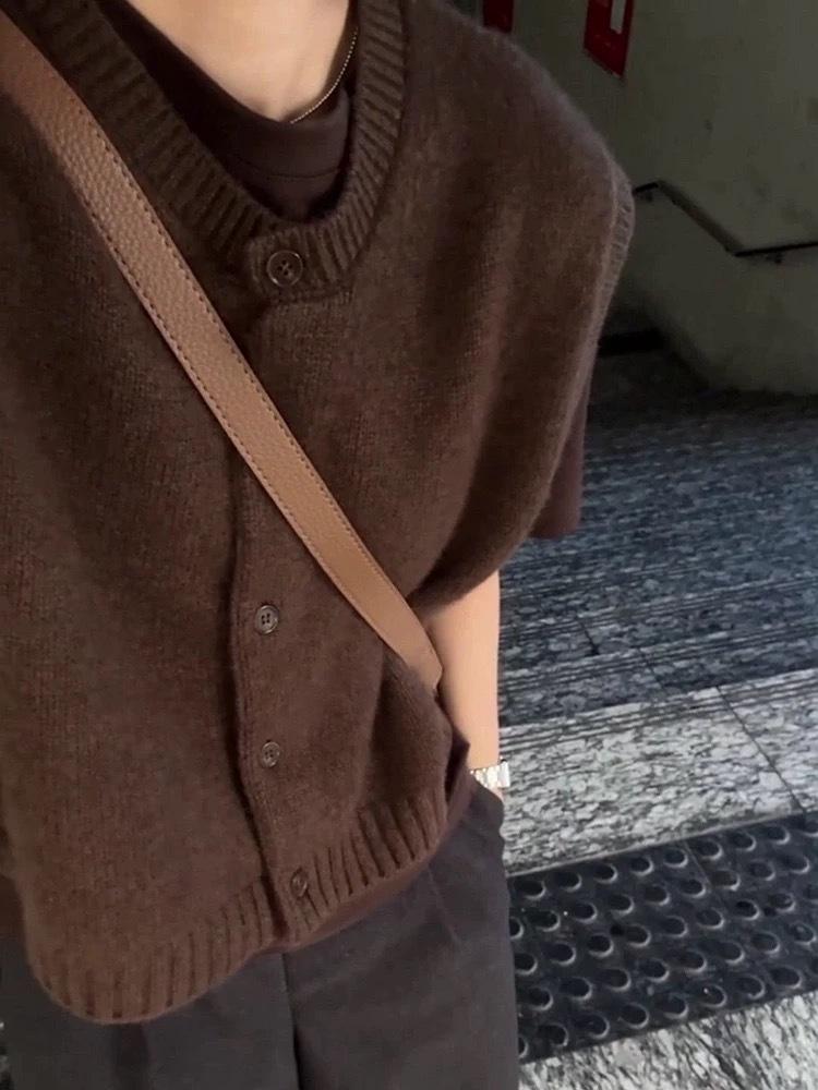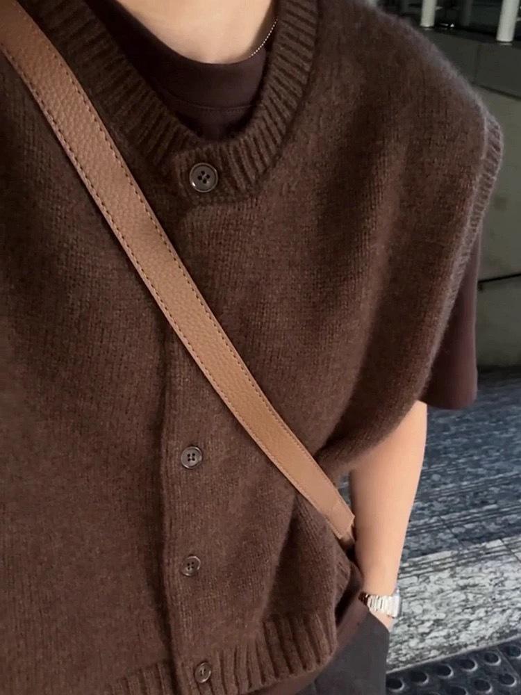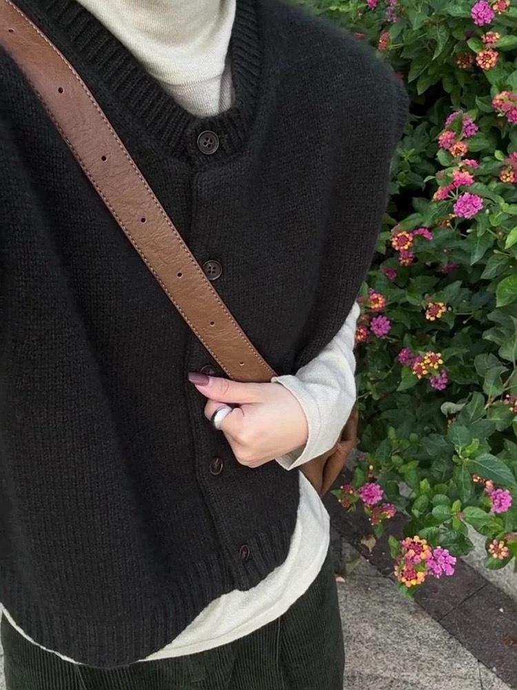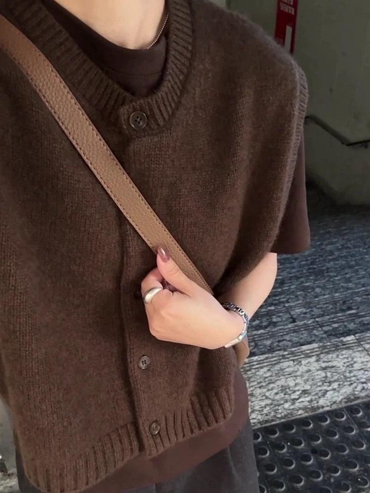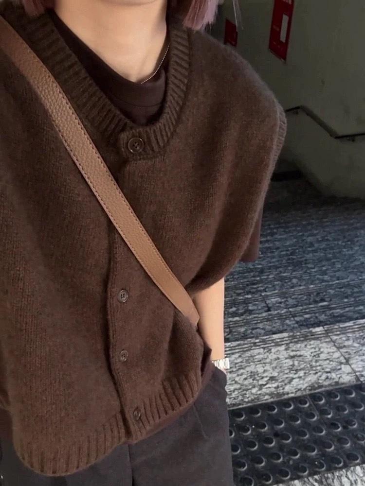 Otoño/Invierno 2025 Nuevo Estilo Coreano Lana Pura para Mujer Cárdigan Chaleco de Cuello Redondo Tejido sin Mangas Suelto Corto
