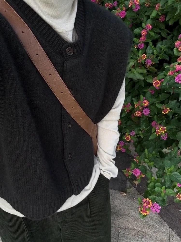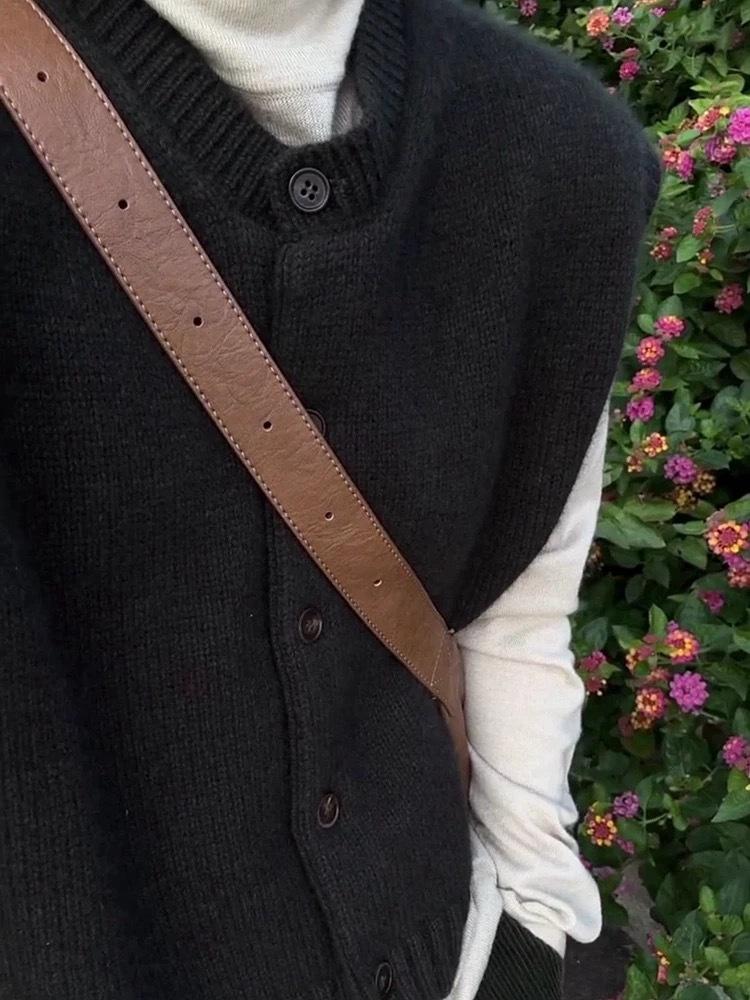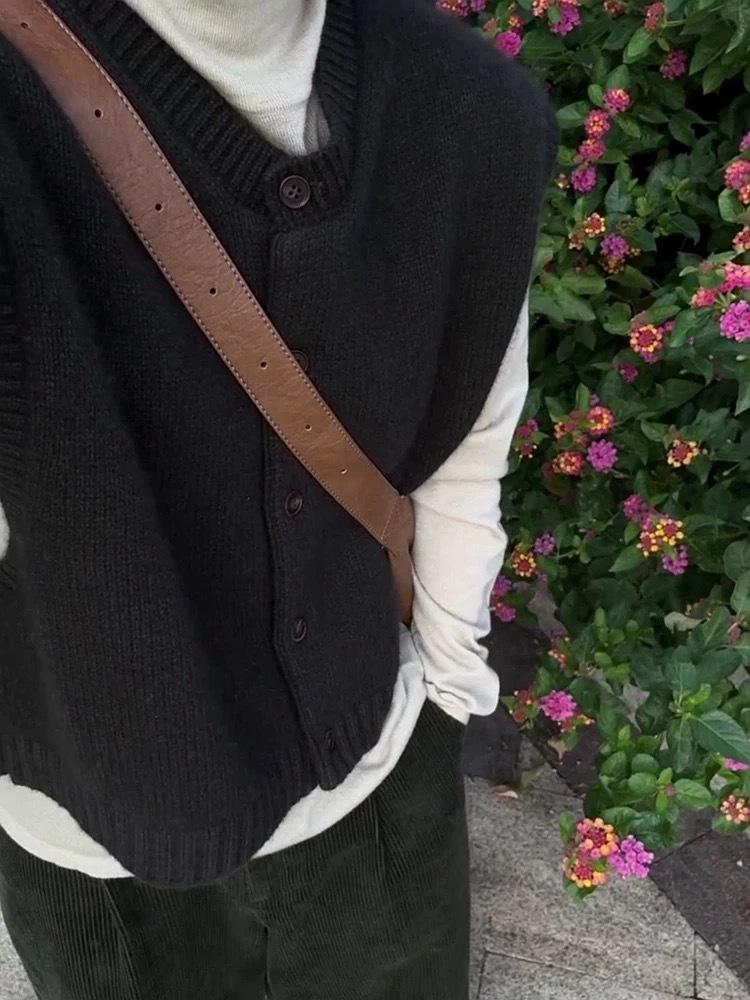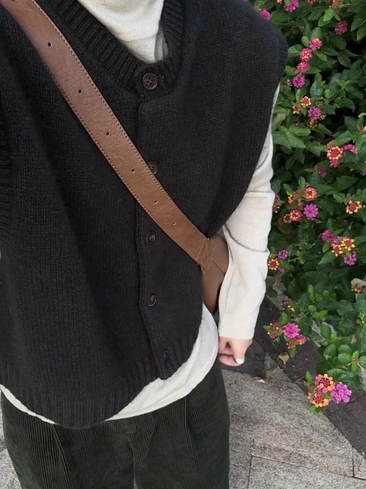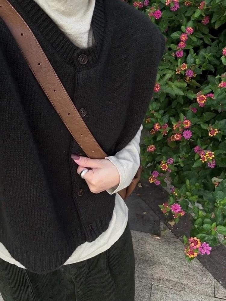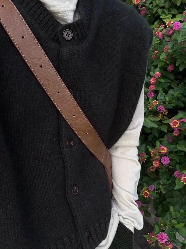 Otoño/Invierno 2025 Nuevo Estilo Coreano Lana Pura para Mujer Cárdigan Chaleco de Cuello Redondo Tejido sin Mangas Suelto Corto
