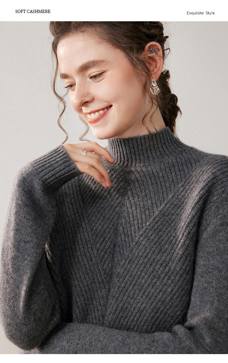 Suéter Grueso de Cuello en V 100% Cachemira Pura al por Mayor de Fábrica para Mujer, Suéter Holgado Tejido para Base