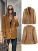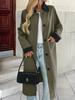 Abrigo Trench de Bloques de Color Otoño Nuevo de Comercio Exterior Transfronterizo Europeo y Americano de Corte Holgado Temperamento para Ir al Trabajo Versátil Abrigo Largo para Mujer