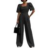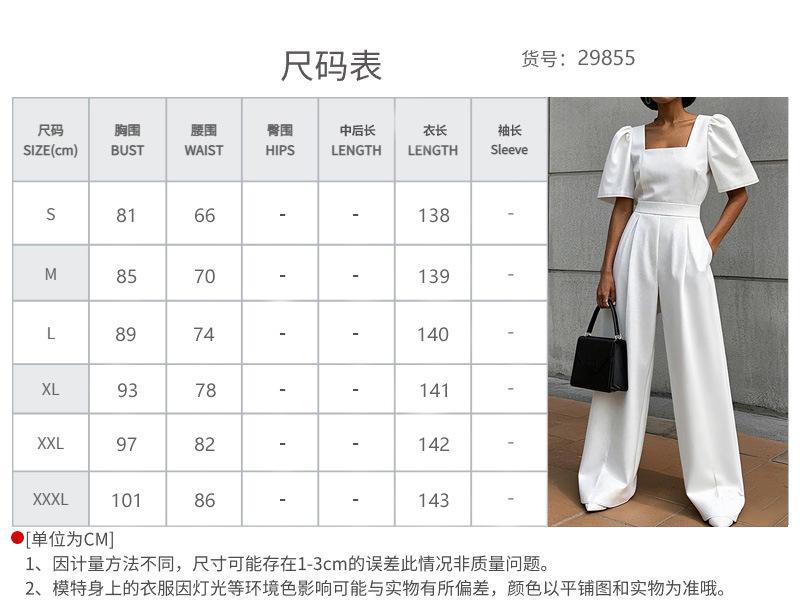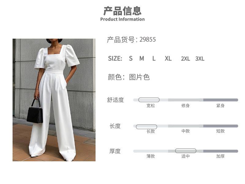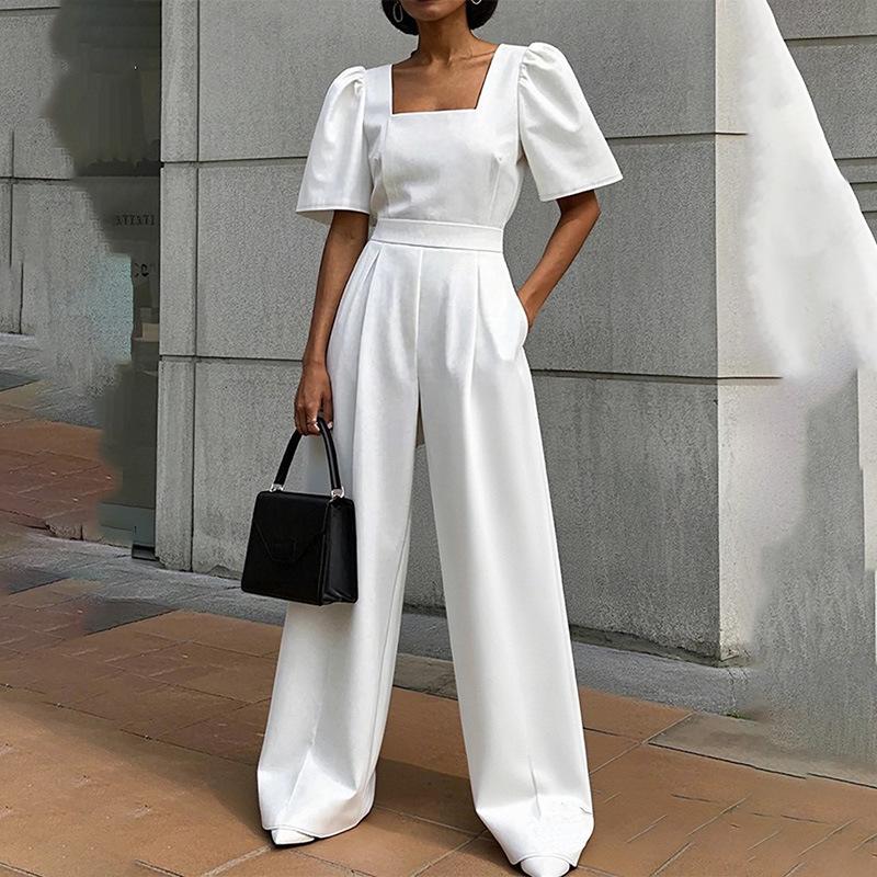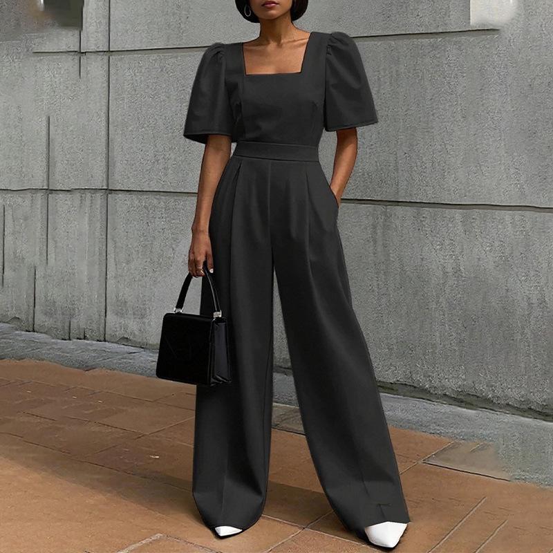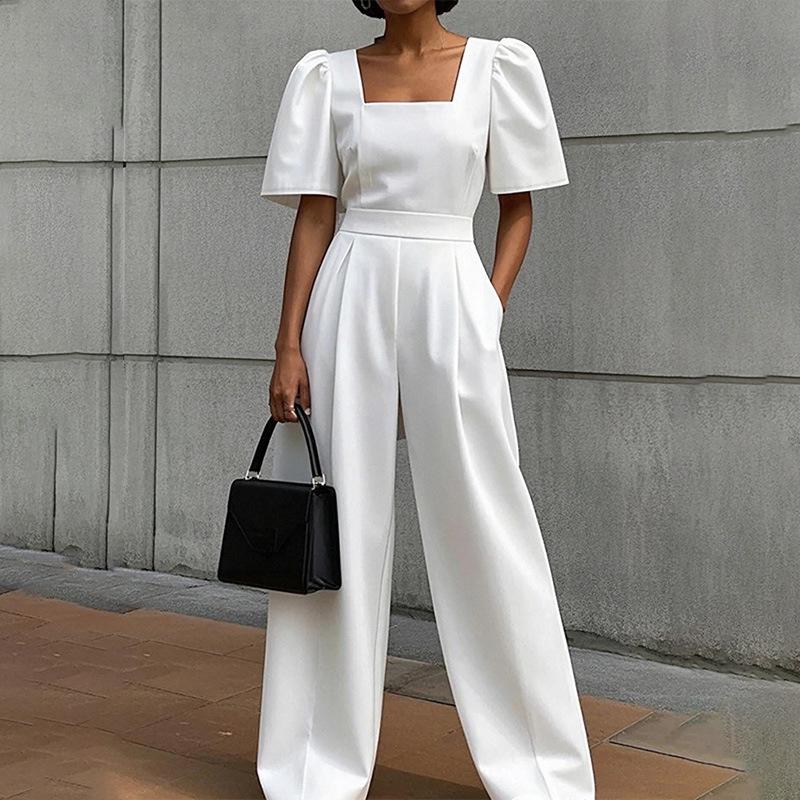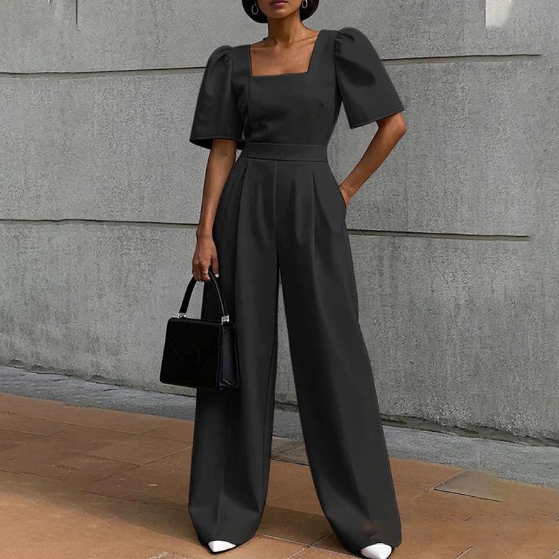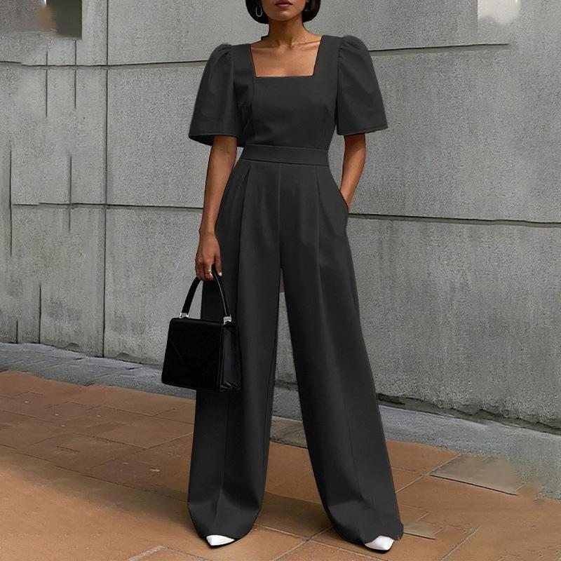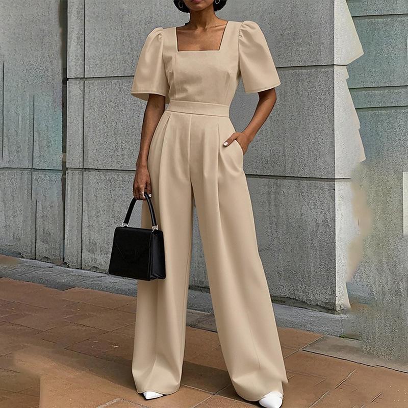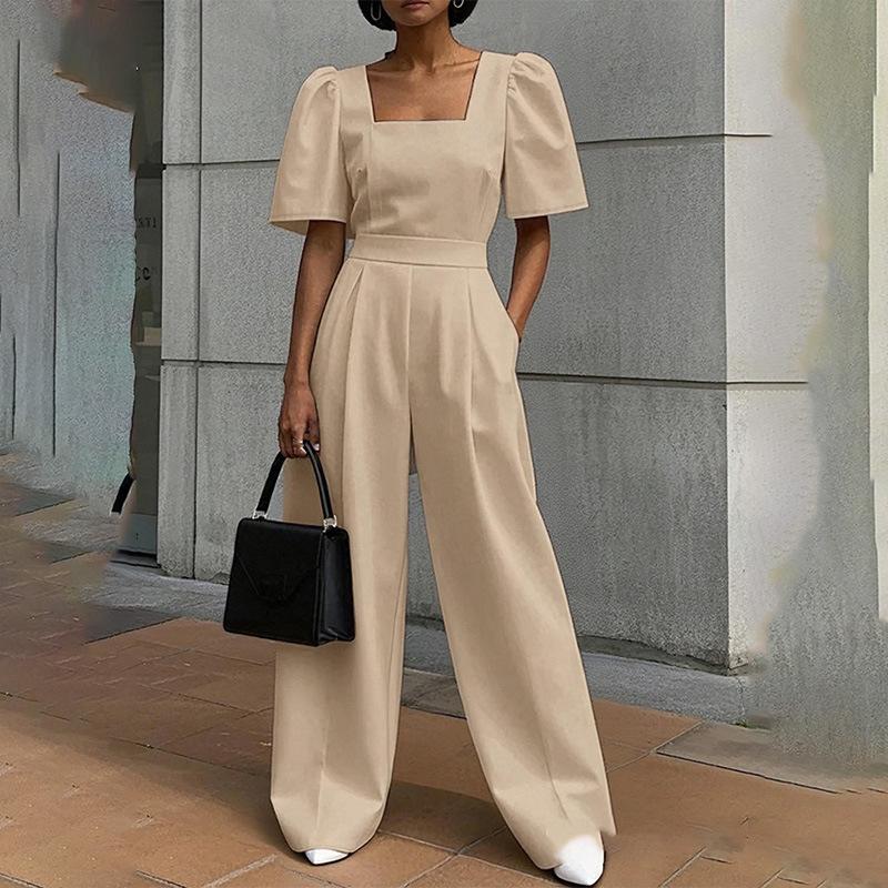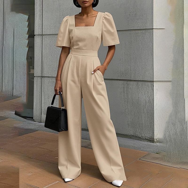 2025 Verano/Otoño Nuevo Moda Transfronteriza Europea y Americana Casual Color Sólido Ajustado Cintura Entallada Cuello Cuadrado Mono de Pierna Recta Pantalón Largo Mujer