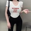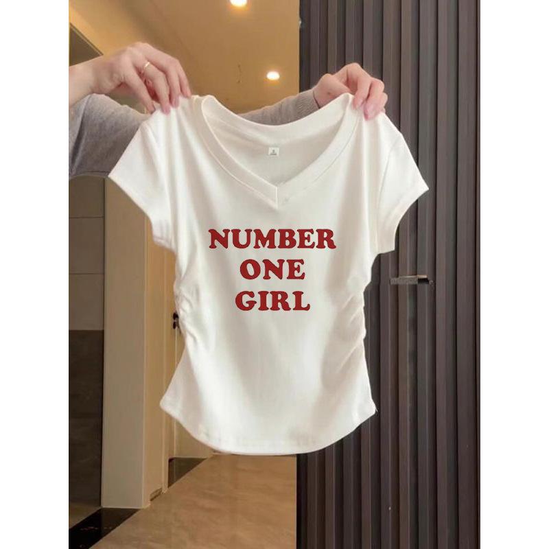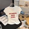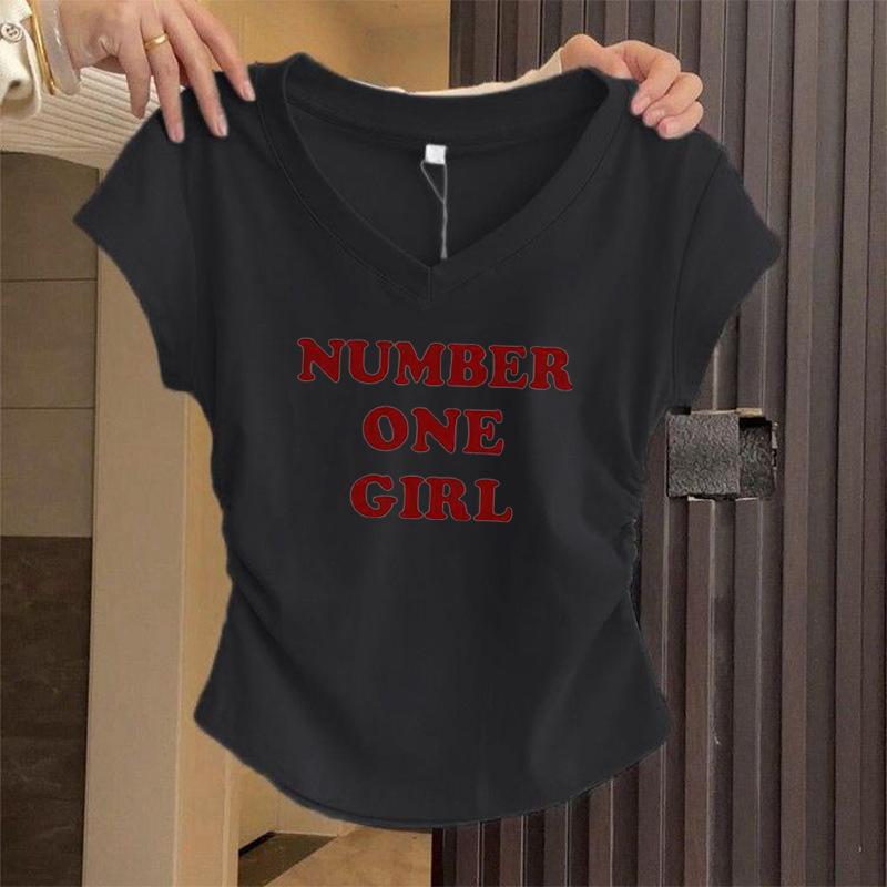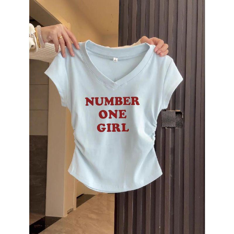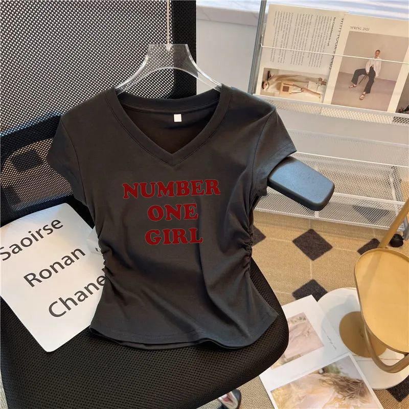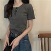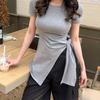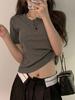 Camiseta de Manga Corta para Mujer Hombro Derecho 2025 Gris Asimétrica Corta Ajustada Top Popular Estilo Delgado Alta Gama