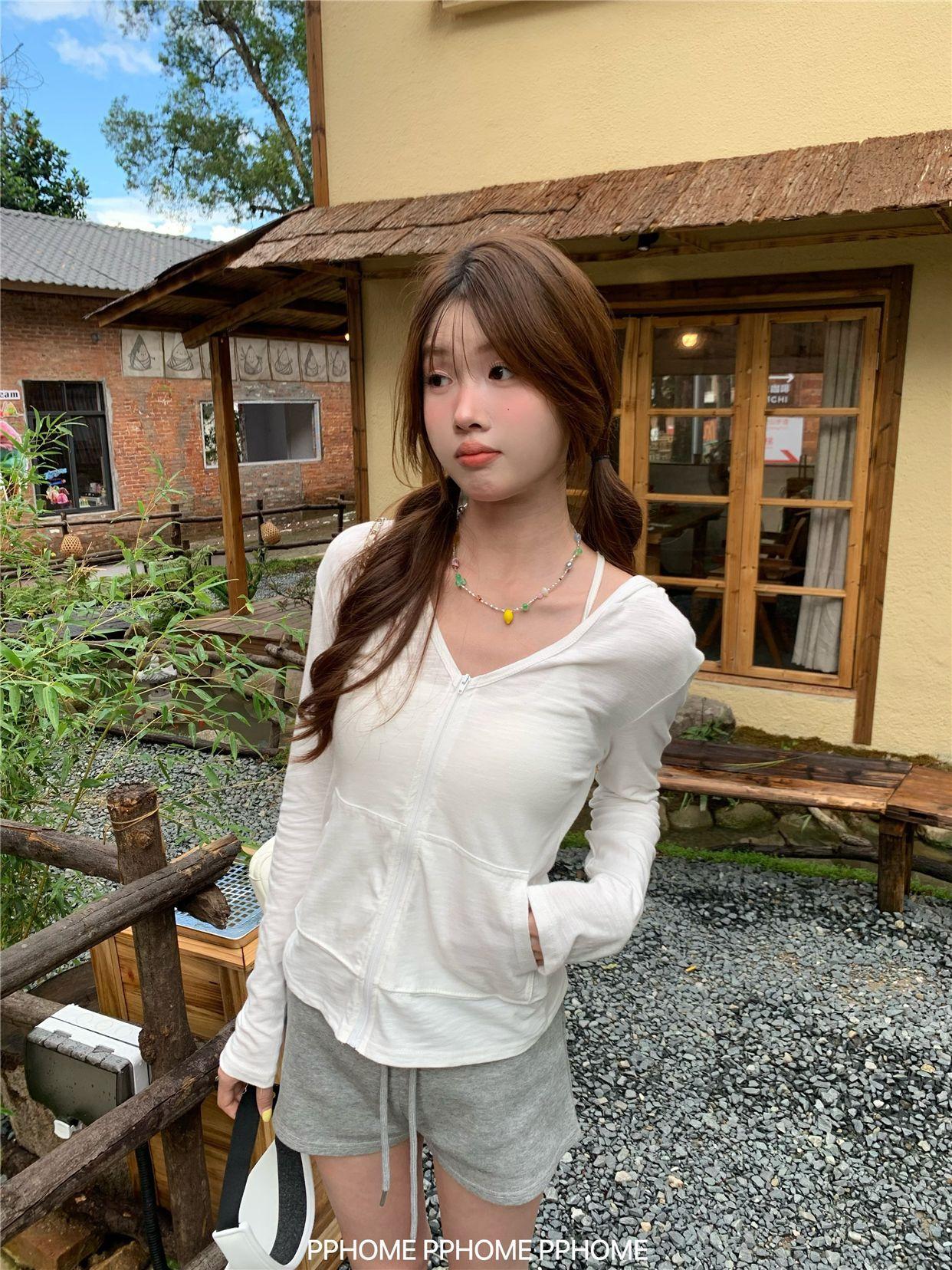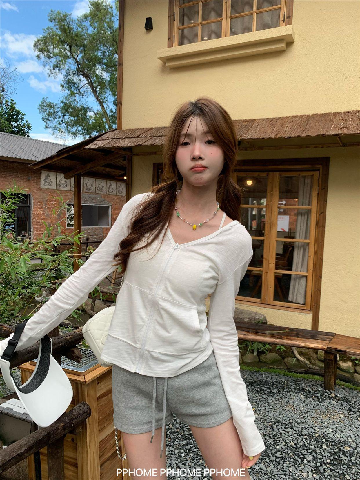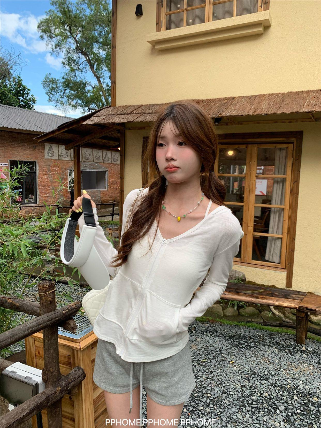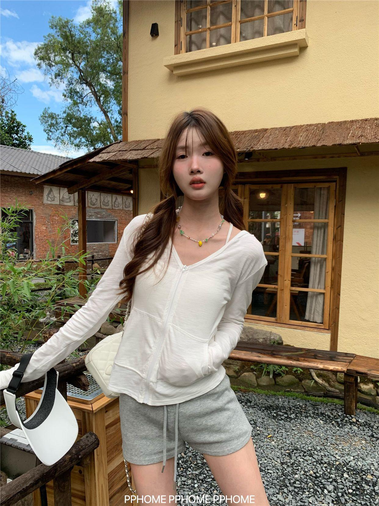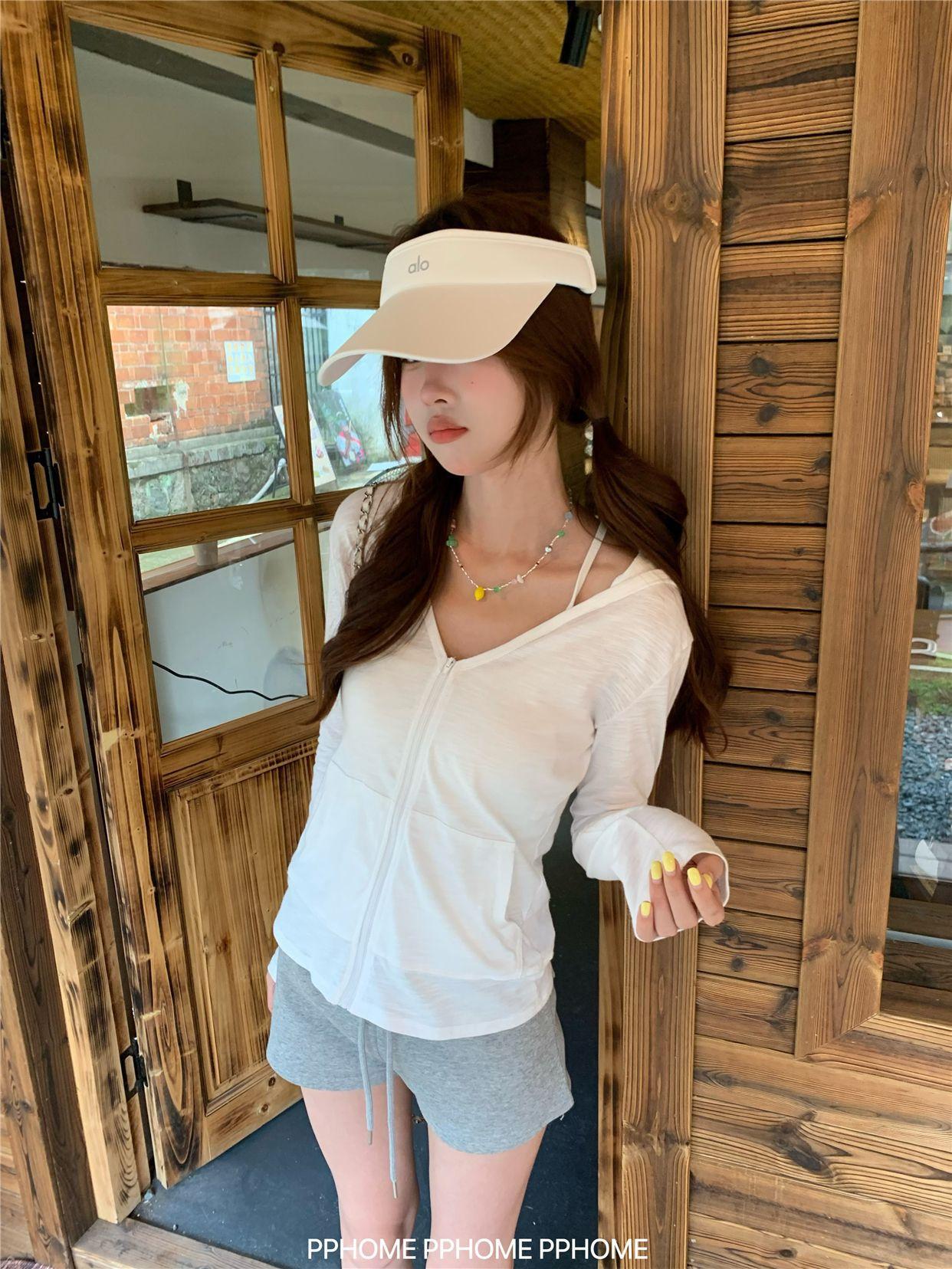 Chaqueta con Capucha de Manga Larga para Protección Solar para Mujer Verano Ajustada Cárdigan Fino Estilo Relajado Top con Cremallera