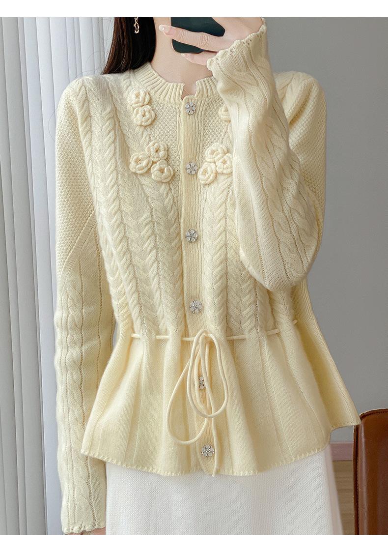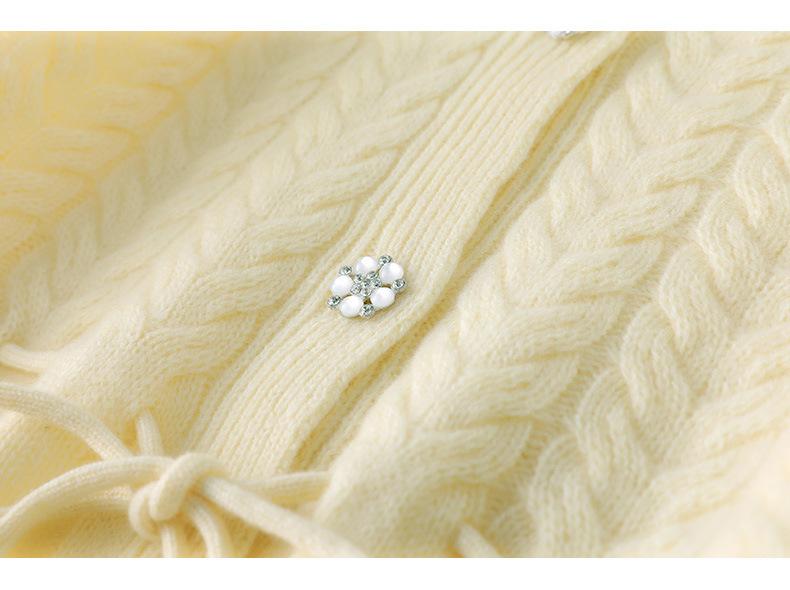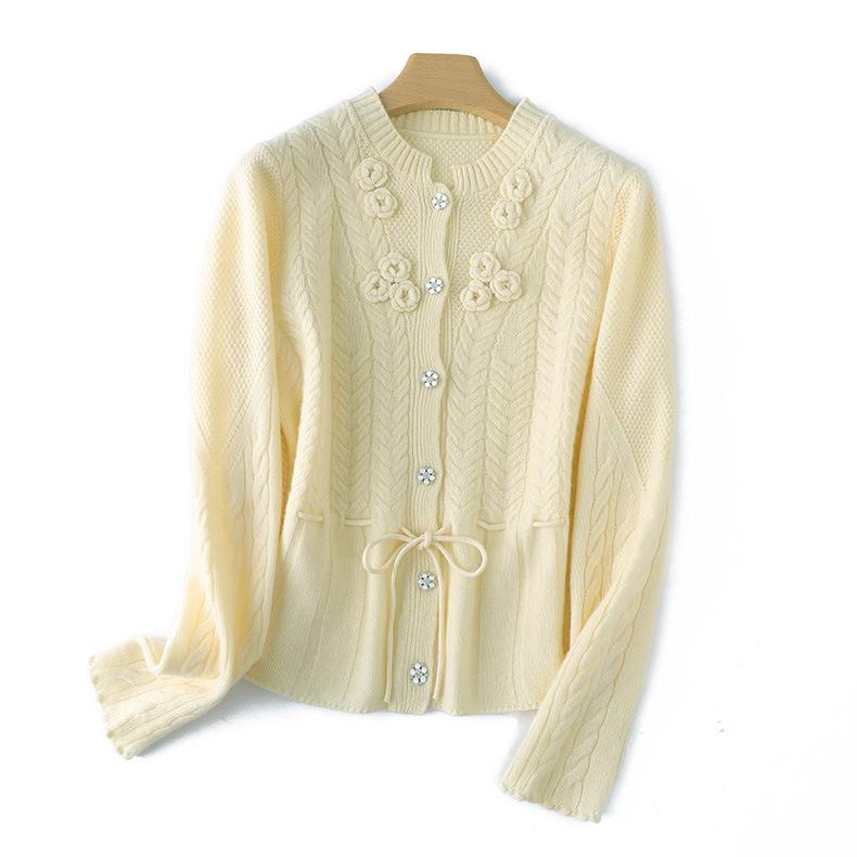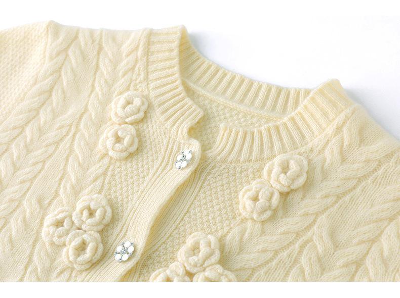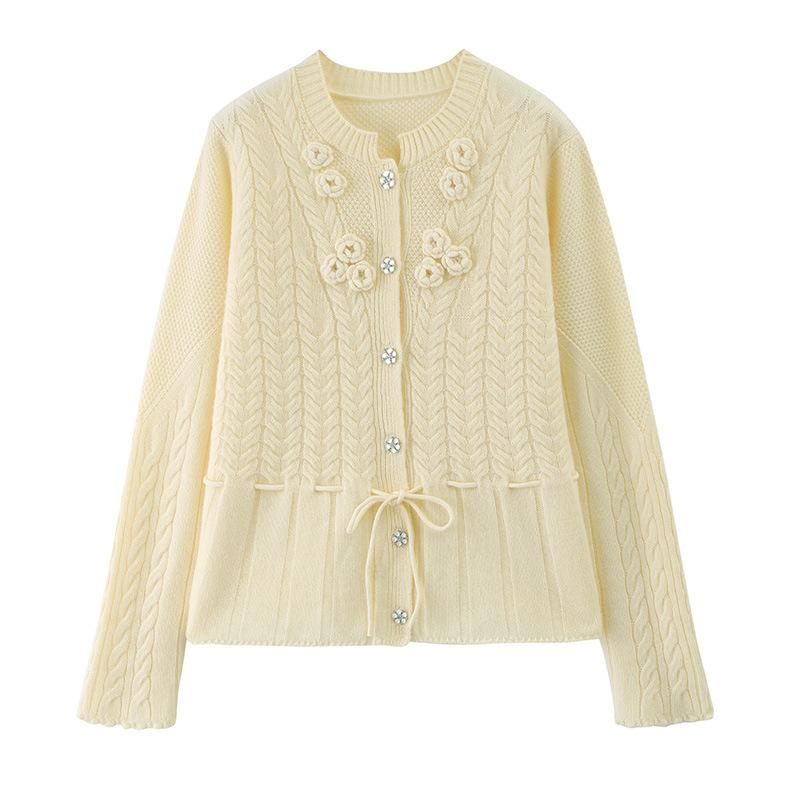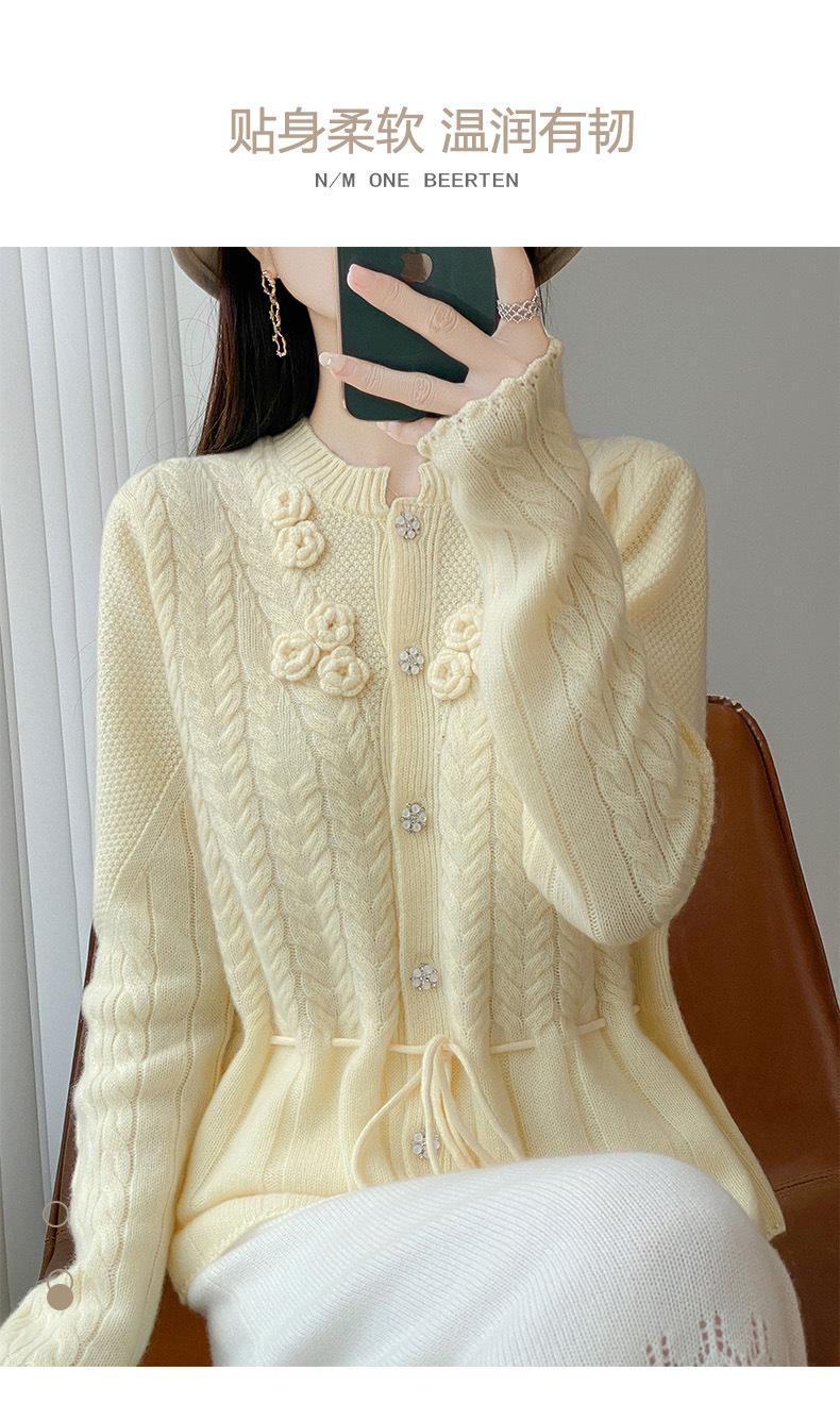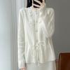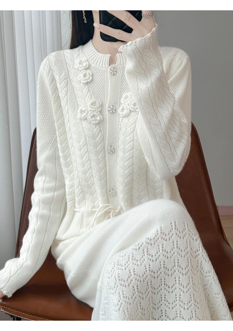 Cárdigan Versátil de Cuello Redondo Nuevo de Un Solo Botón Color Sólido 10 Prendas de Punto Mujer Cordón Cálido Otoño Invierno Lana Blanco