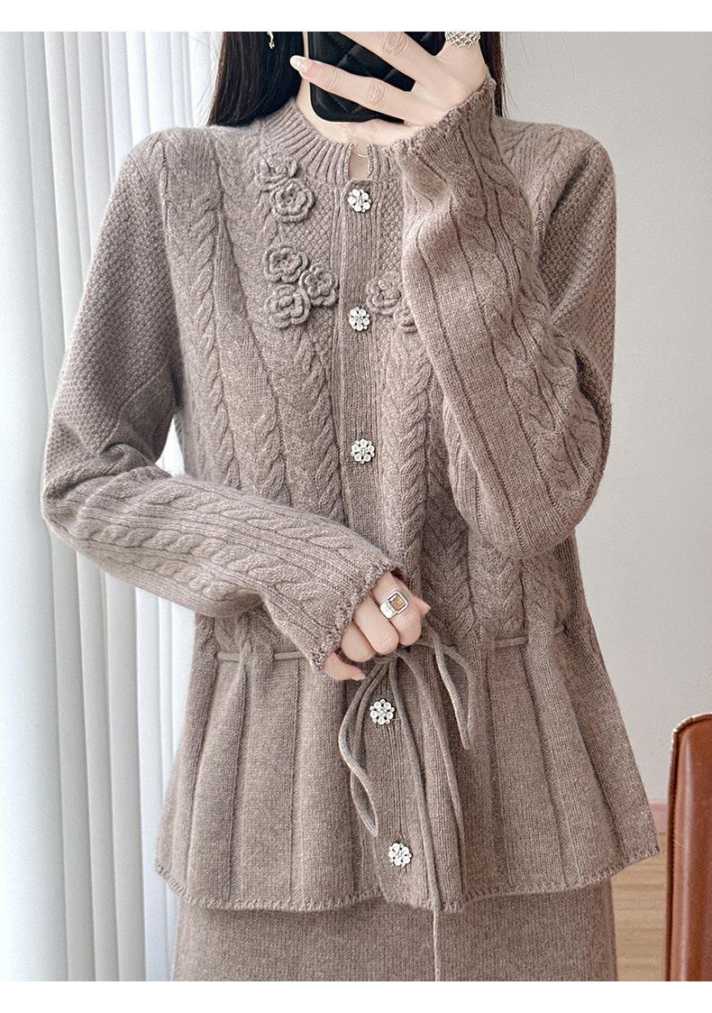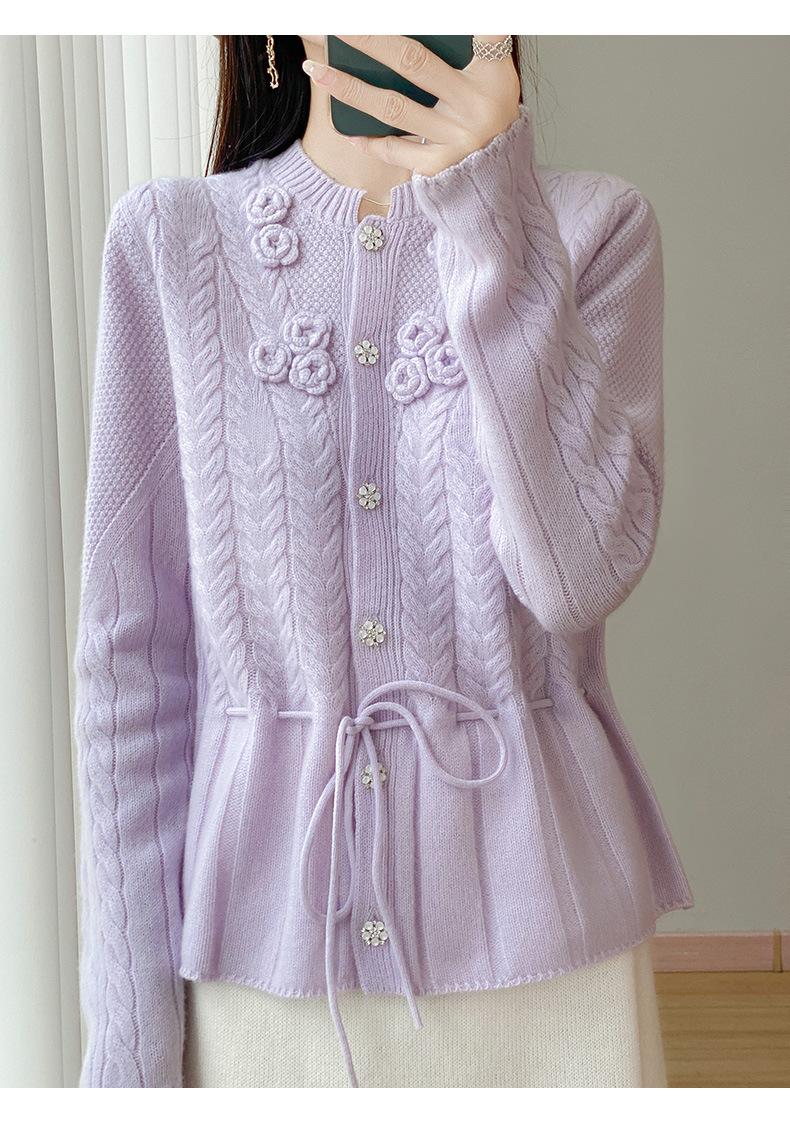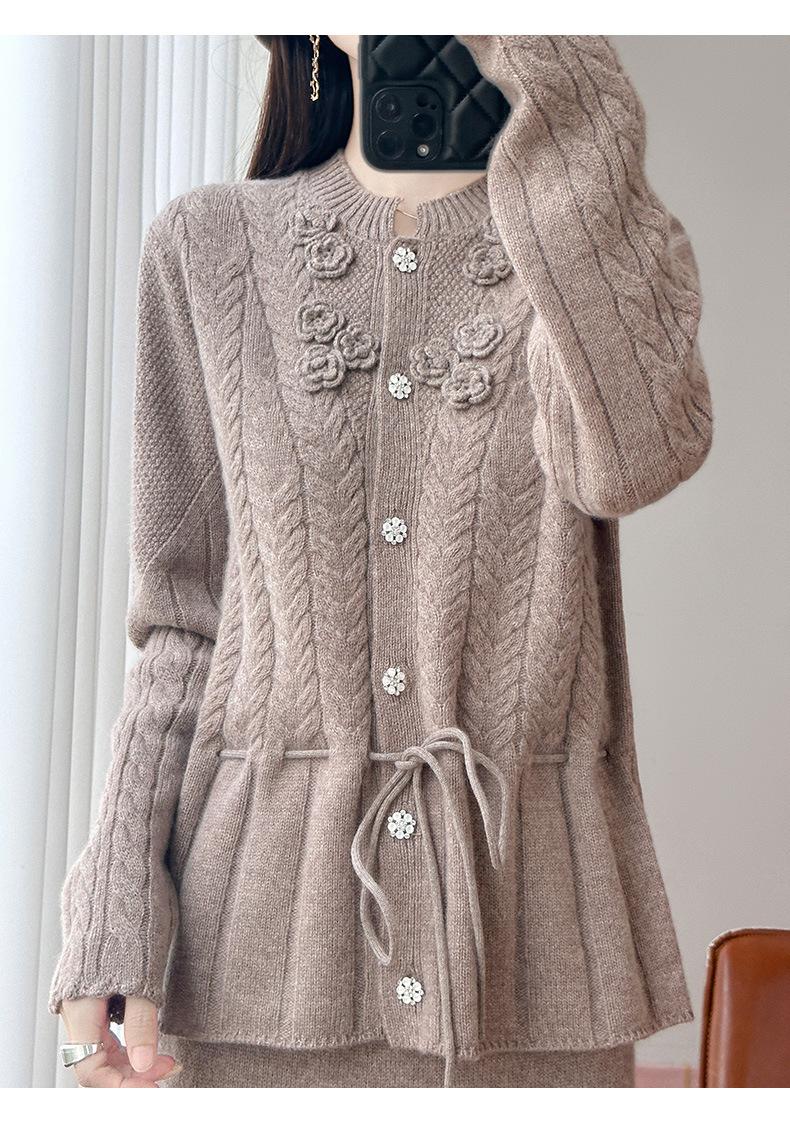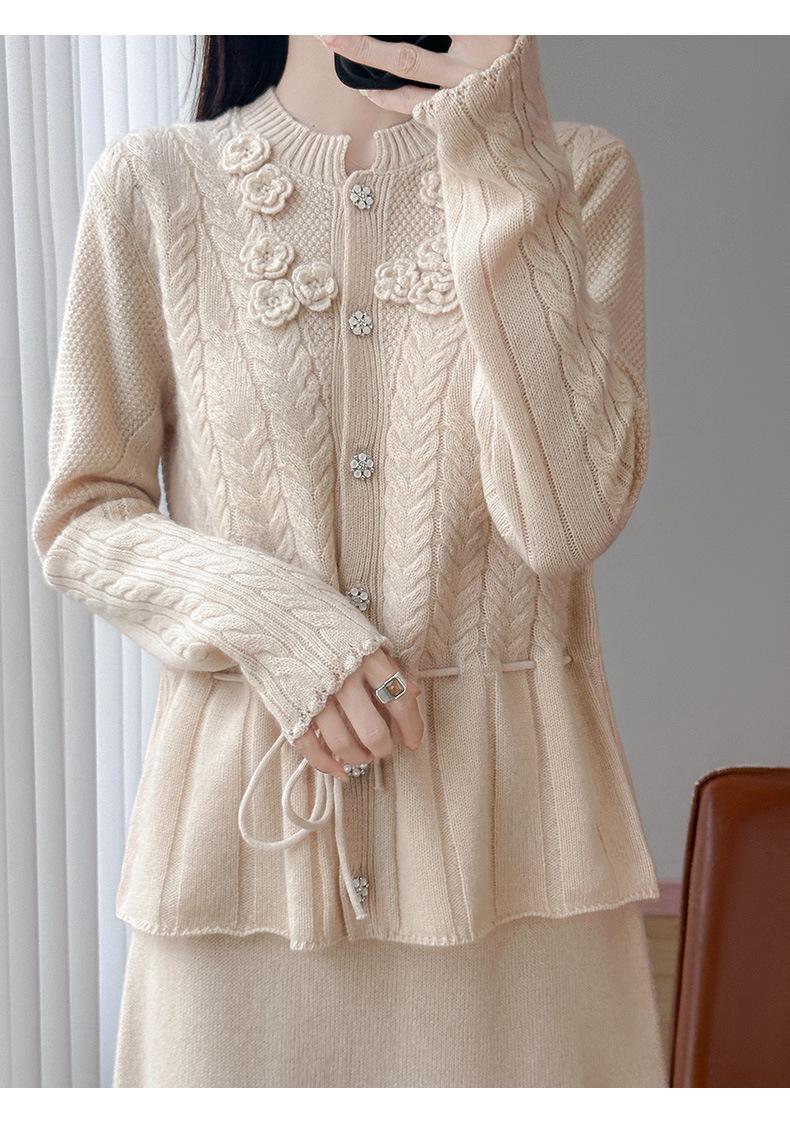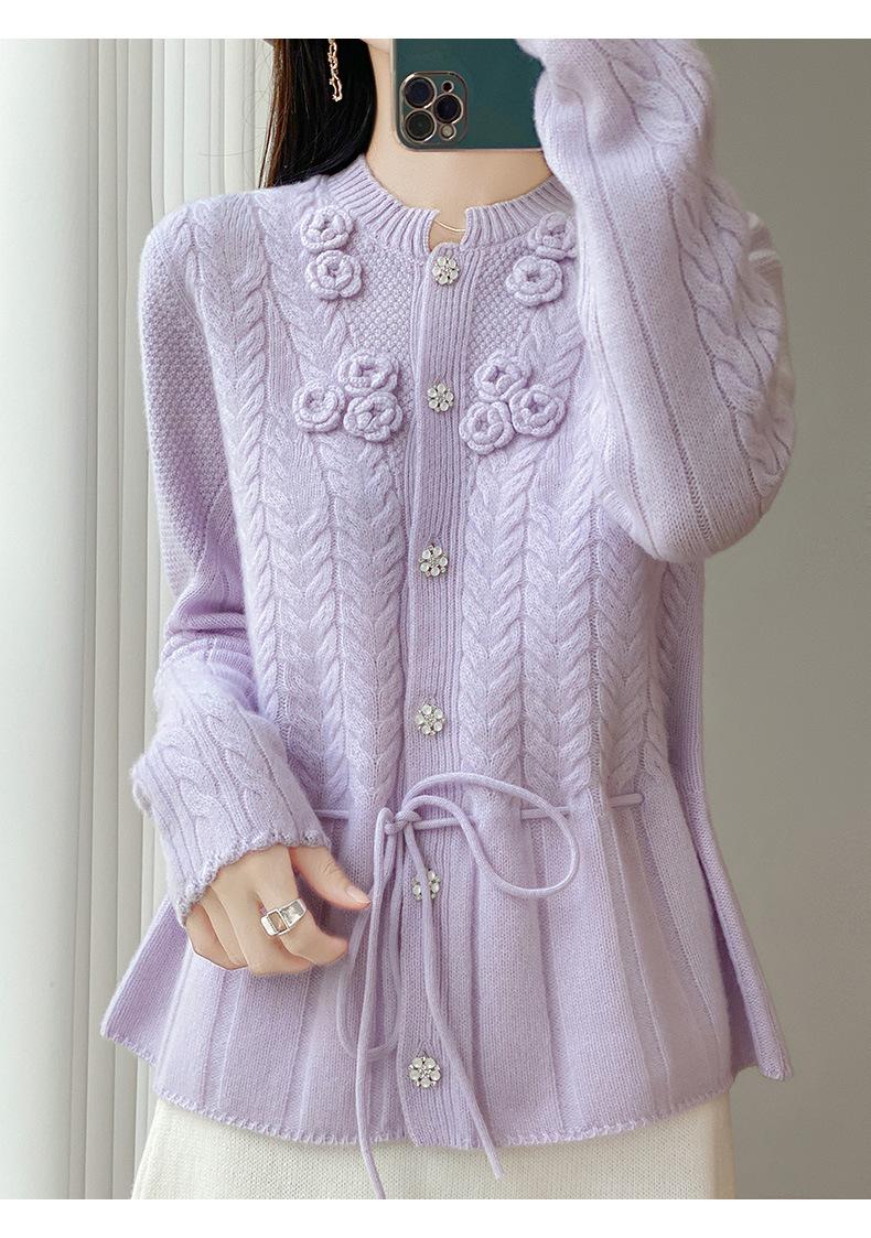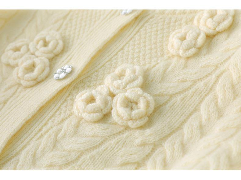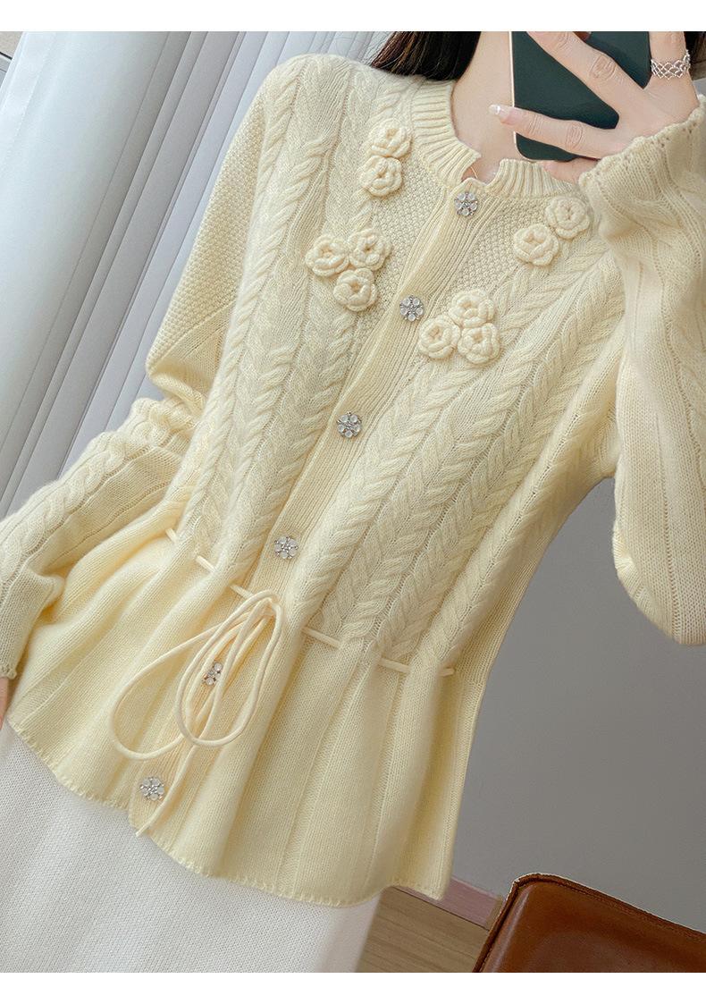 Cárdigan Versátil de Cuello Redondo Nuevo de Un Solo Botón Color Sólido 10 Prendas de Punto Mujer Cordón Cálido Otoño Invierno Lana Blanco