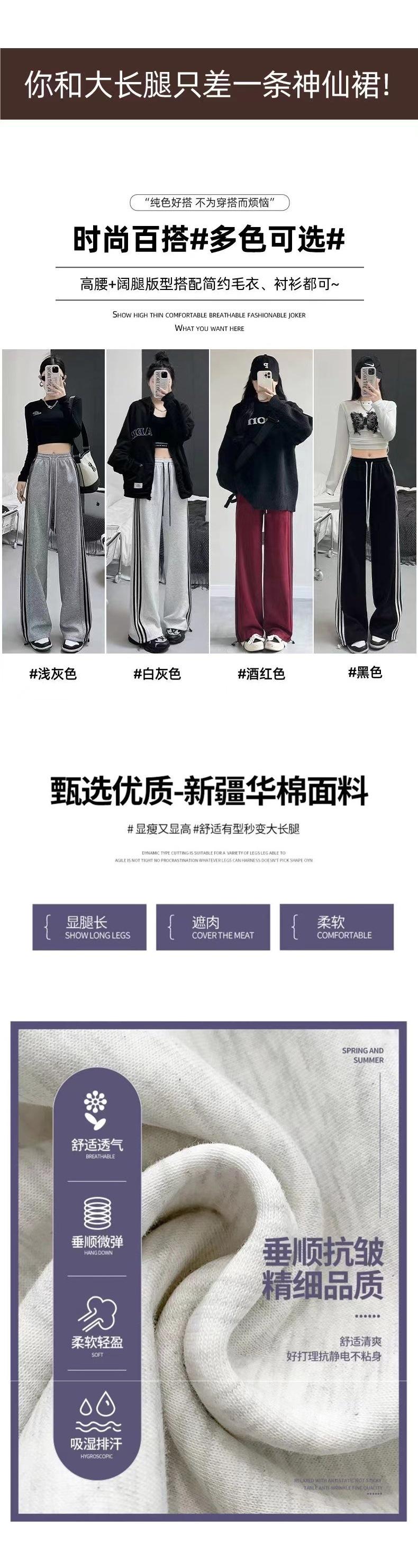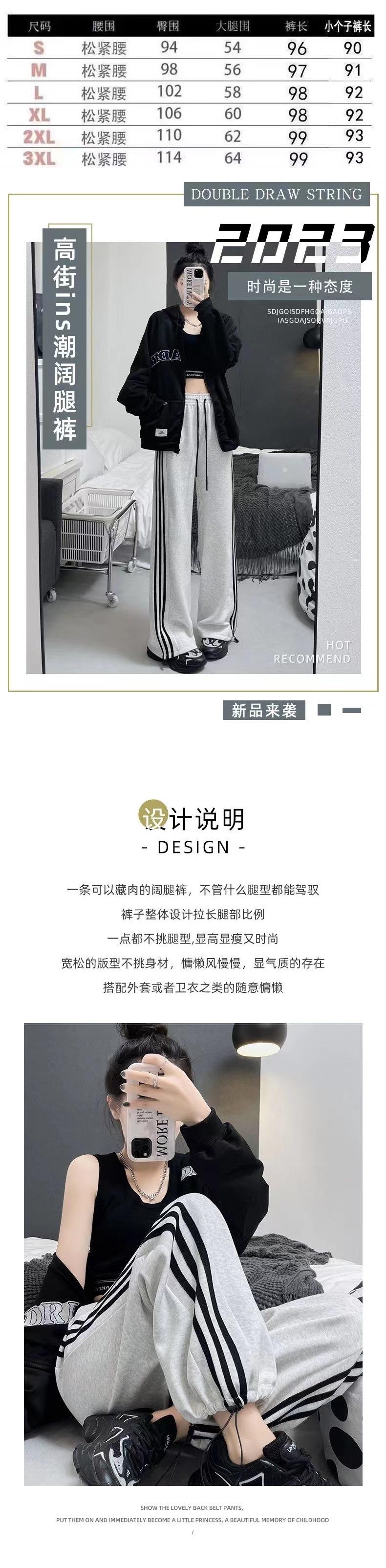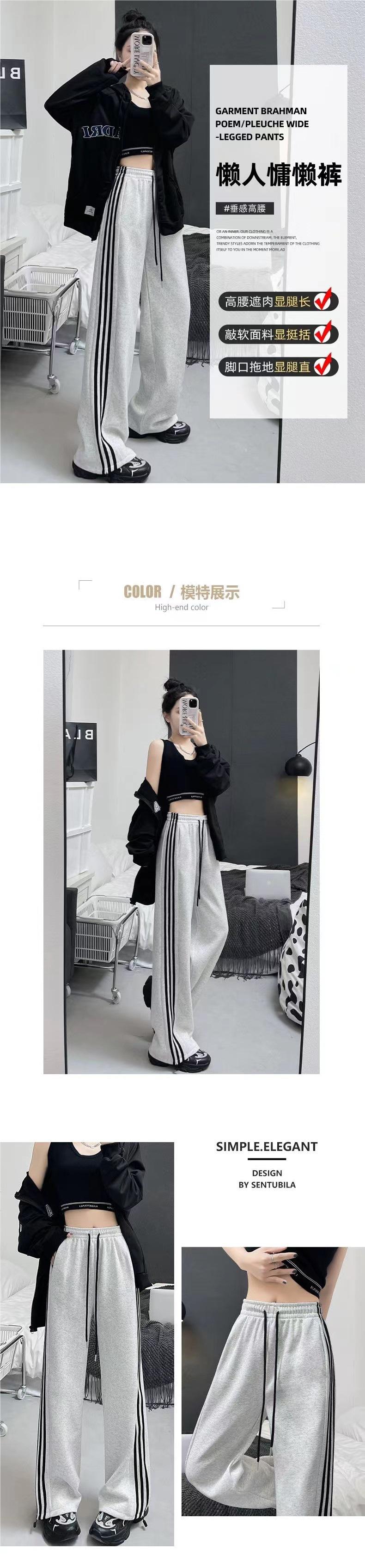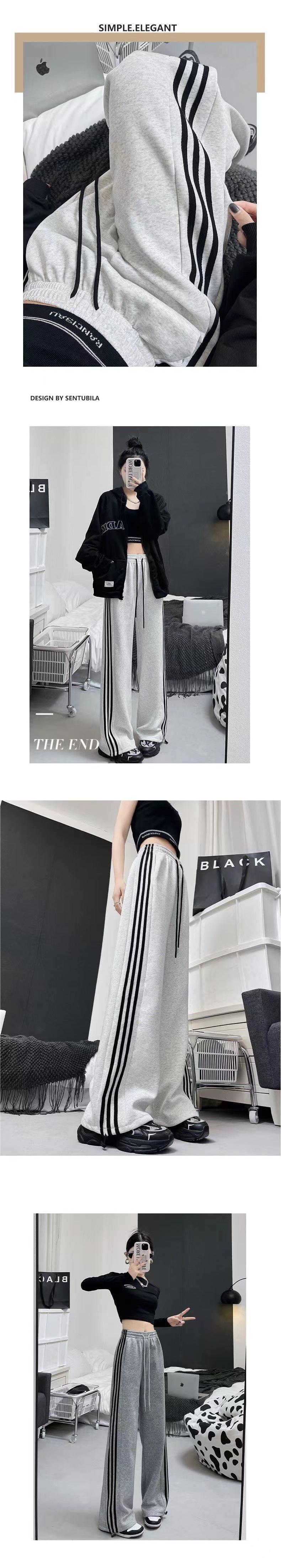 Pantalones de Sudor Americanos de 4 Colores para Mujer Primavera y Otoño Nuevo Cintura Alta Casual Rectos Pierna Ancha Petite Pantalones de Sudor a Rayas