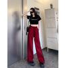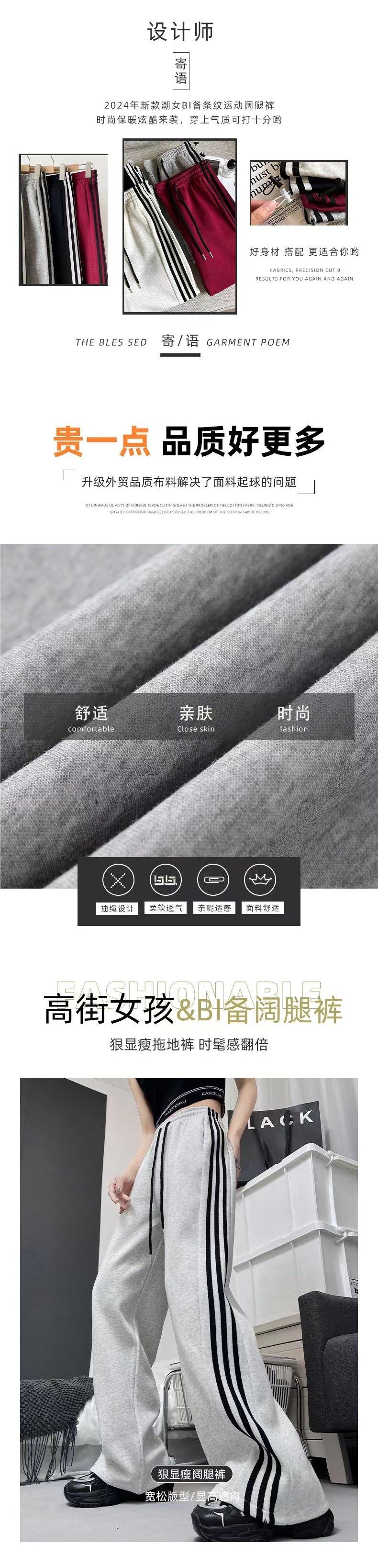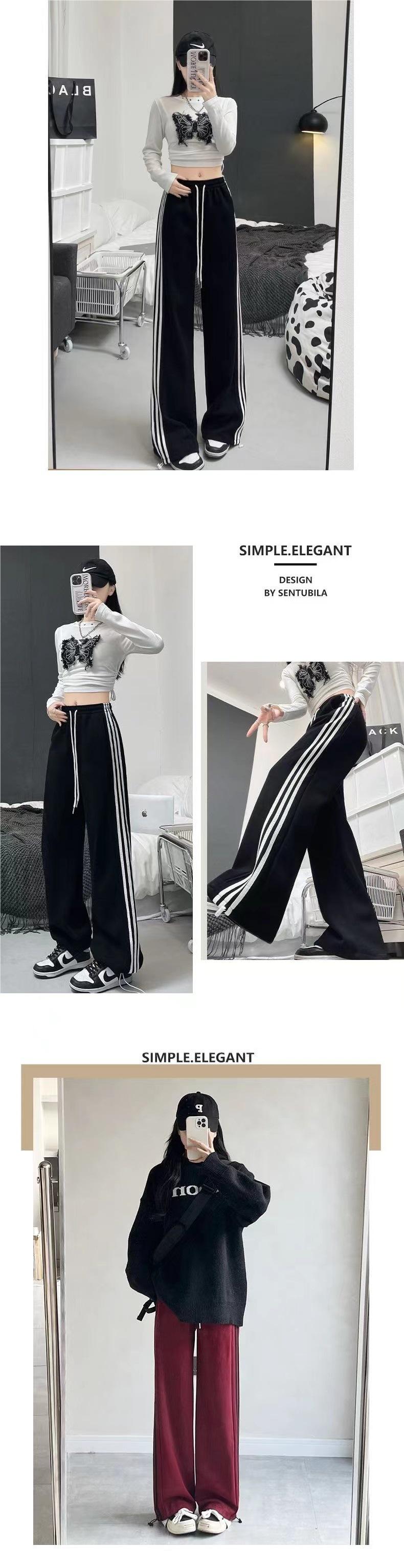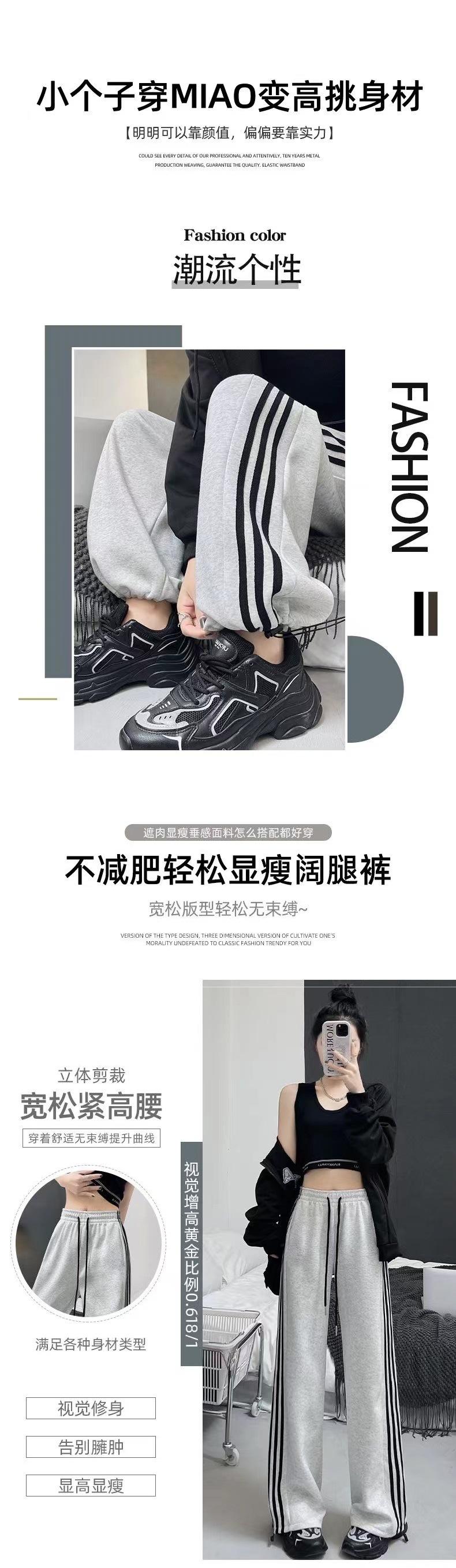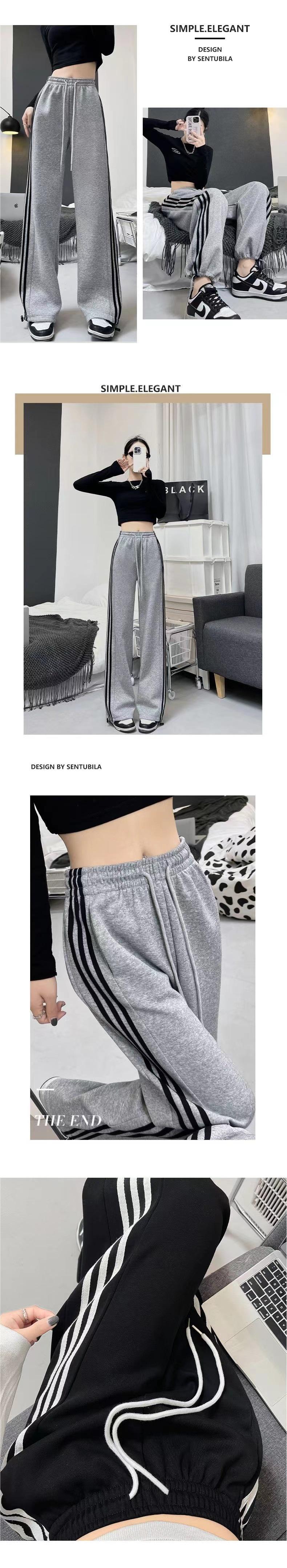 Pantalones de Sudor Americanos de 4 Colores para Mujer Primavera y Otoño Nuevo Cintura Alta Casual Rectos Pierna Ancha Petite Pantalones de Sudor a Rayas