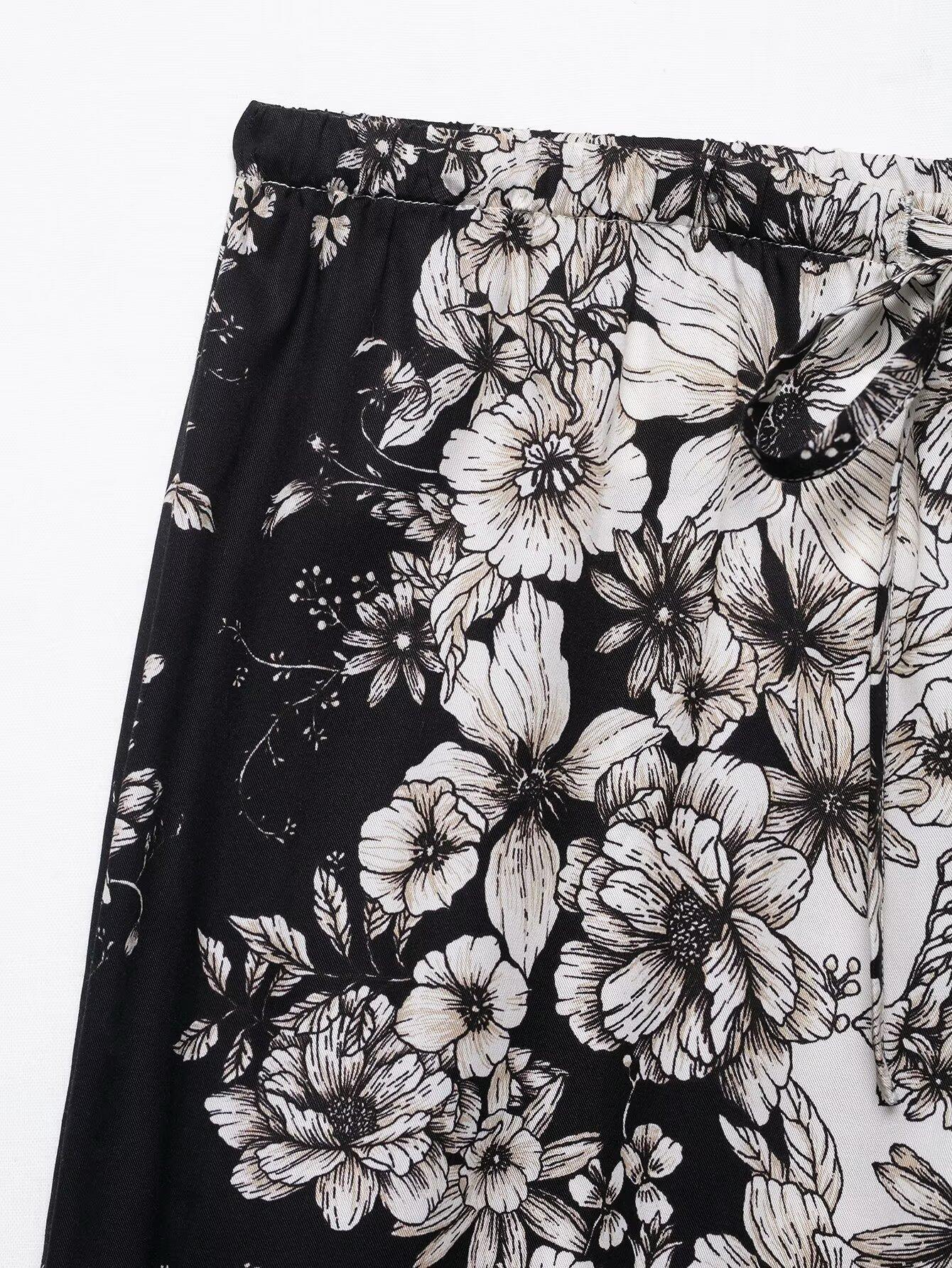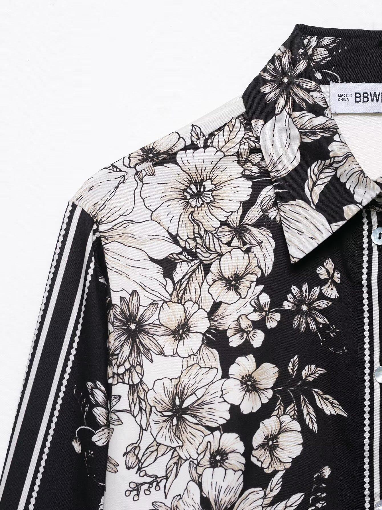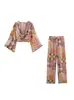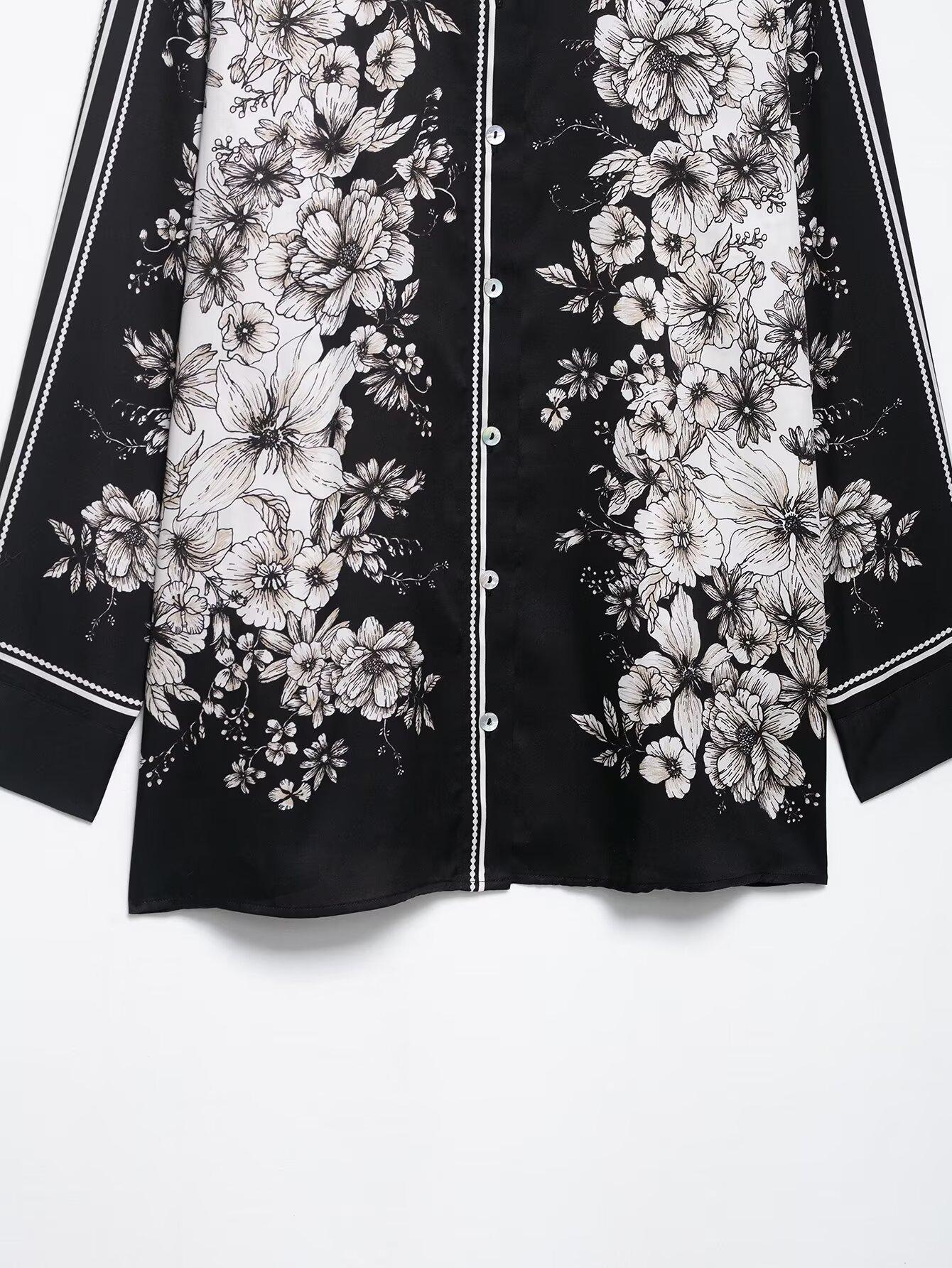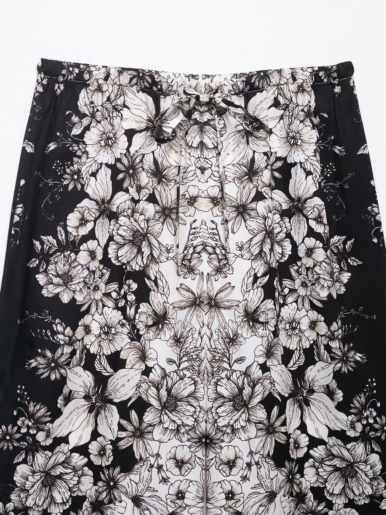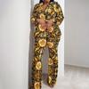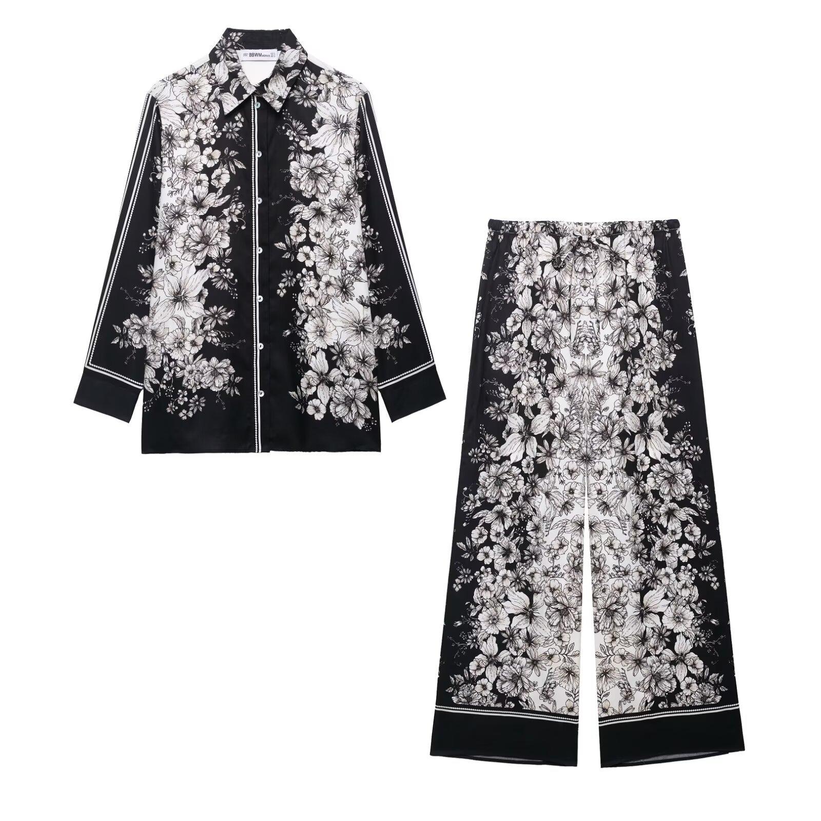 Estilo Europeo y Americano Transfronterizo 2025 Primavera Nuevo Conjunto de Dos Piezas Camisa Larga Estampada + Pantalón con Cordón