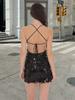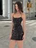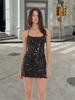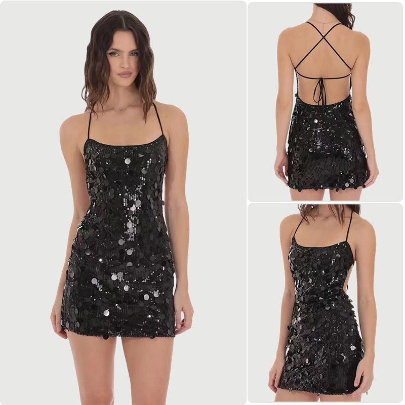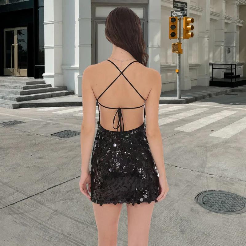 Tendencia de Moda Vestido Camisola de Lentejuelas Negras Otoño 2025 Nuevo Sexy Ajustado Sin Espalda Sin Mangas Corto Bodycon