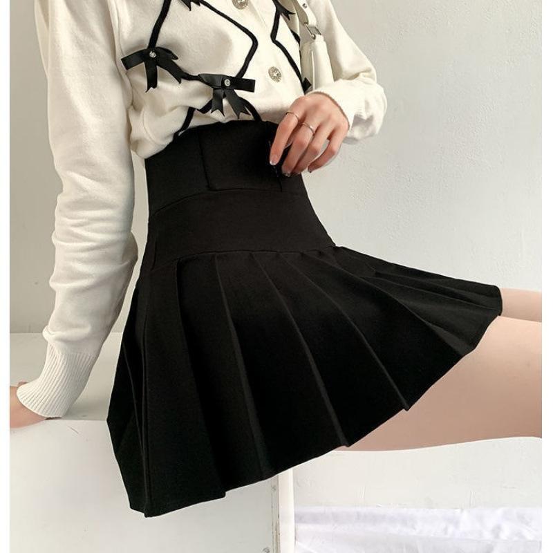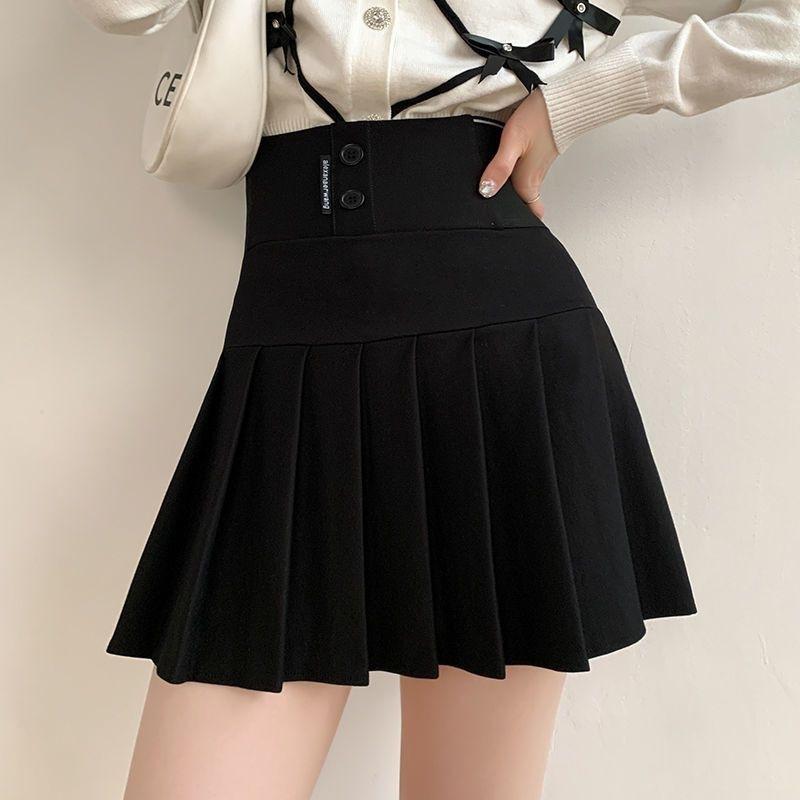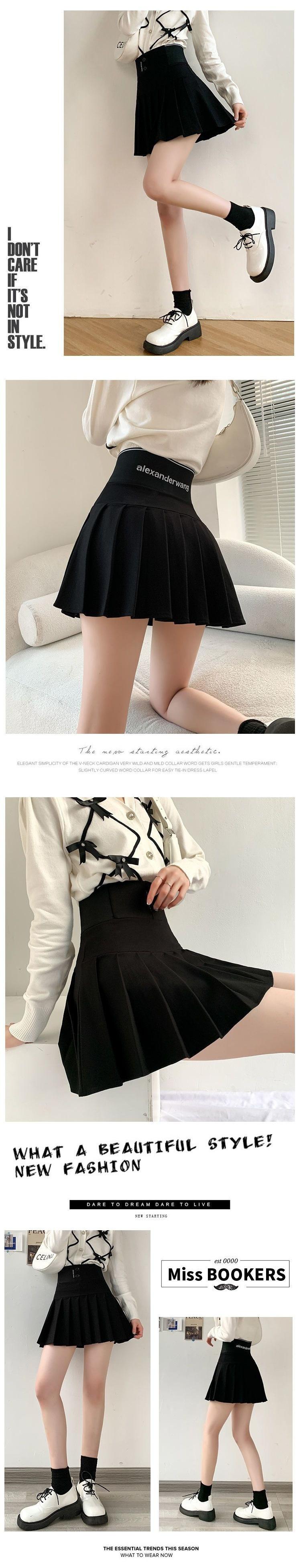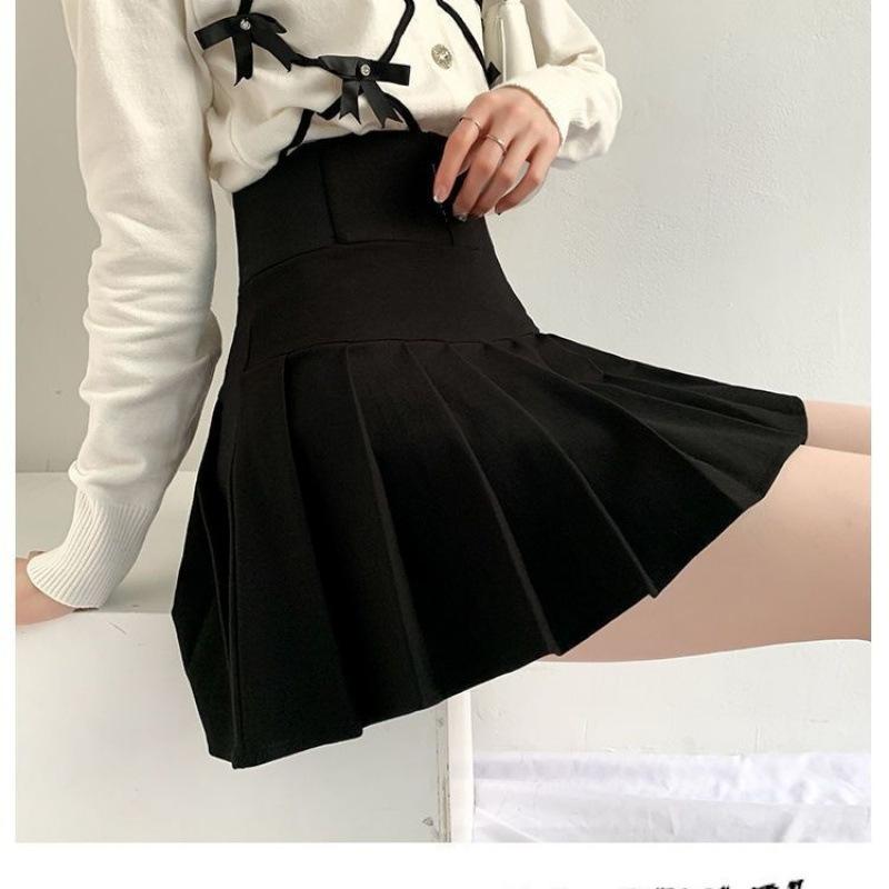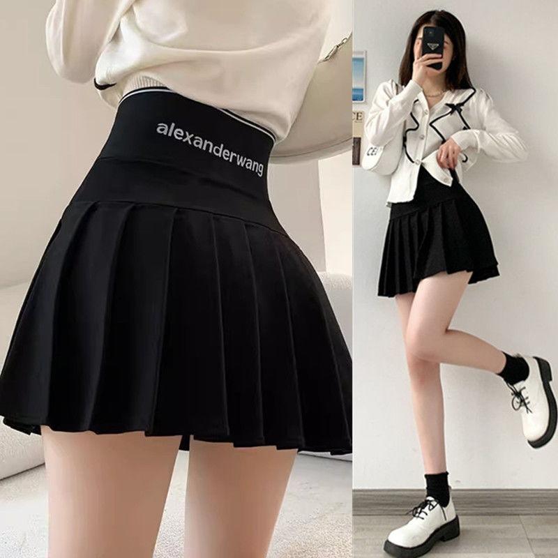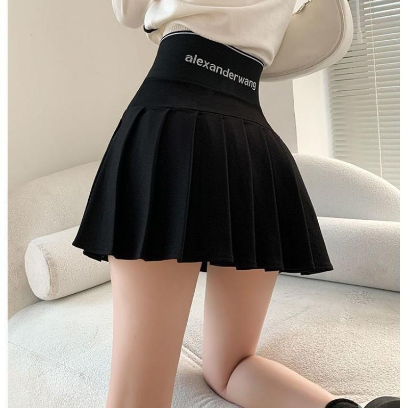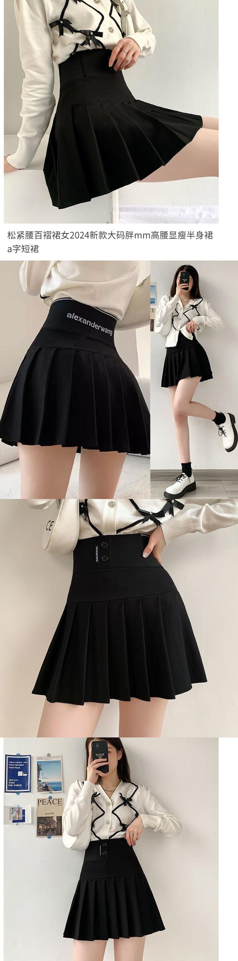 Falda plisada de cintura elástica para mujer 2024 Nueva talla grande gorda mm Falda ajustada de cintura alta Falda corta acampanada